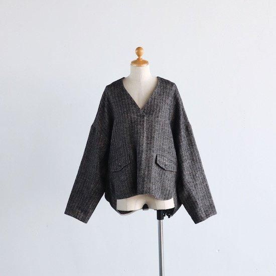 生地はリネンとシェットランドウールで織り上げたヘリンボーンです。軽くて温かなシェットランドウールを使っているので、インナーを冬仕様にすれば、ポカポカ温かでジャケットぐらいの役割はこなしてくれそうです。
