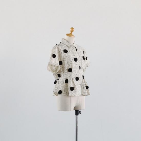 可愛らしさが爆発しているブラウス。可愛らしいさの裏には、とてつもない手間暇が潜んでいます。可愛いは一日にしてならずの好例です。