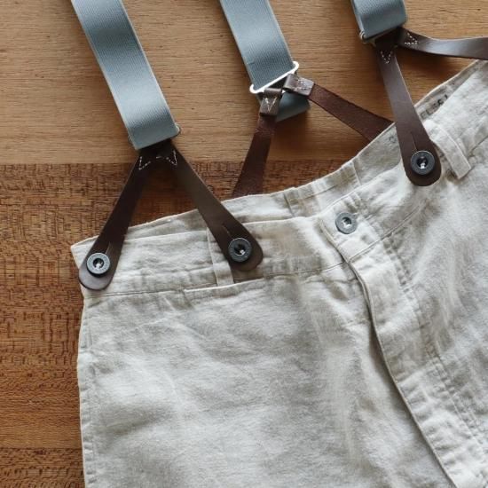 落ち感のあるリネン×コットンのパンツと、使いやすいサスペンダーをセットにした、当店オリジナルのサスペンダーパンツです。