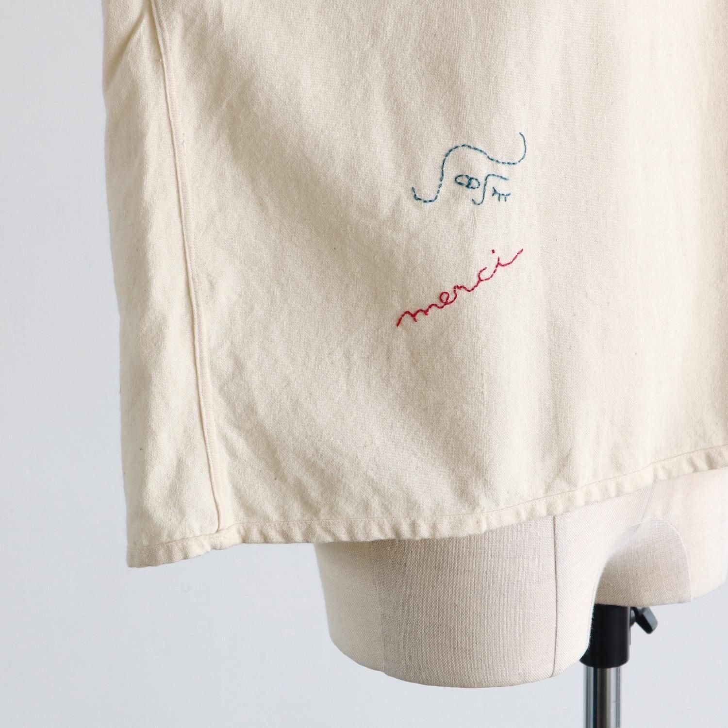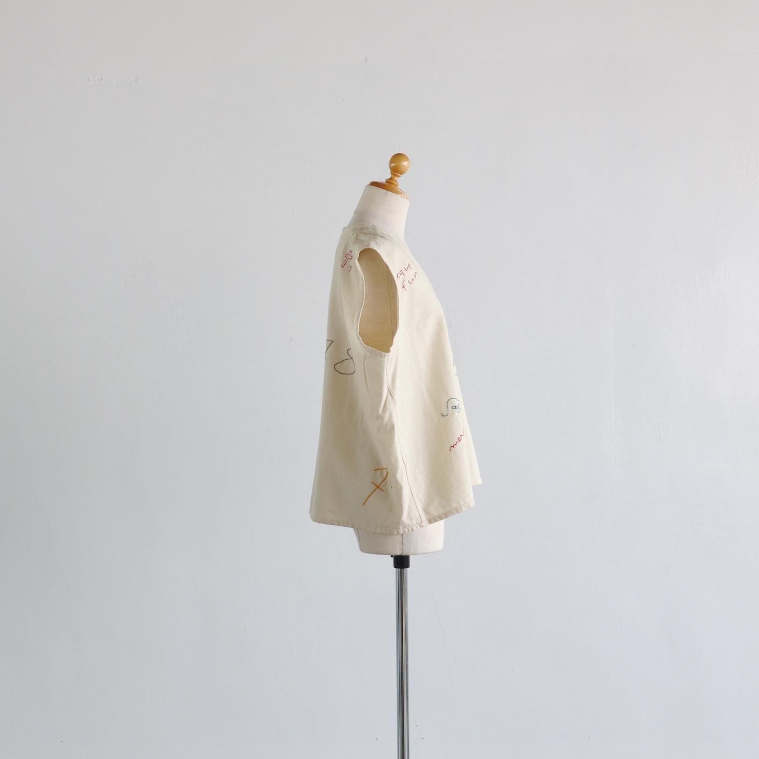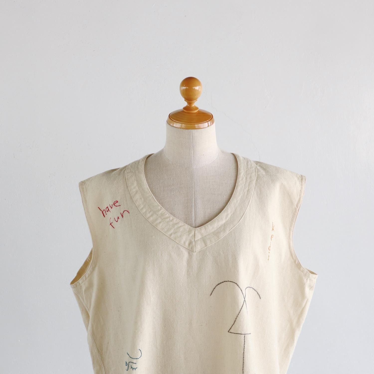 当店オリジナルのベストです。フランス生まれのヴィンテージのベストを、バランスの取りやすい現代的なサイズ感に仕立て直し、遊び心ある手刺繍を施しました。