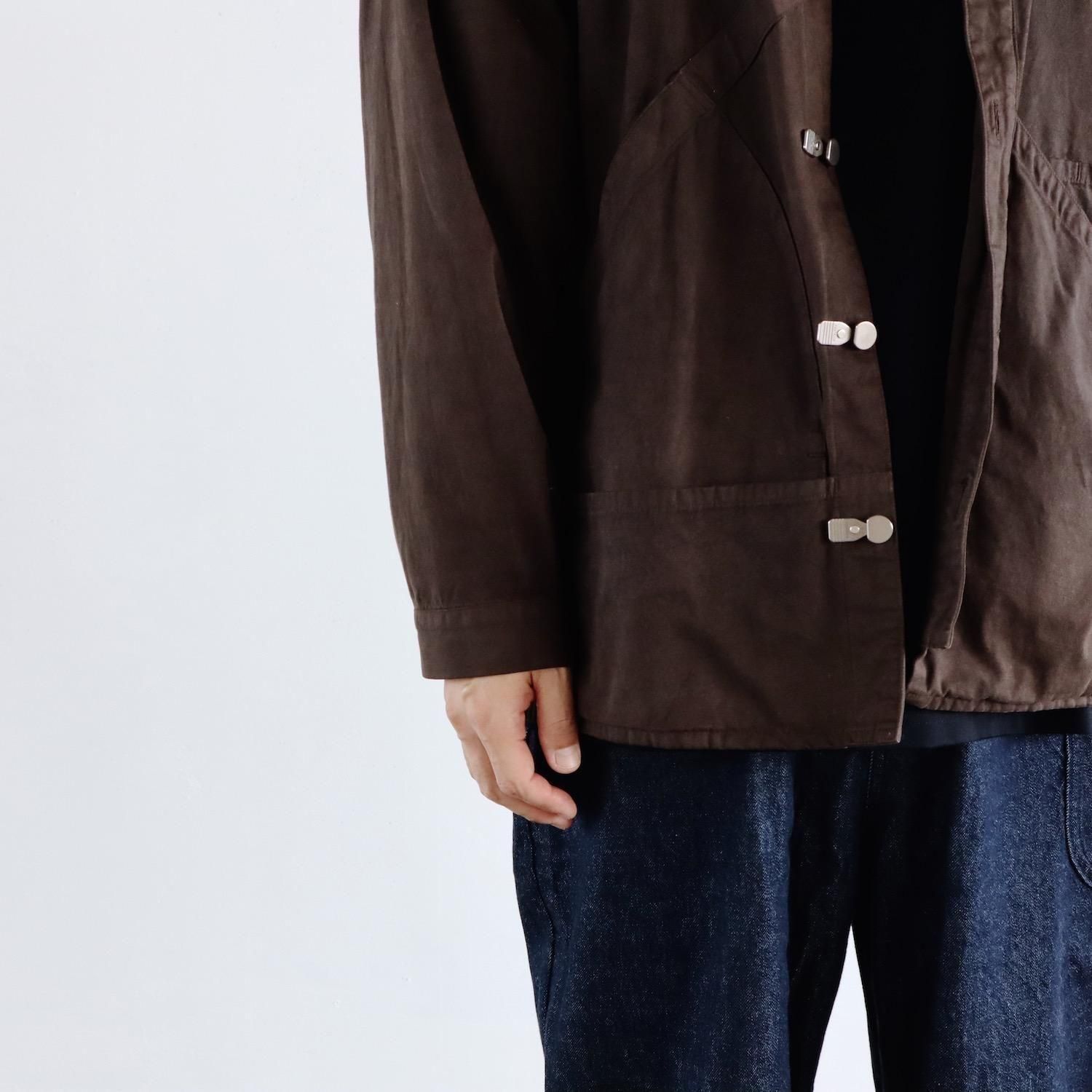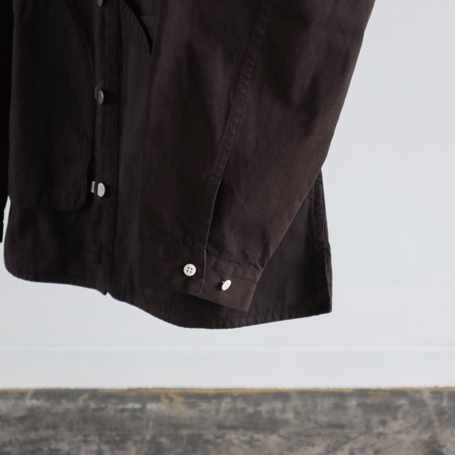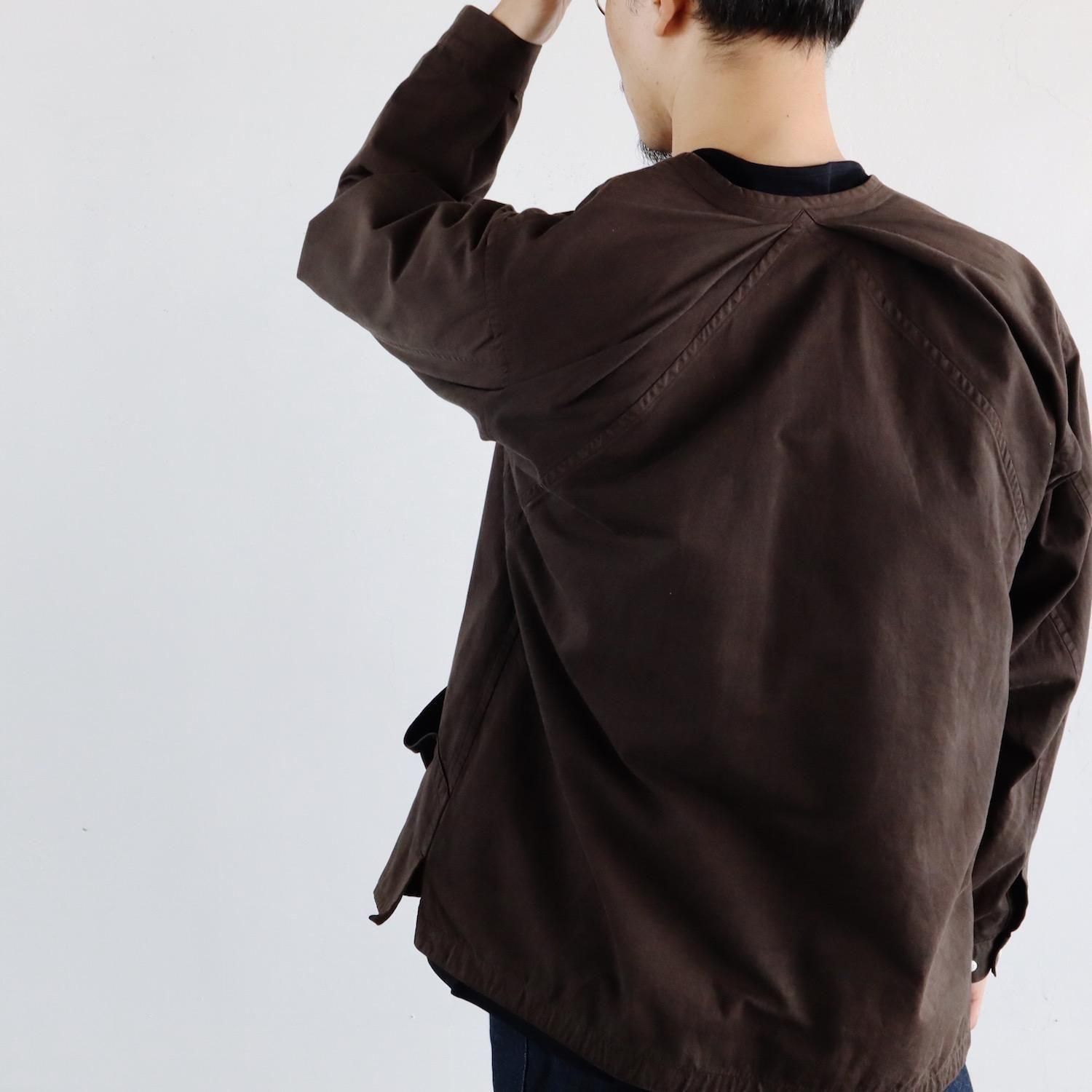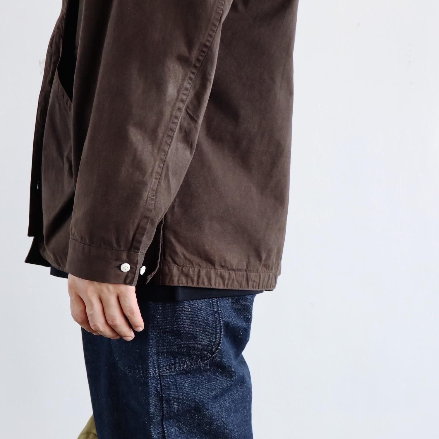 1920年代のワークウェアなどで使われていたウェザークロスを使用。ジャケットと聞くと分厚い生地を想像しますが、厚地のシャツぐらいの生地感です。