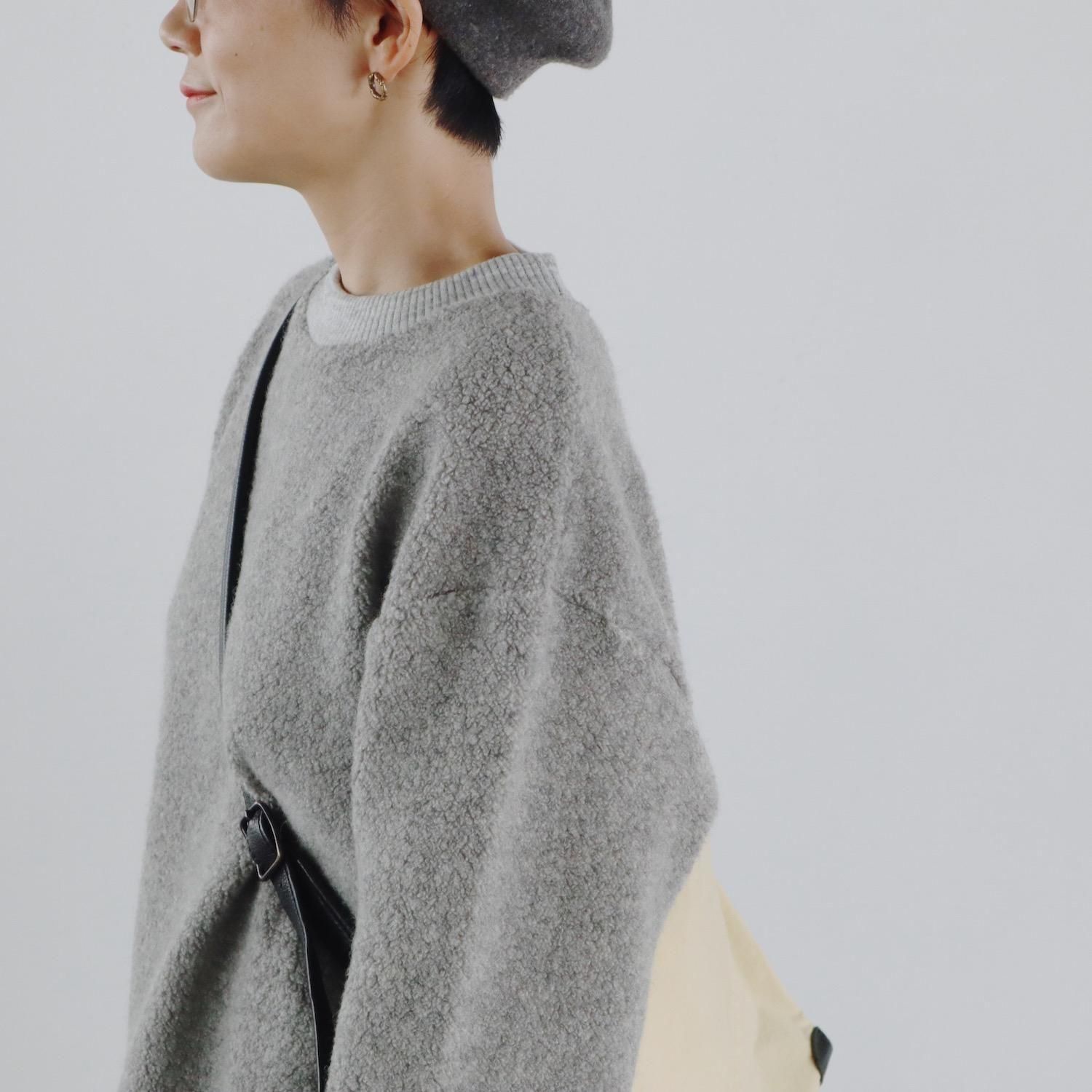 モコモコとした愛らしい表情のウールプルオーバーです。