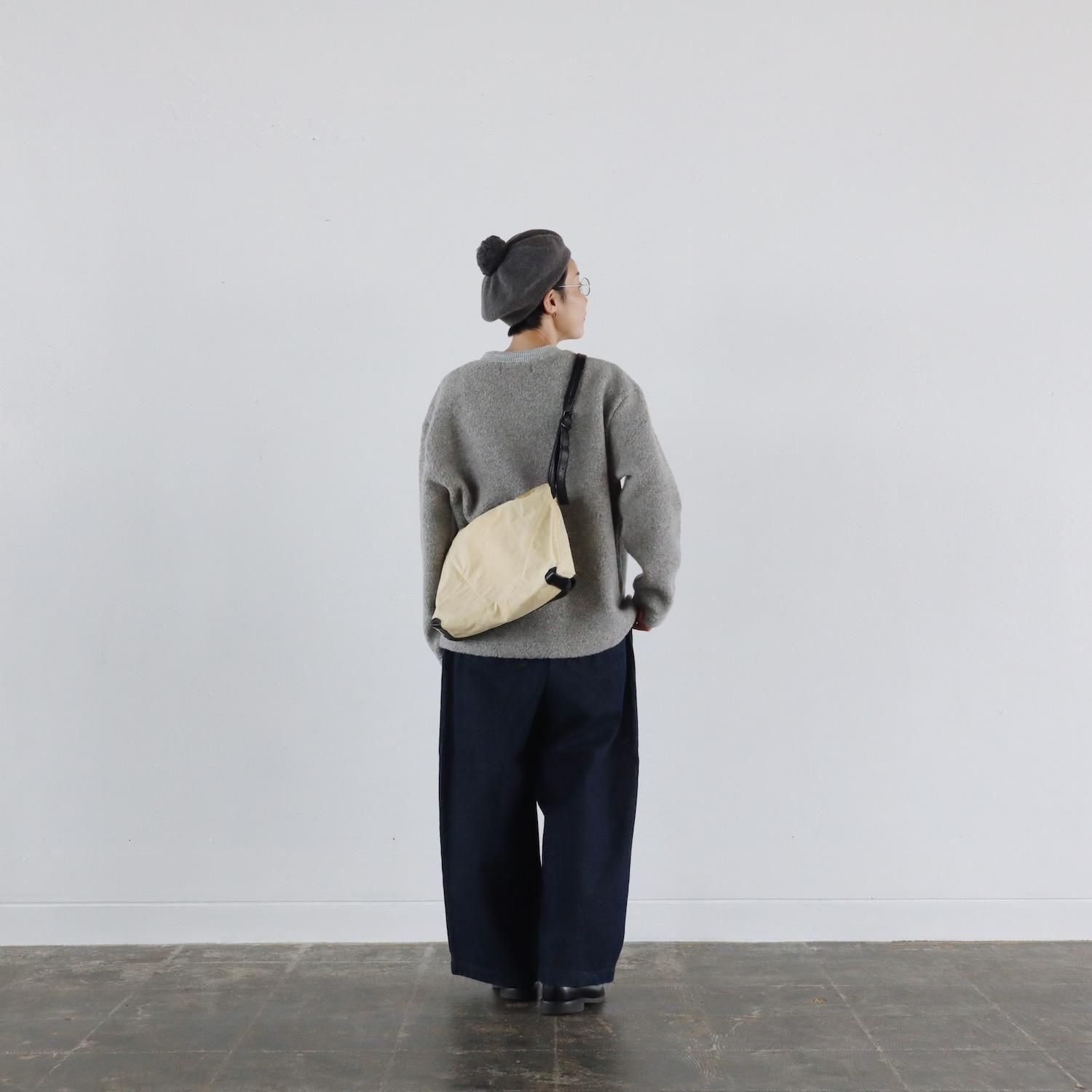 ゆったりとした身幅で、袖を捲って内側の生地を覗かせても良い雰囲気です。襟は太めのリブでダラリとならず、でもでも肩に力の入らないリラックスできる一枚です。