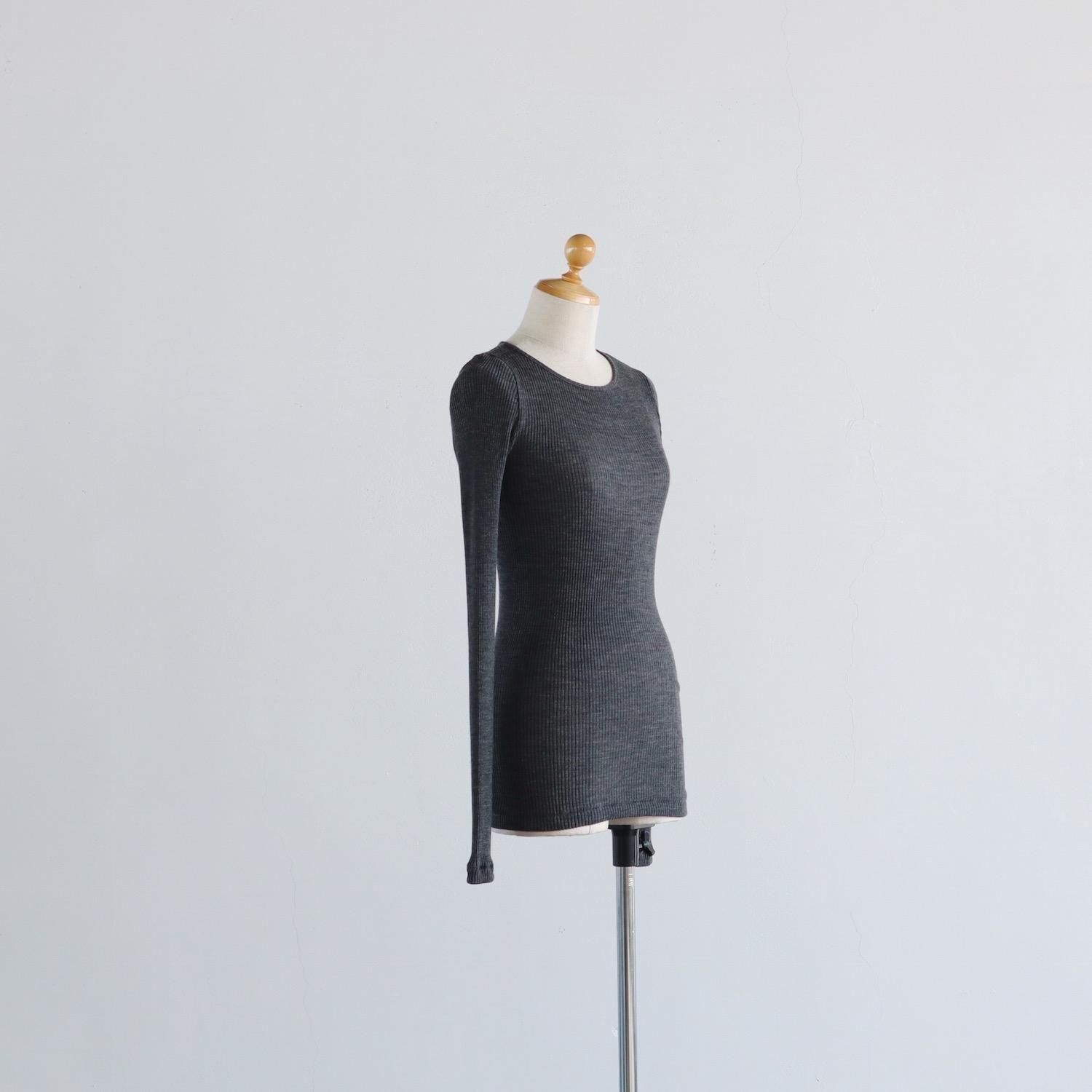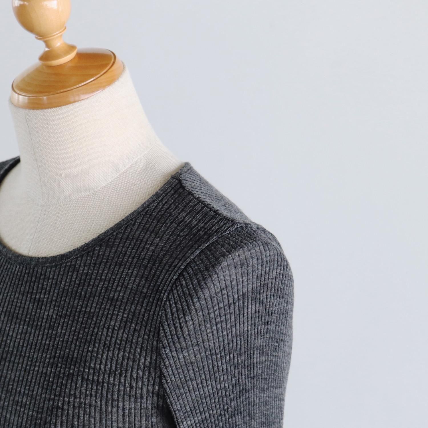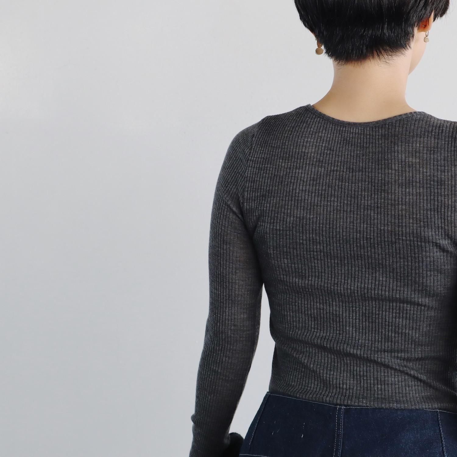 ウールシフォンリブという素材で仕立てられた、柔らかなクルーネックのカットソーです。