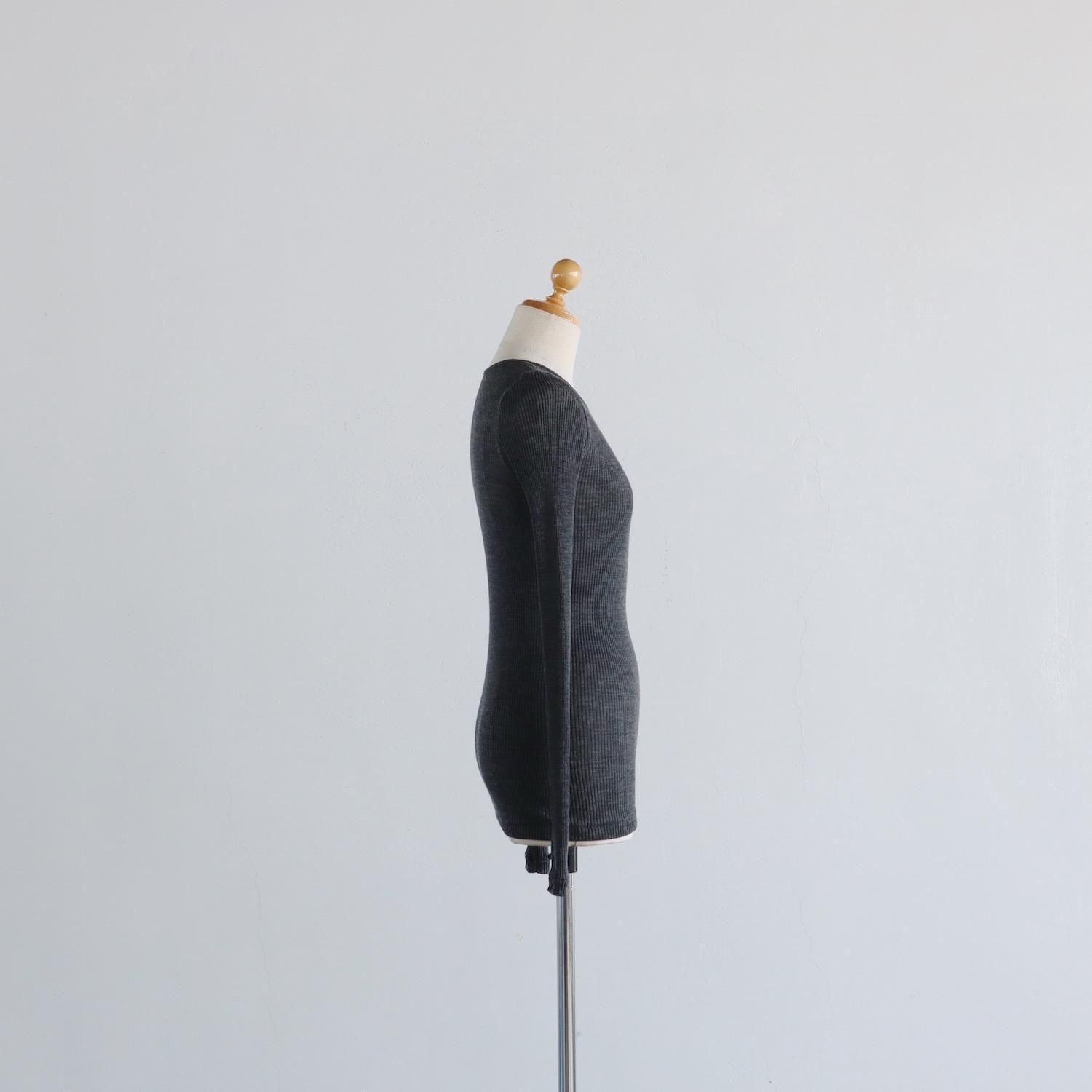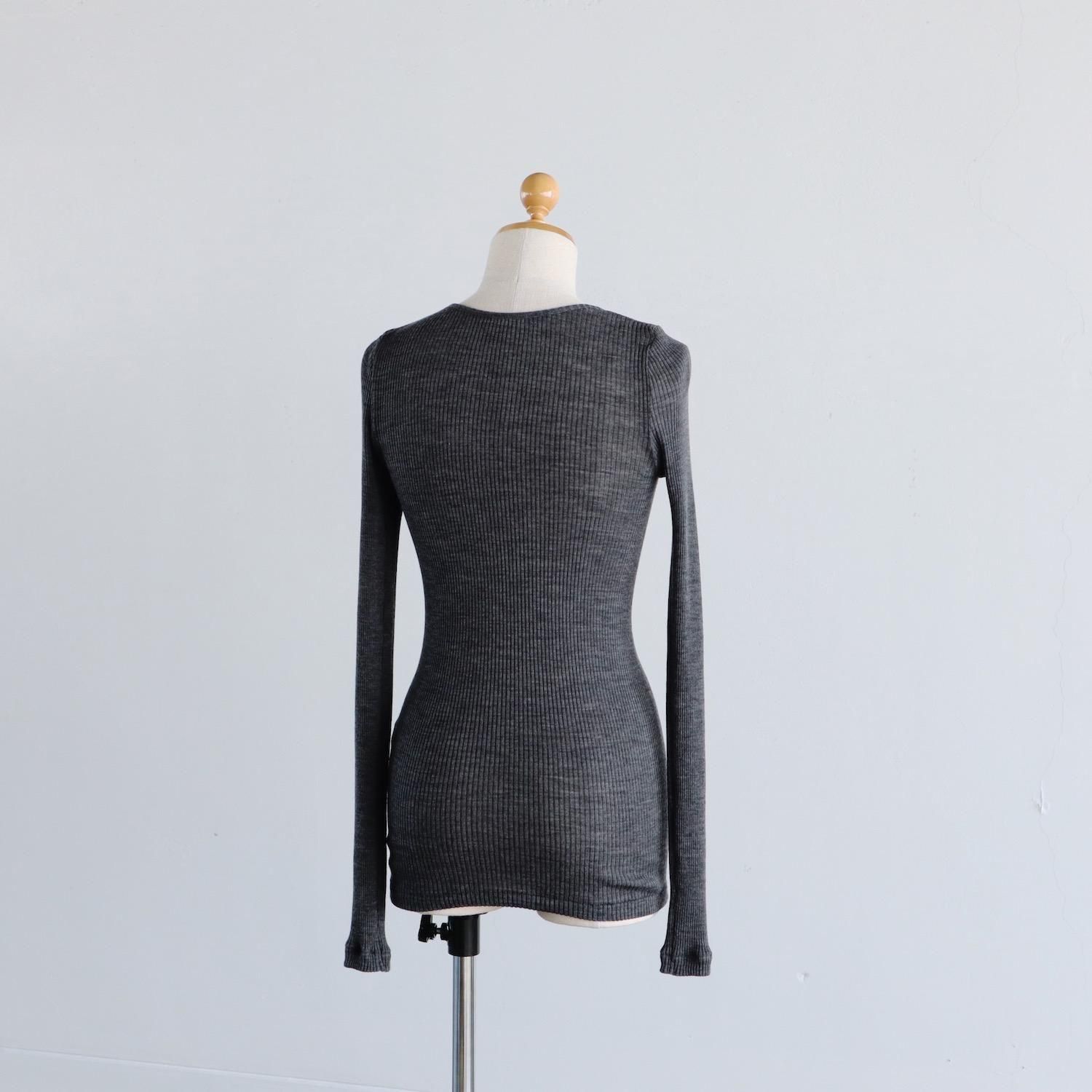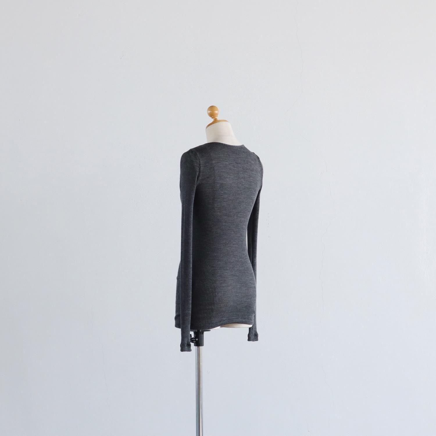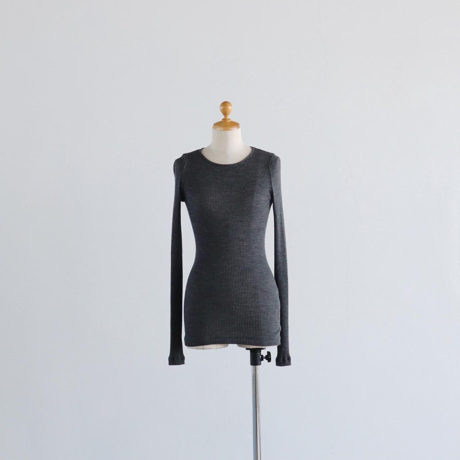 ウールシフォンリブという素材で仕立てられた、柔らかなクルーネックのカットソーです。