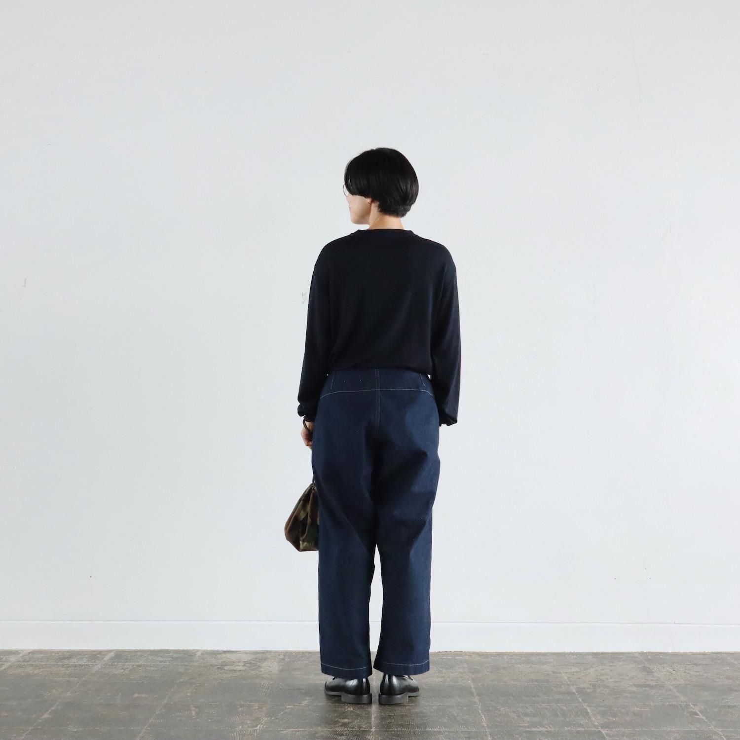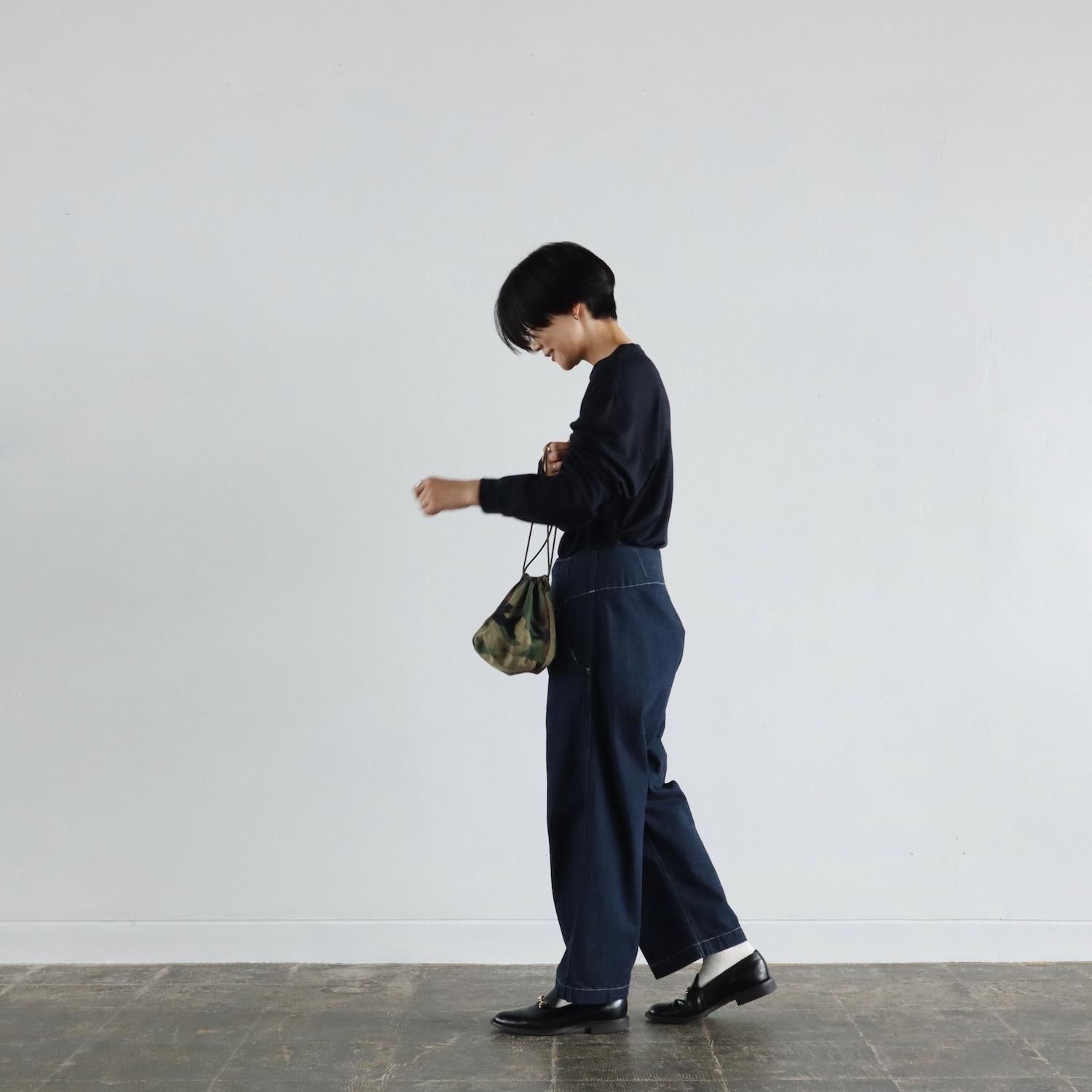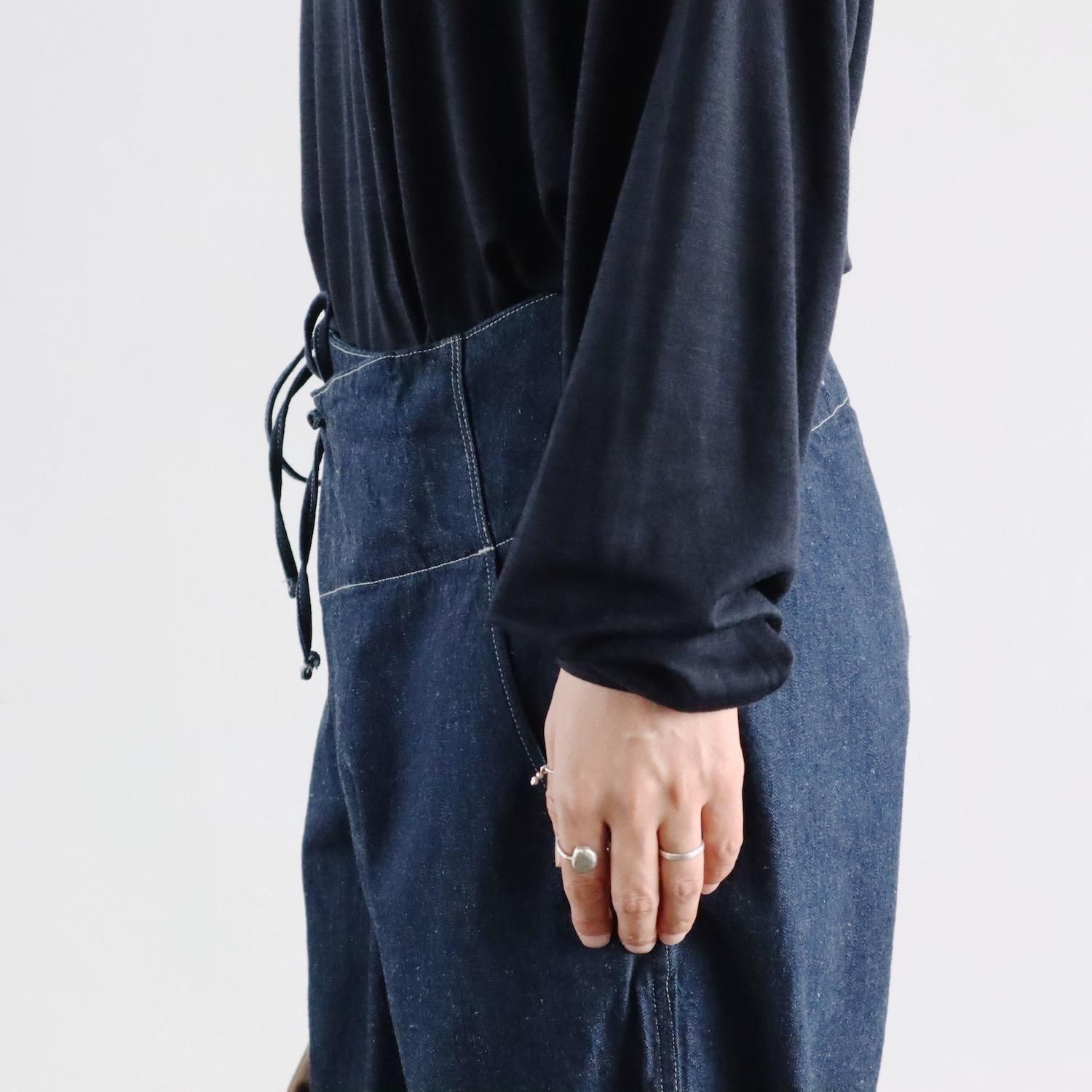 生地のドレープを活かすため、ベーシックでシンプルなデザインに仕上げました。様々なスタイリングに馴染みやすく、素材が持つ上質さを存分に楽しめるアイテムです。
