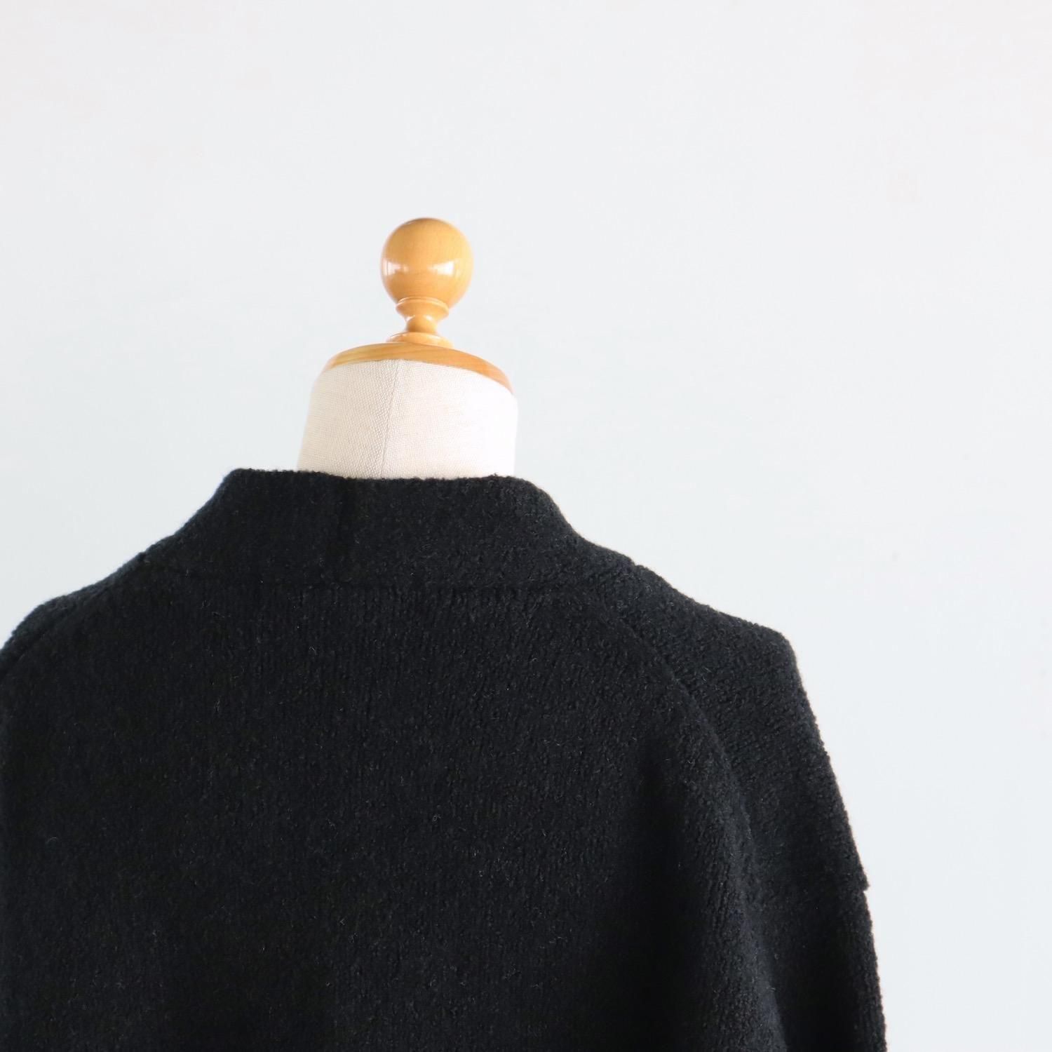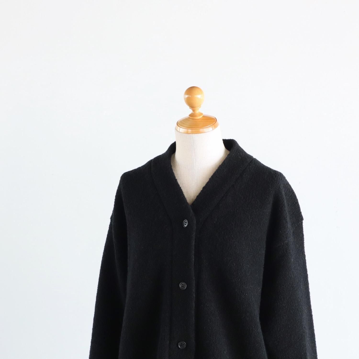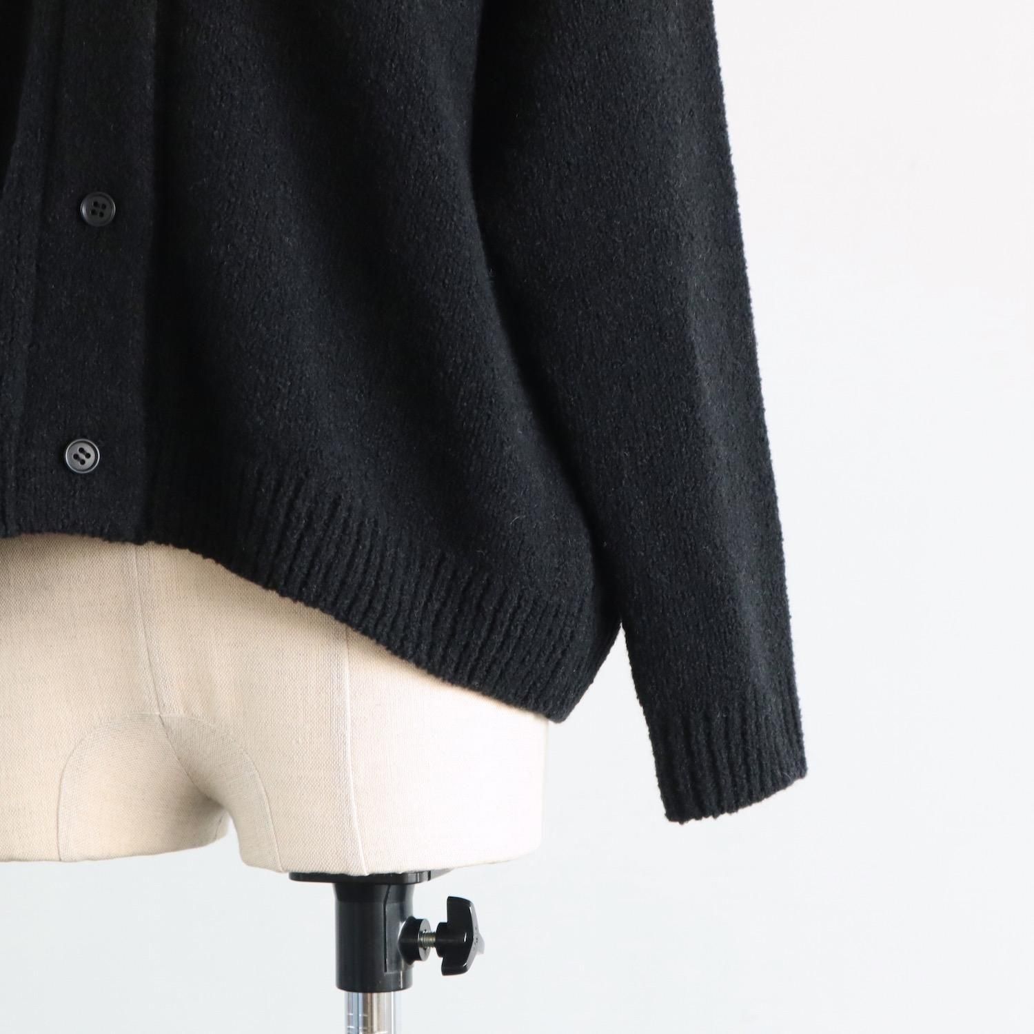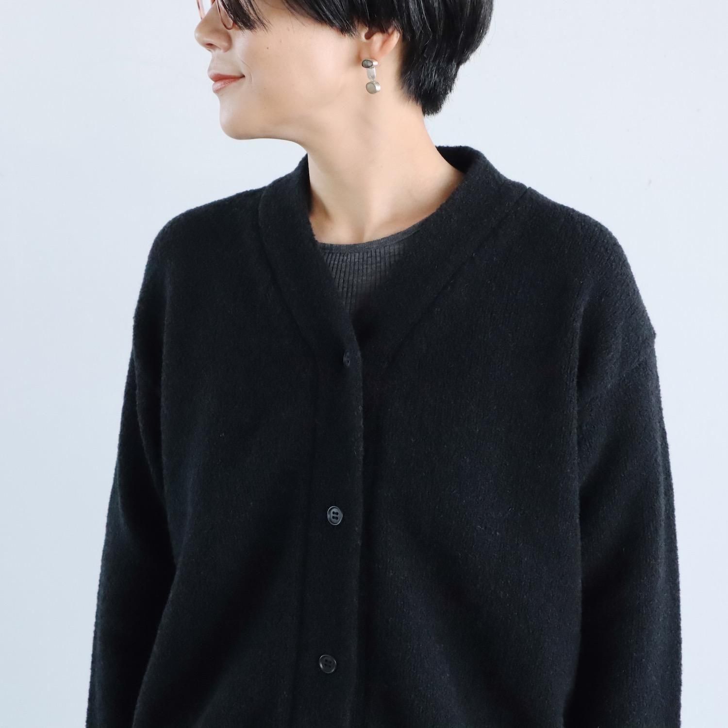 インにシャツやハイゲージのニットが着込める程よい身幅、お腹辺りまである着丈。どんな時でも側にいて欲しい、頼り甲斐のあるカーディガンだと思います。