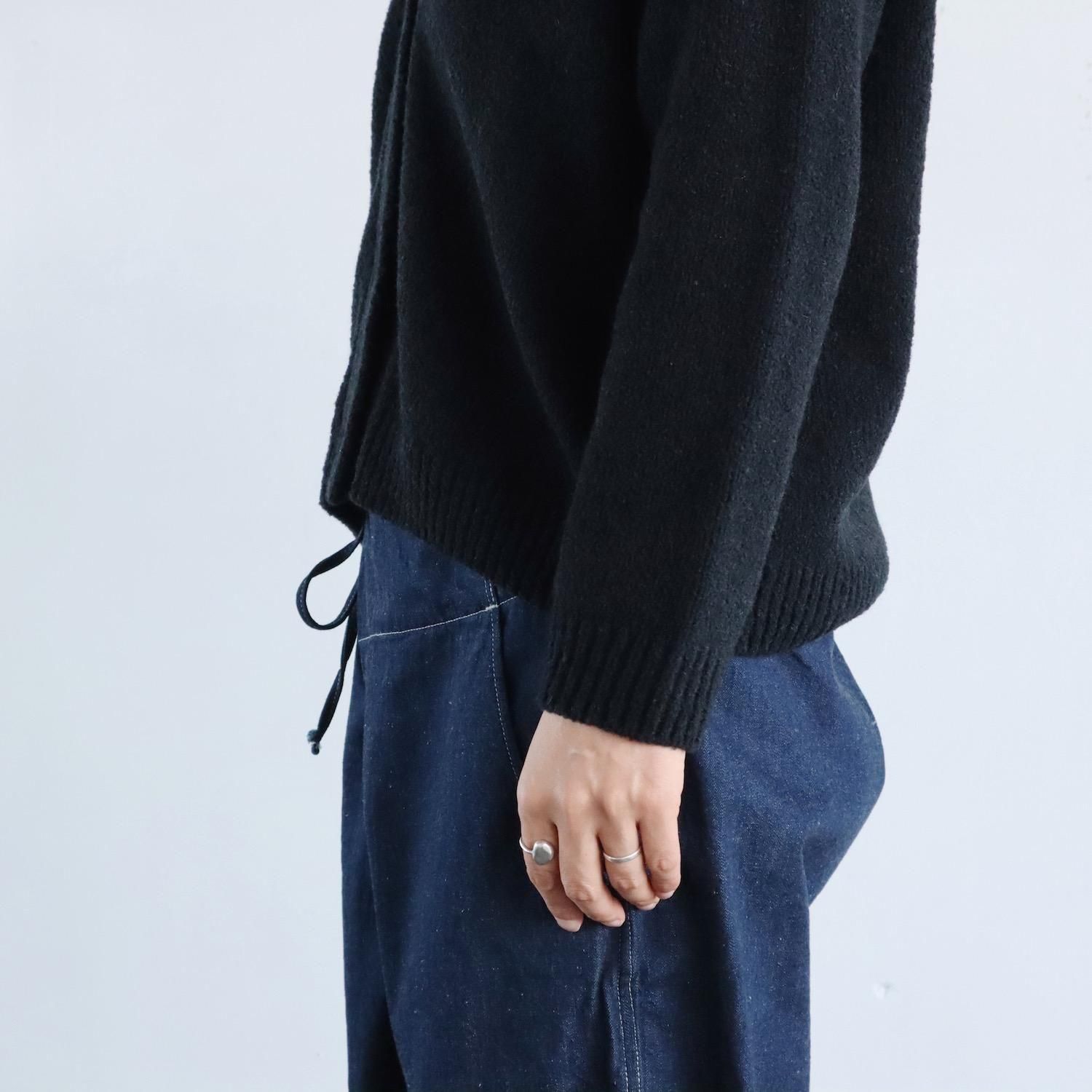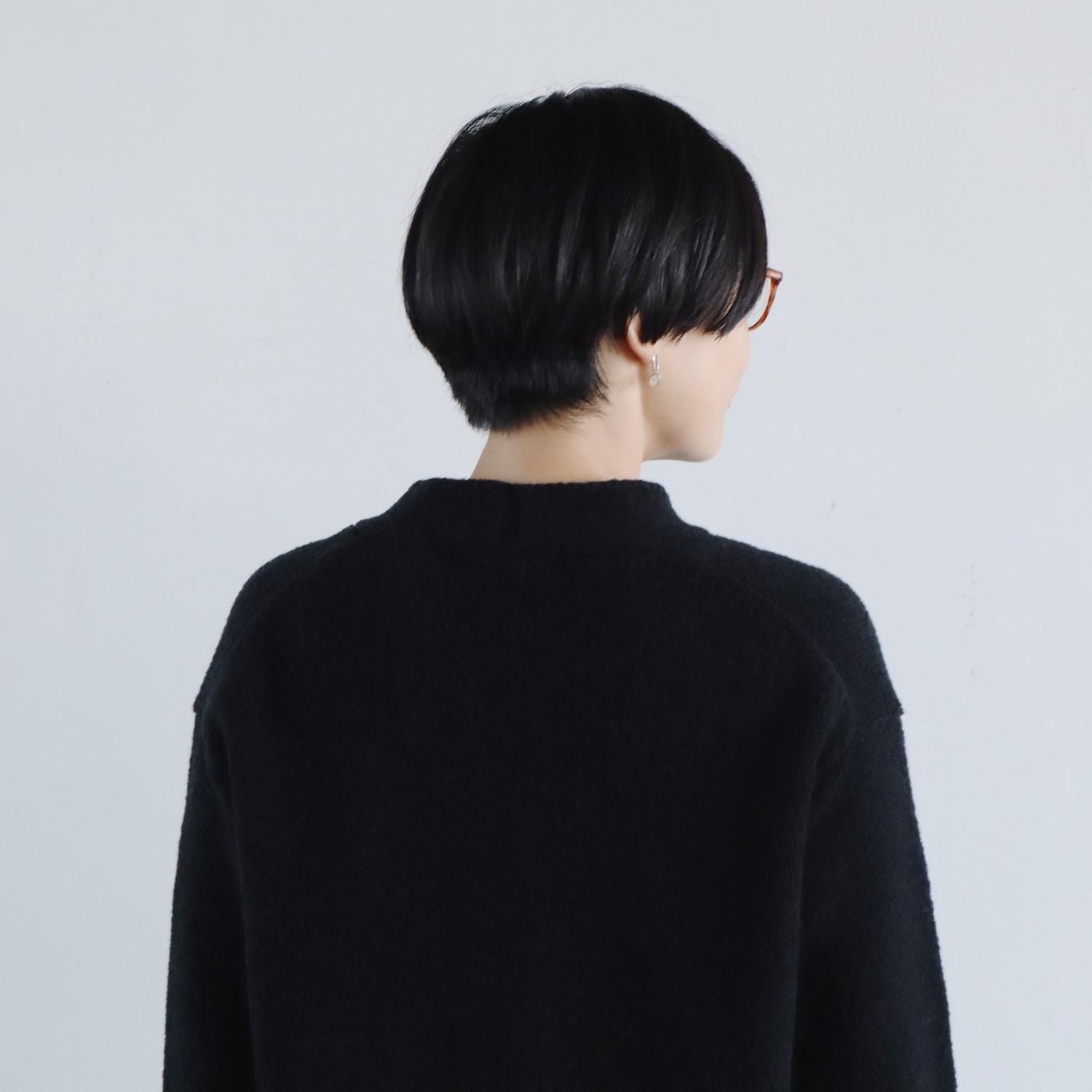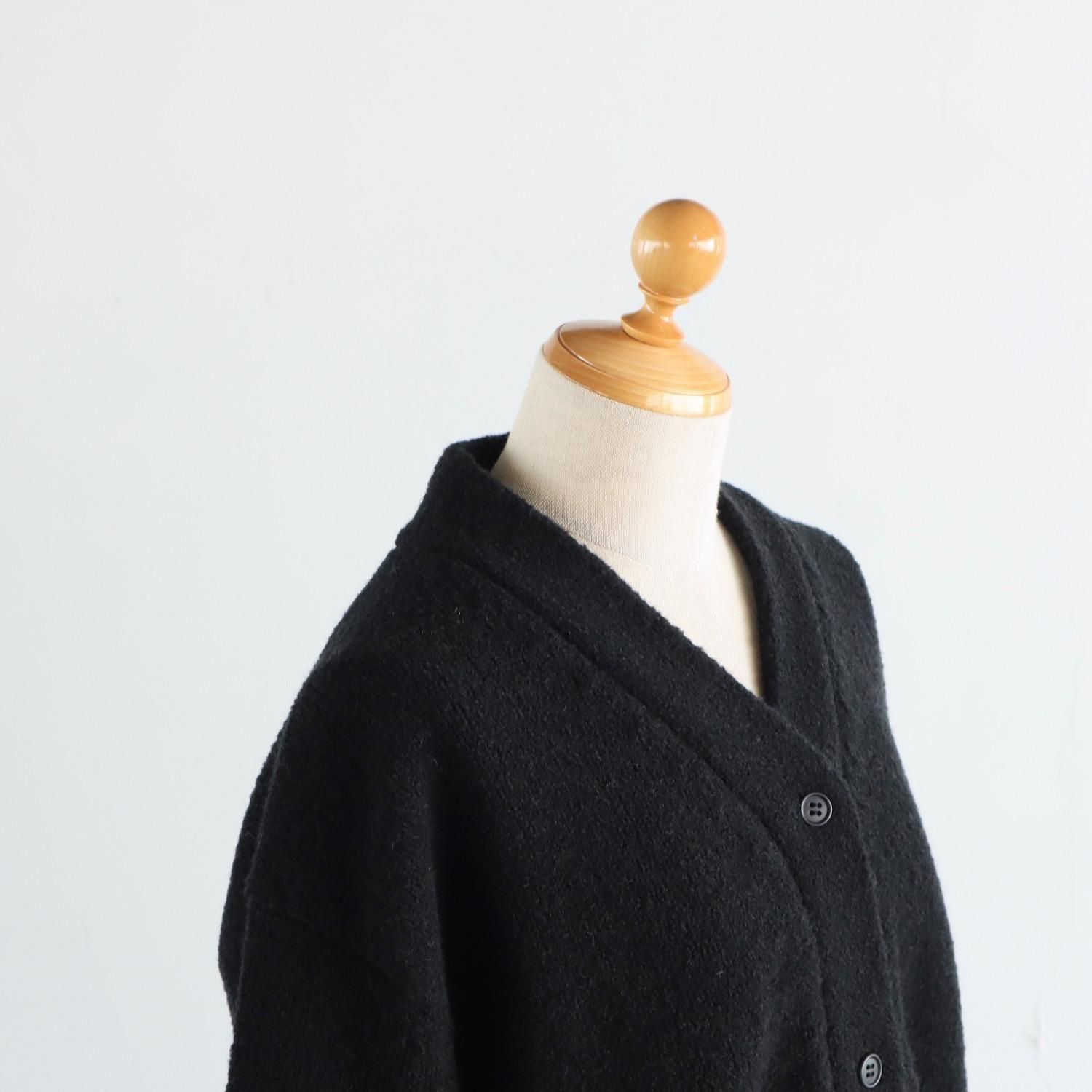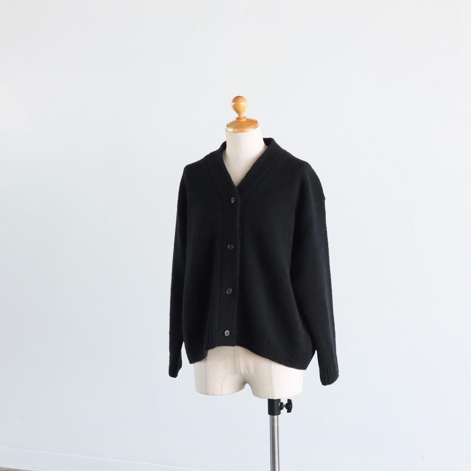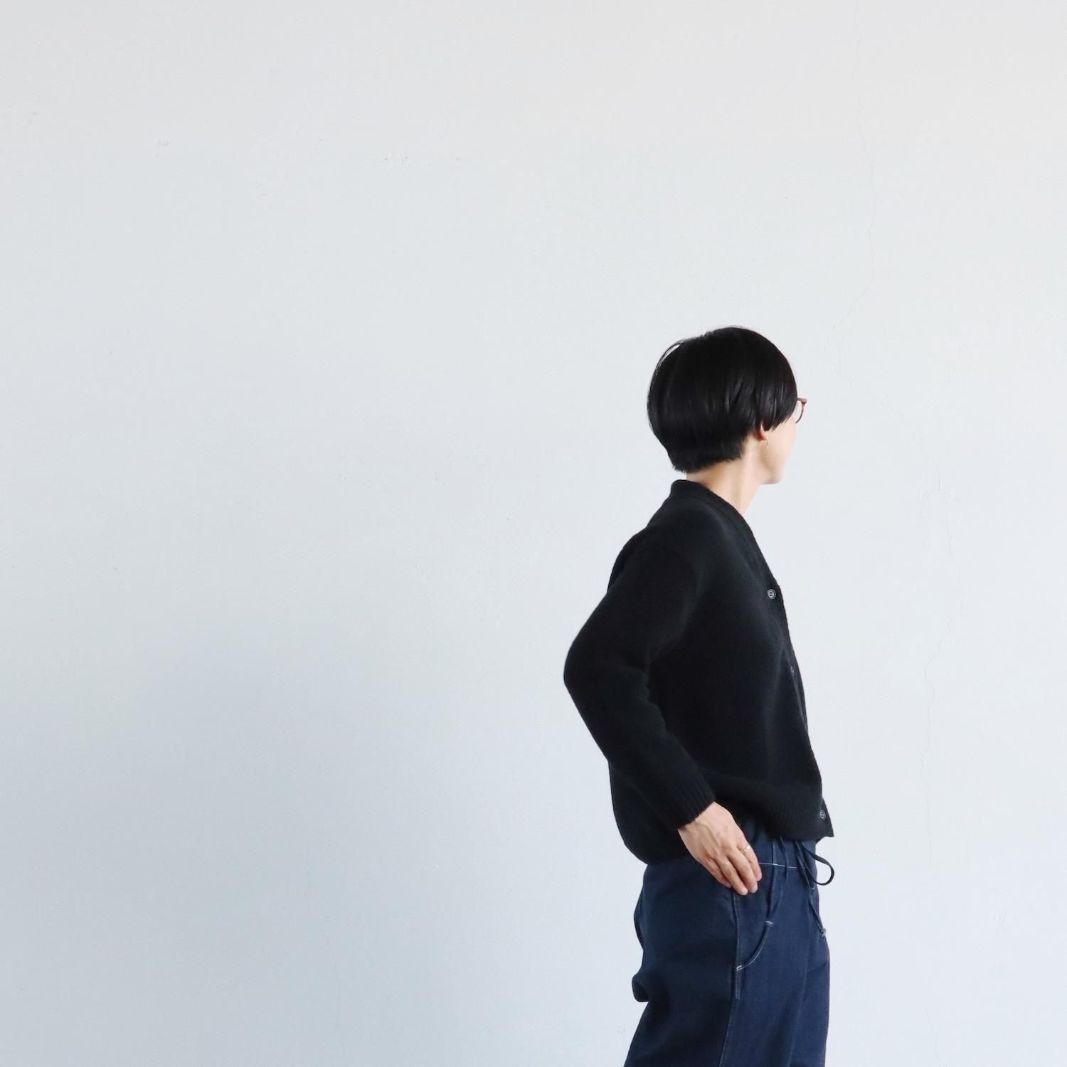 インにシャツやハイゲージのニットが着込める程よい身幅、お腹辺りまである着丈。どんな時でも側にいて欲しい、頼り甲斐のあるカーディガンだと思います。