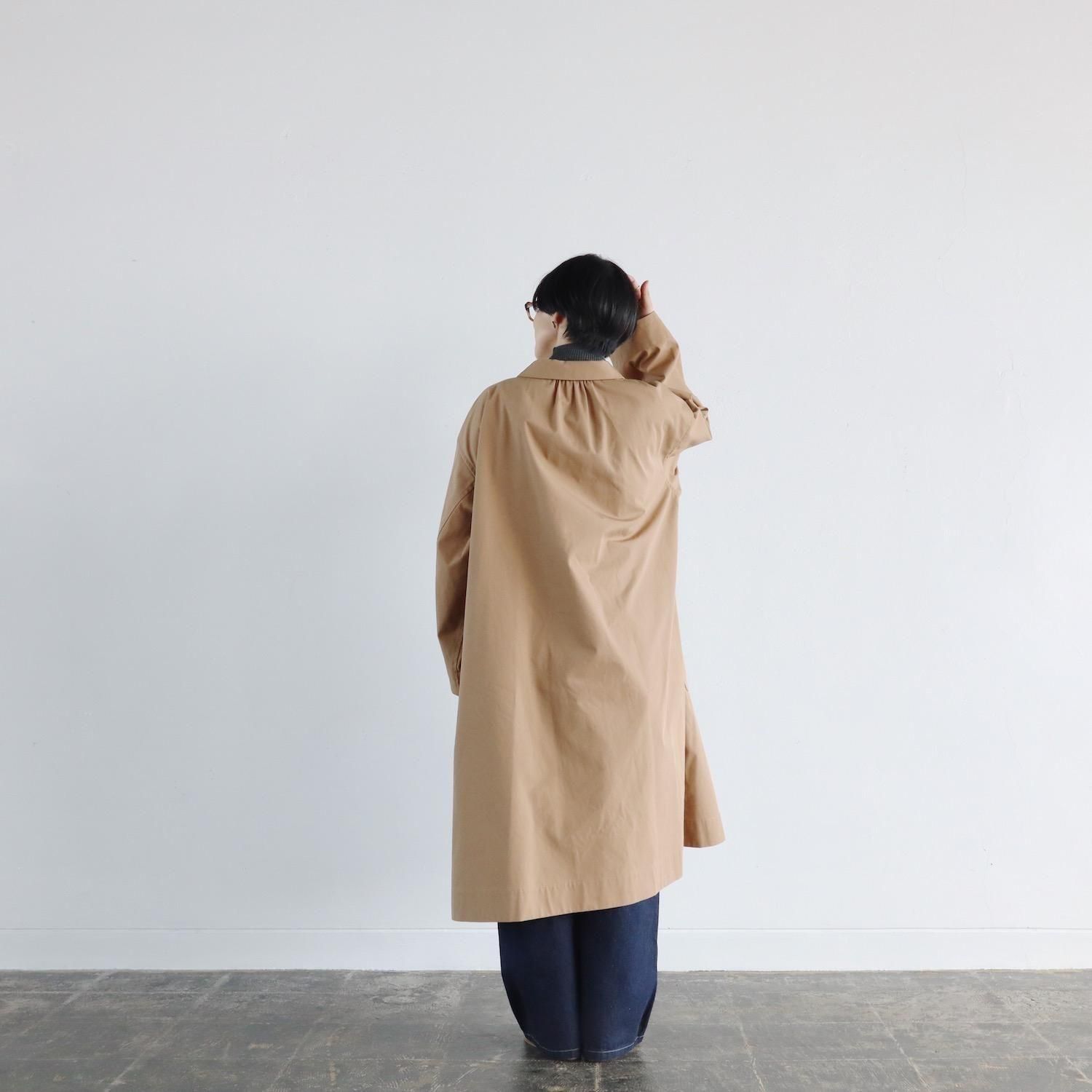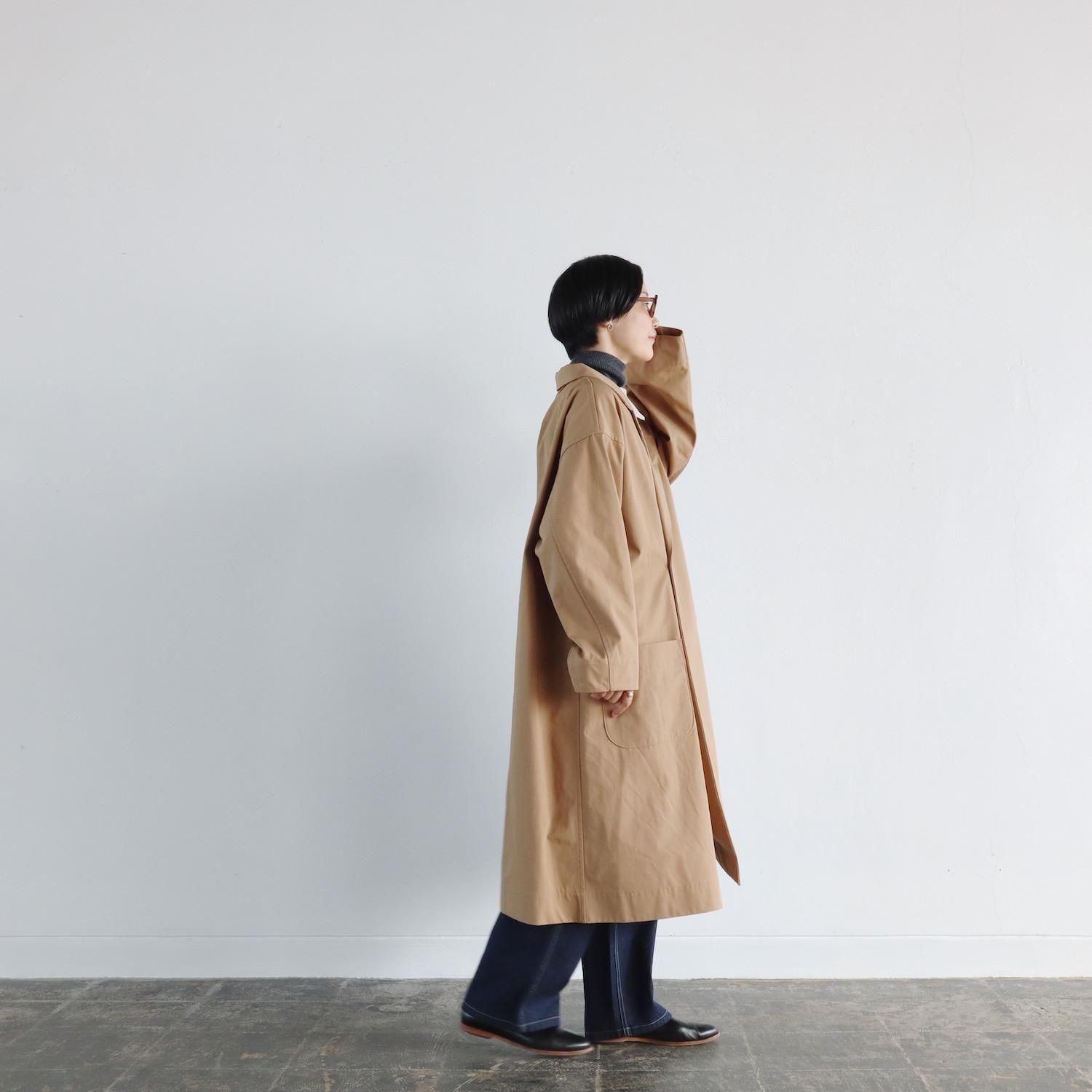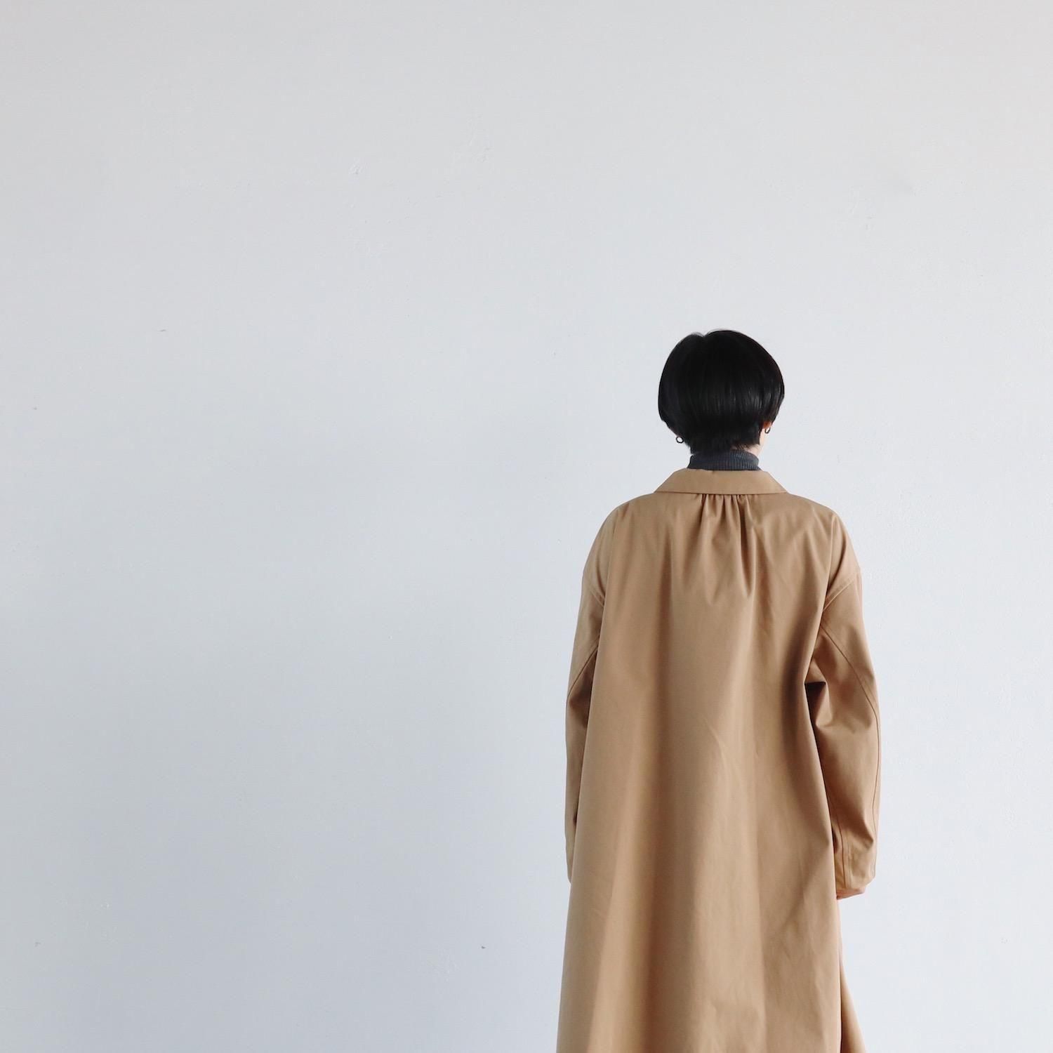 品名に「飾る春」とありますが、春にしか着られないなんてことは勿論ございません。初秋はシンプルに、カットソーの上に羽織って。分量感のあるリラックスしたシルエットなので、中にニットやスウェットを着込めば木枯らしもへっちゃらです。季節を縦横無尽に跨いで活躍してくれる一着です。