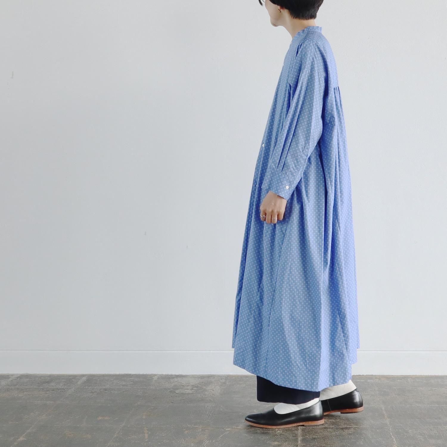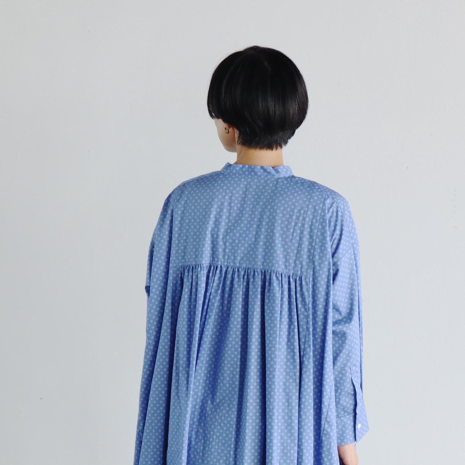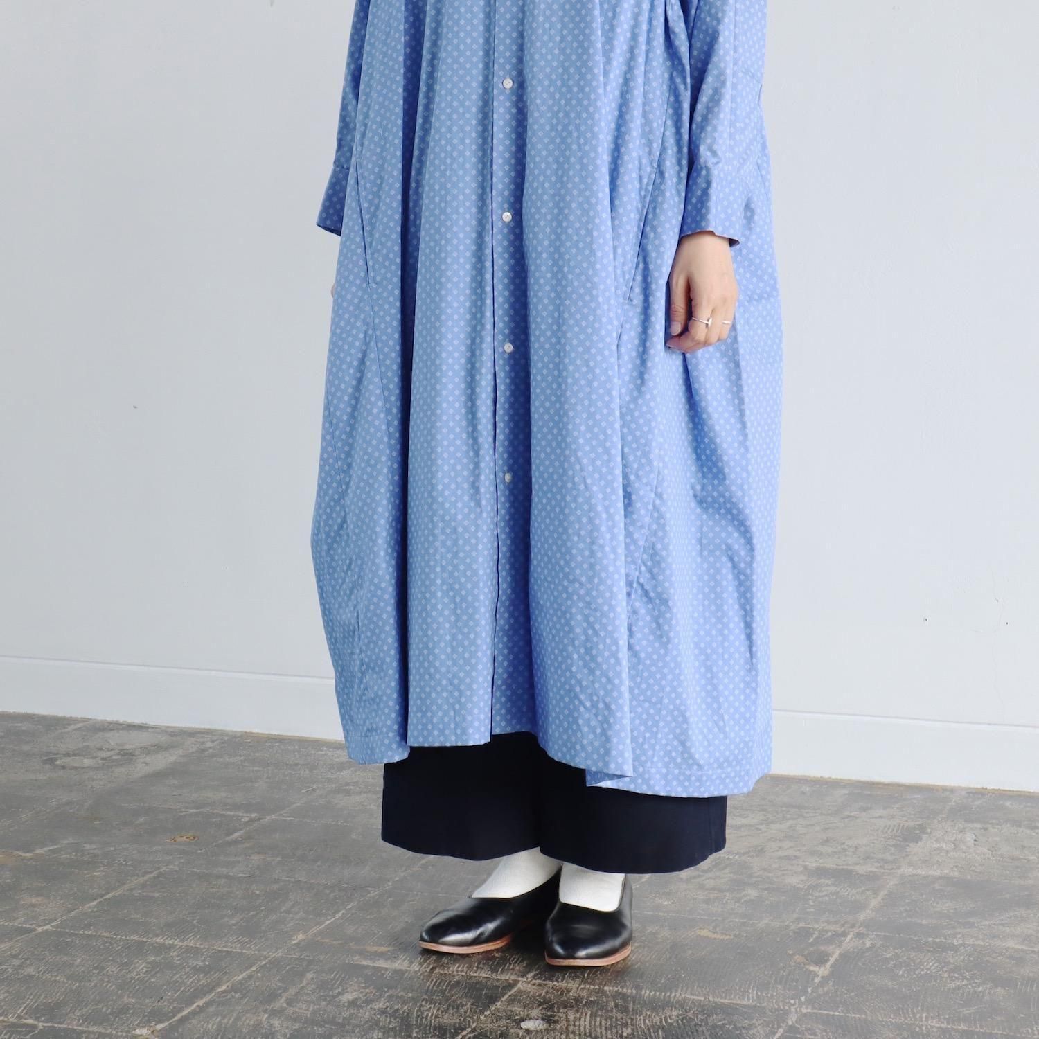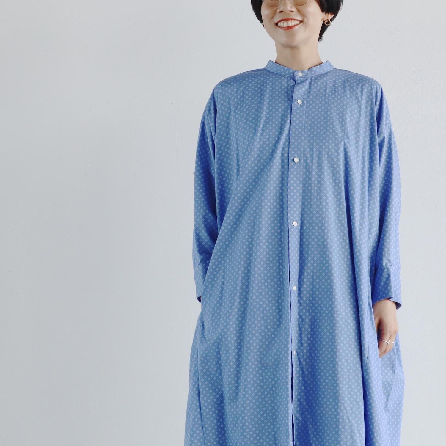 ワンピースとしてはもちろん、ボタンを開けてローブのようにしても良い雰囲気です。平面構造の衣服に身体を通すことで生まれる美しいシルエットを、ぜひお楽しみください。