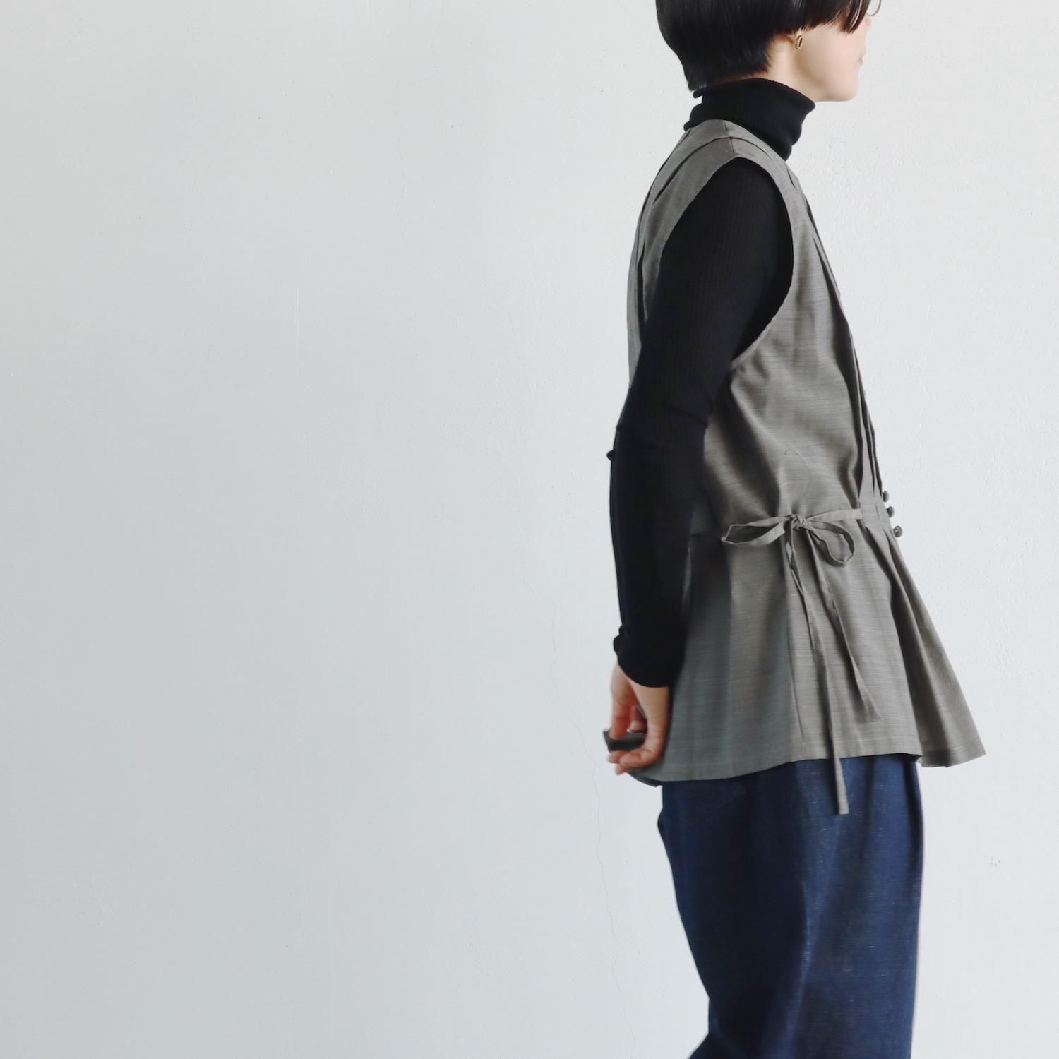 ウール×ポリエステルのハイブリッド素材を用いた、ベストとしても着られるブラウスです。