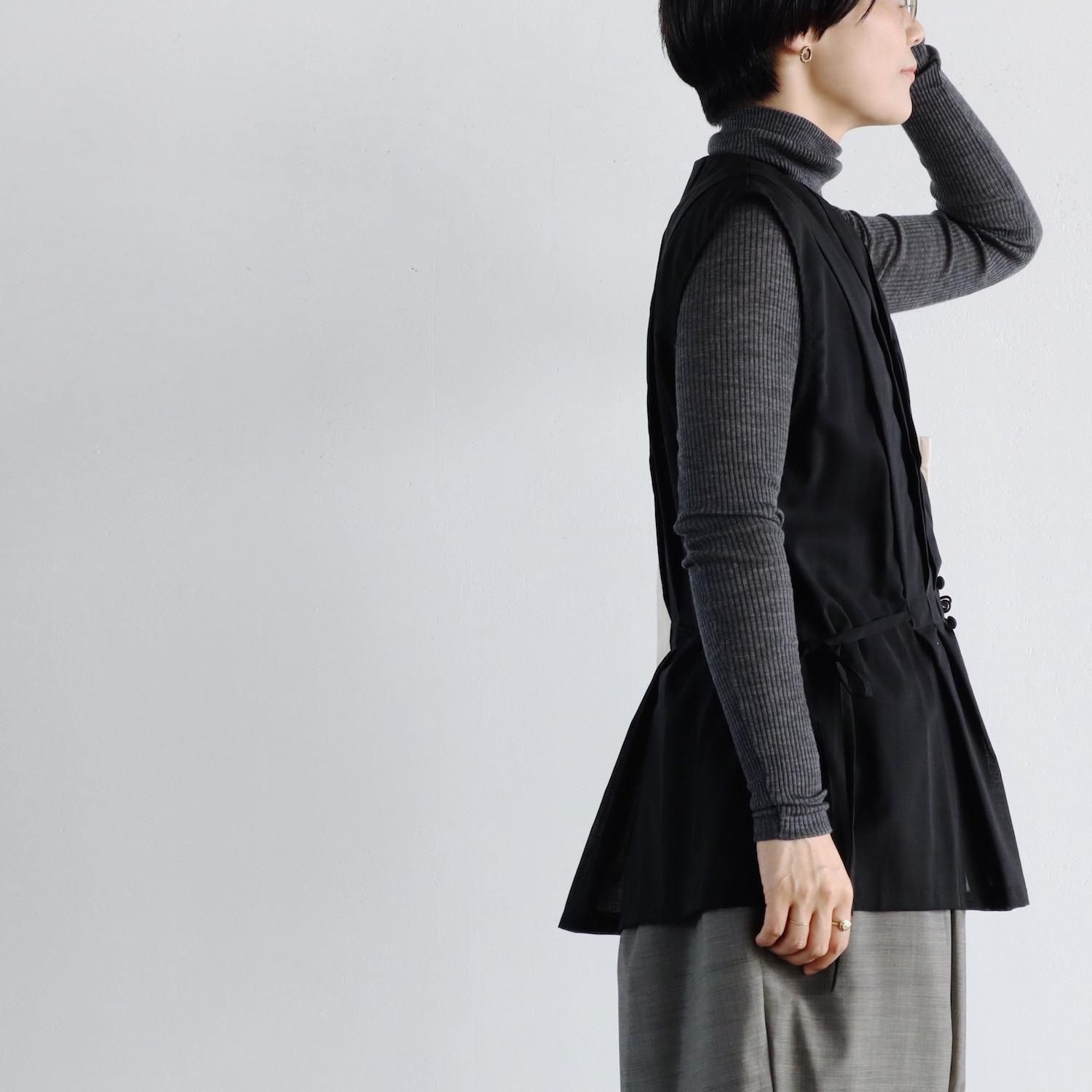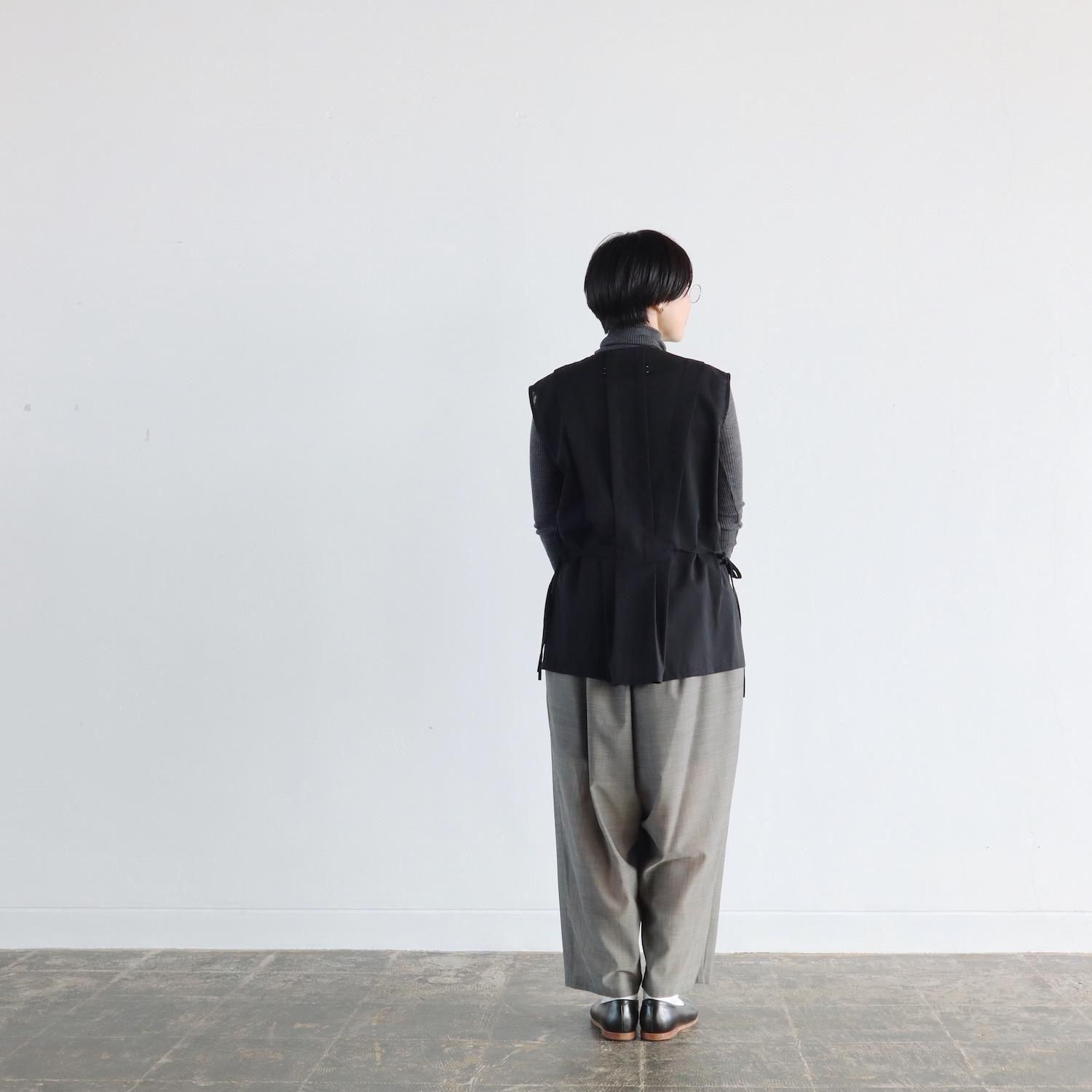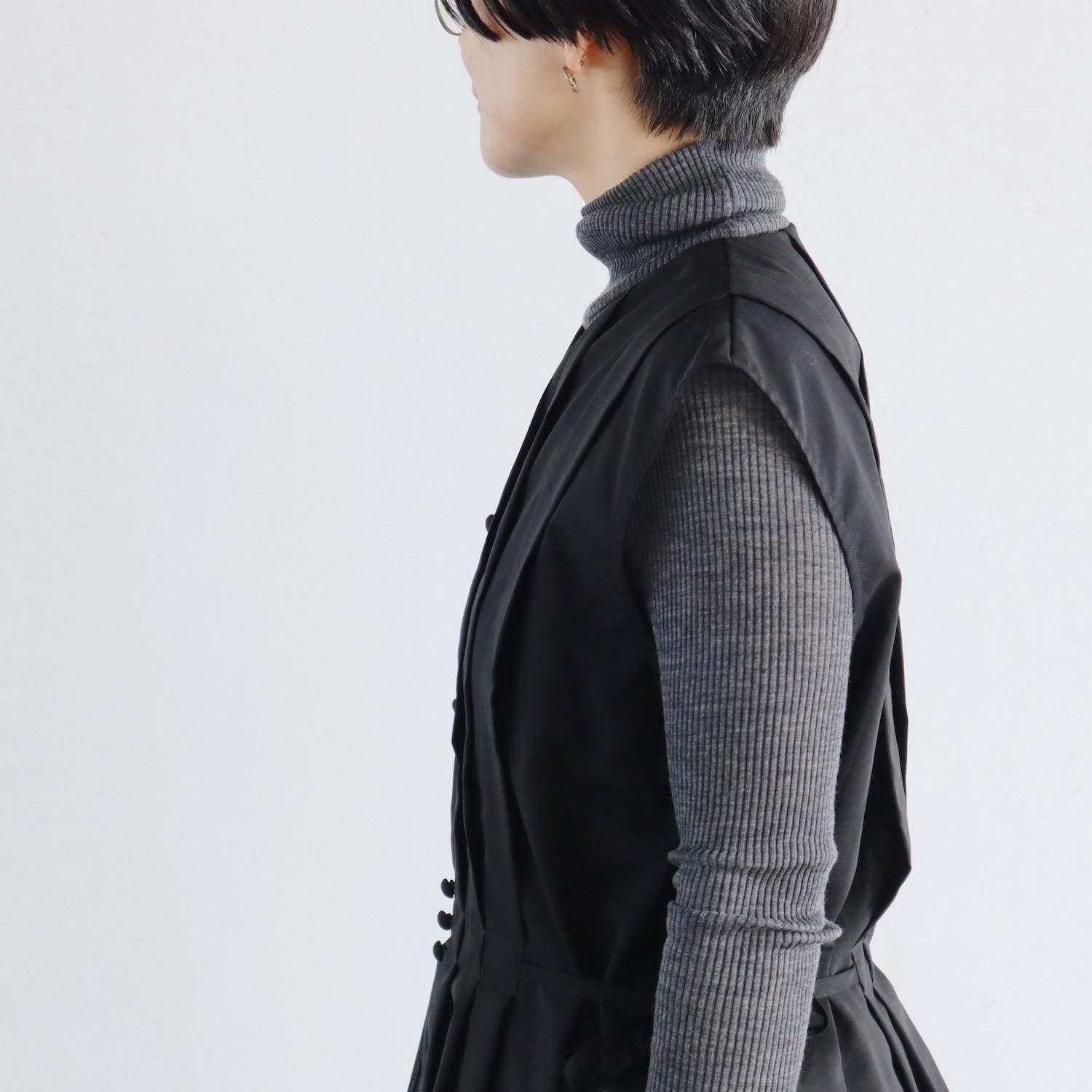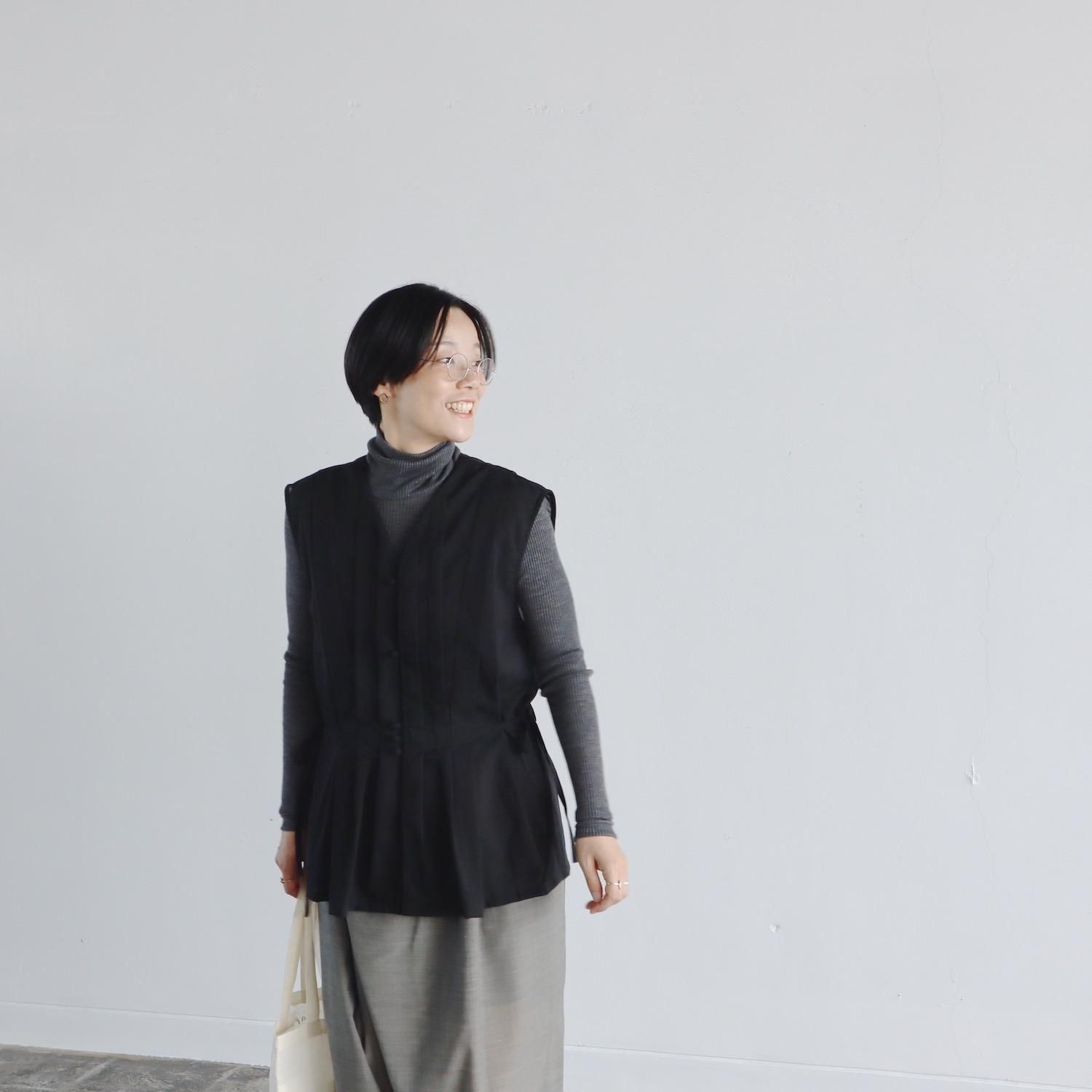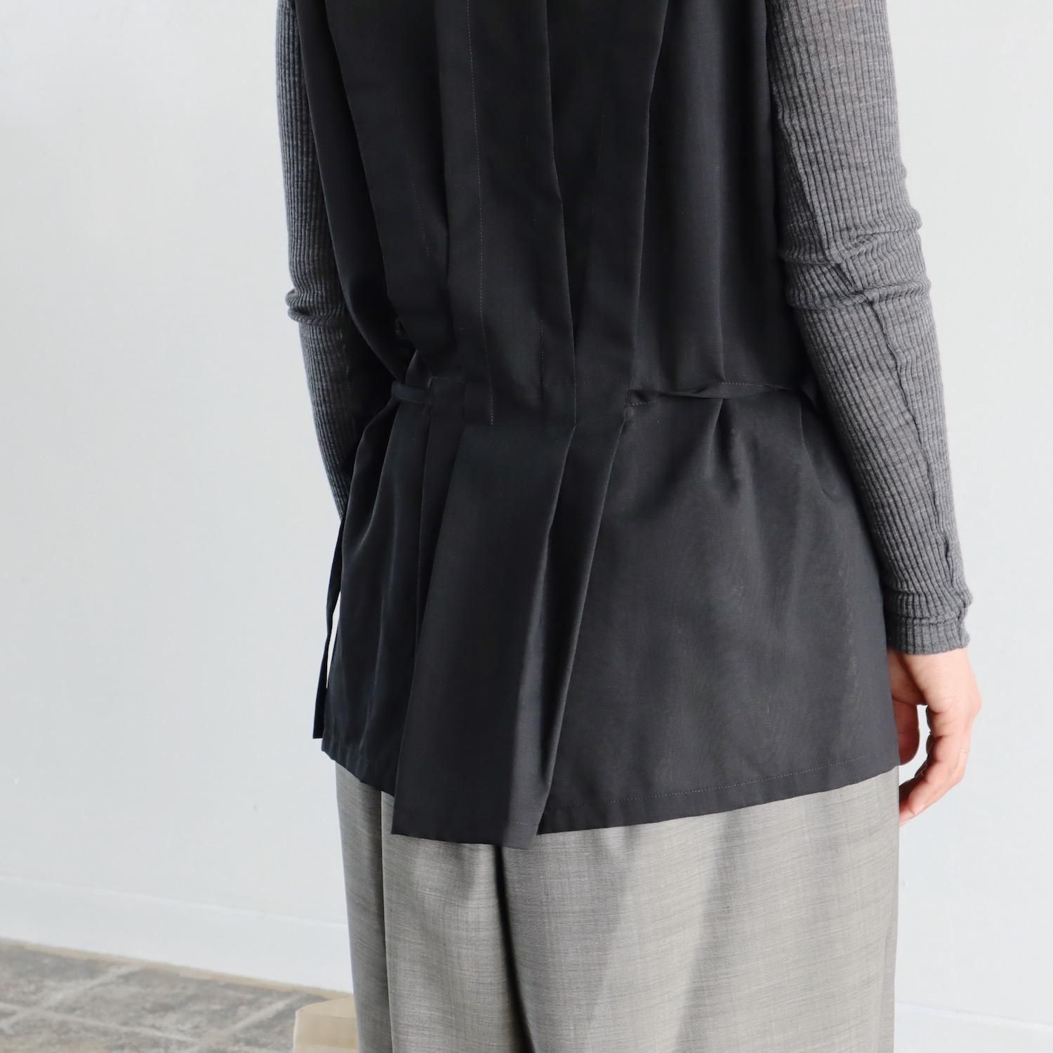 ウール×ポリエステルのハイブリッド素材を用いた、ベストとしても着られるブラウスです。