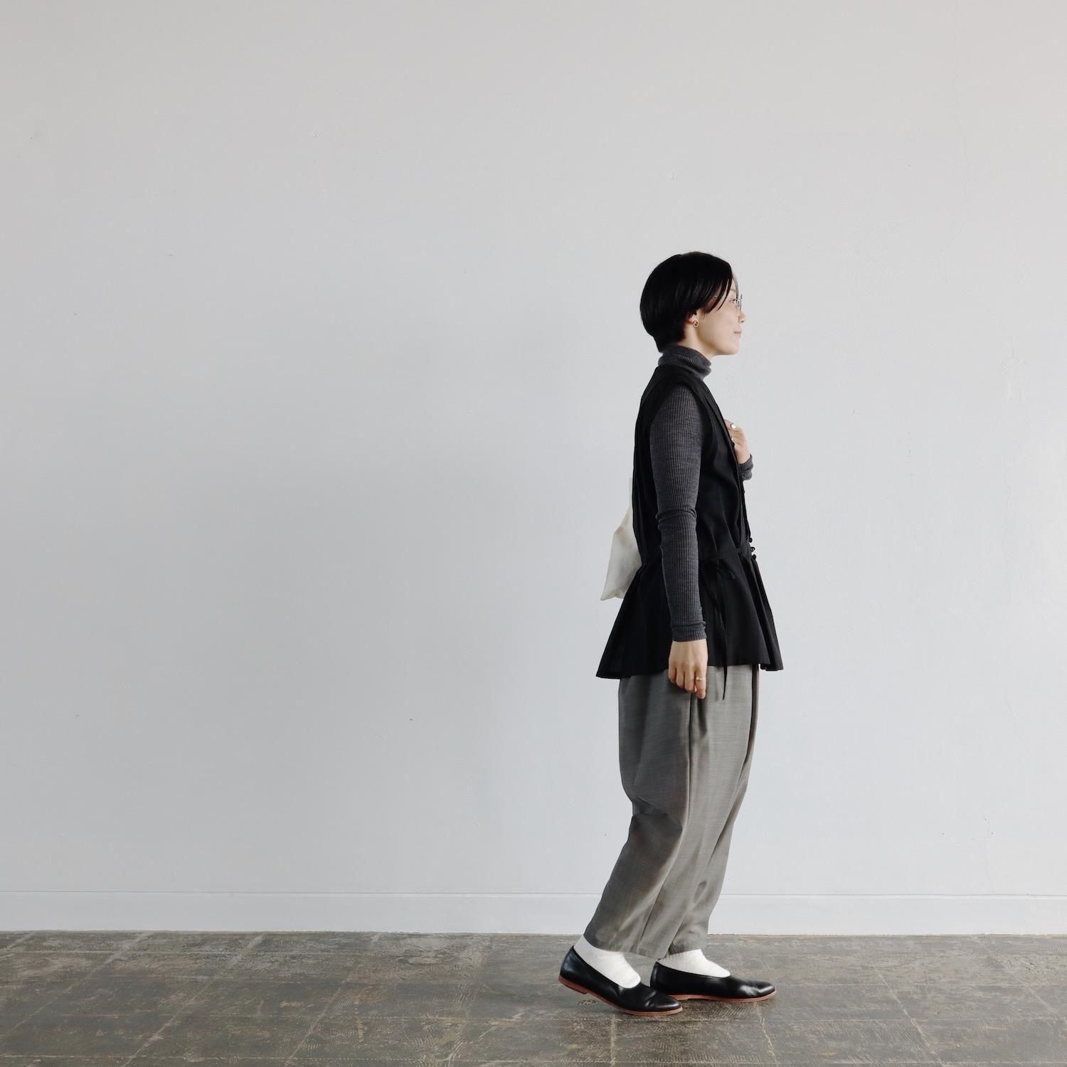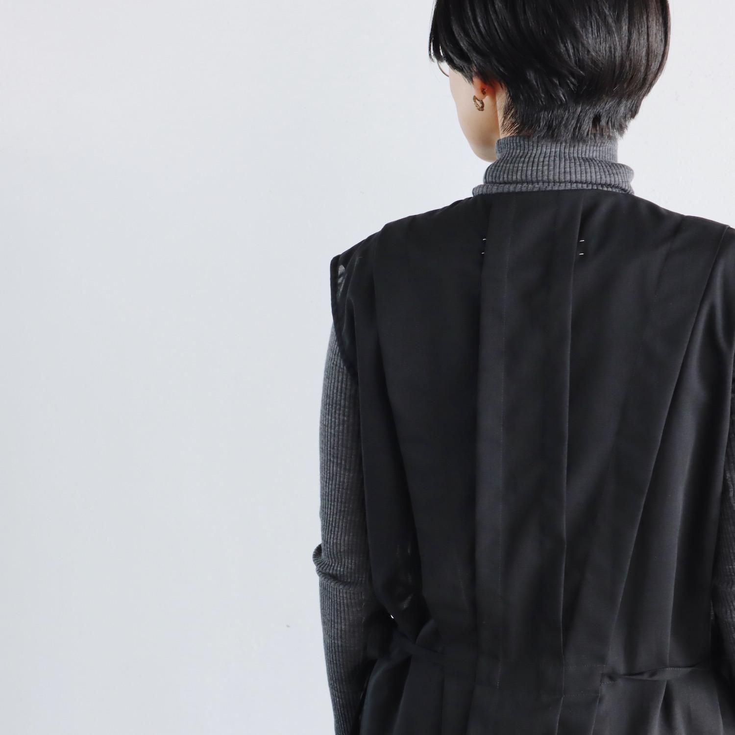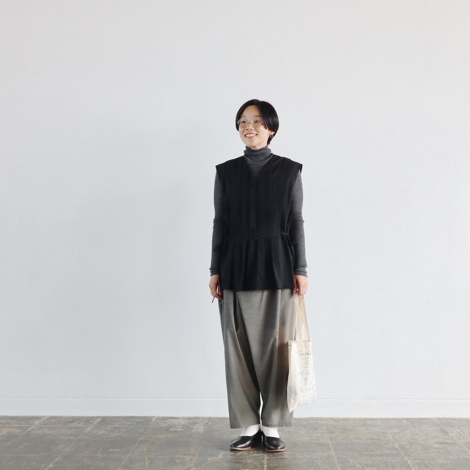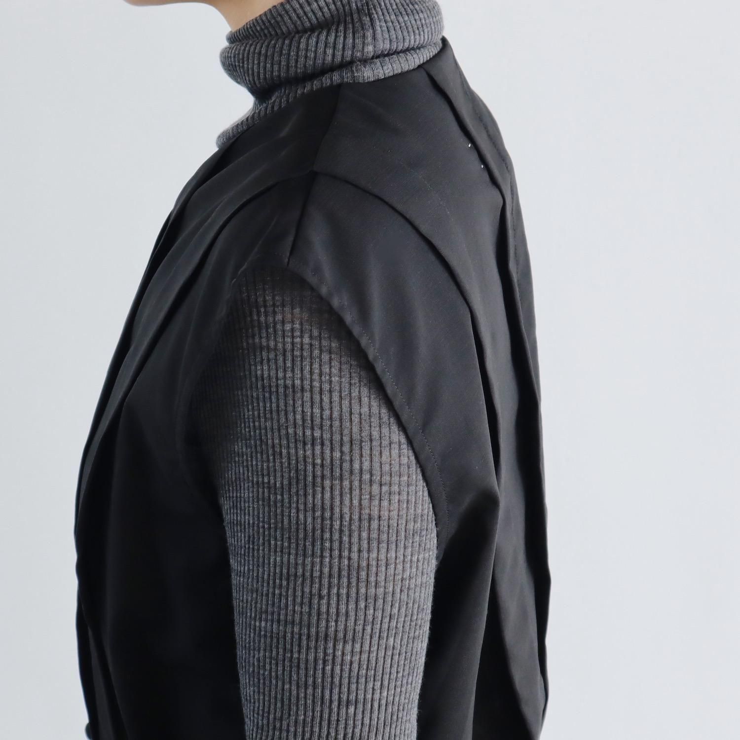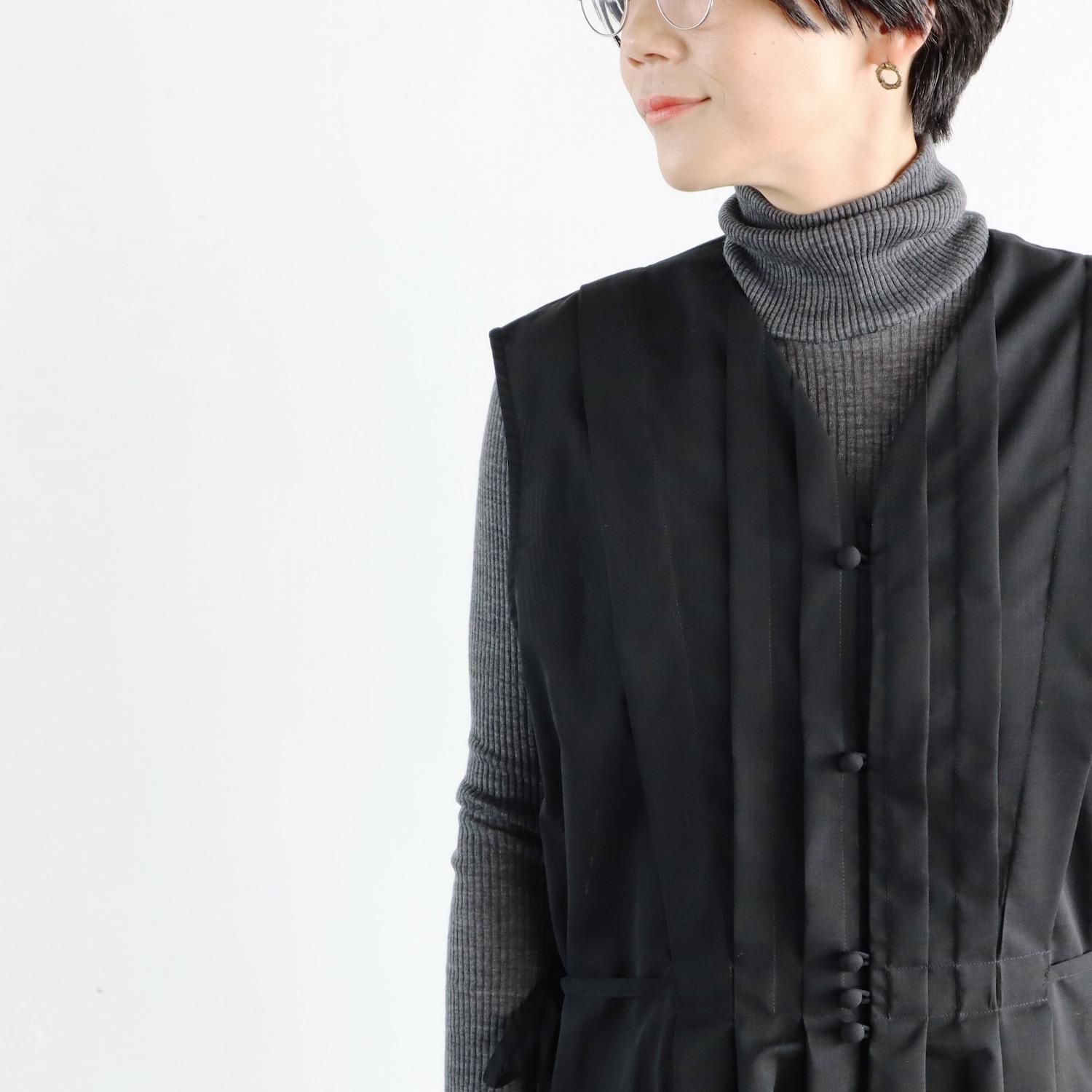 ウール×ポリエステルのハイブリッド素材を用いた、ベストとしても着られるブラウスです。