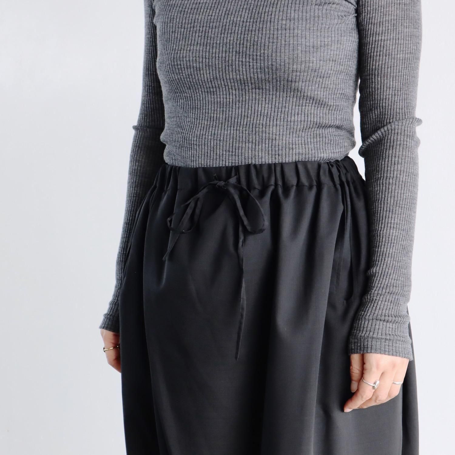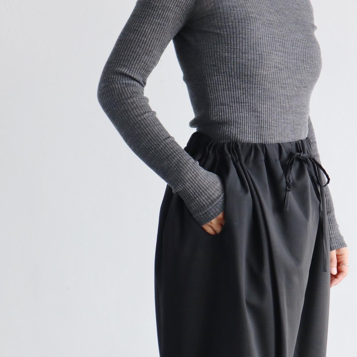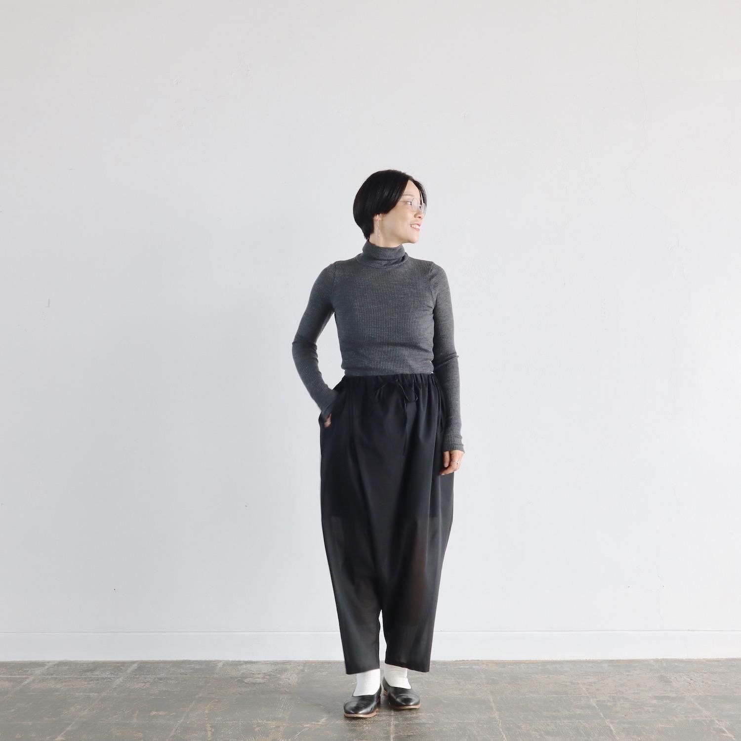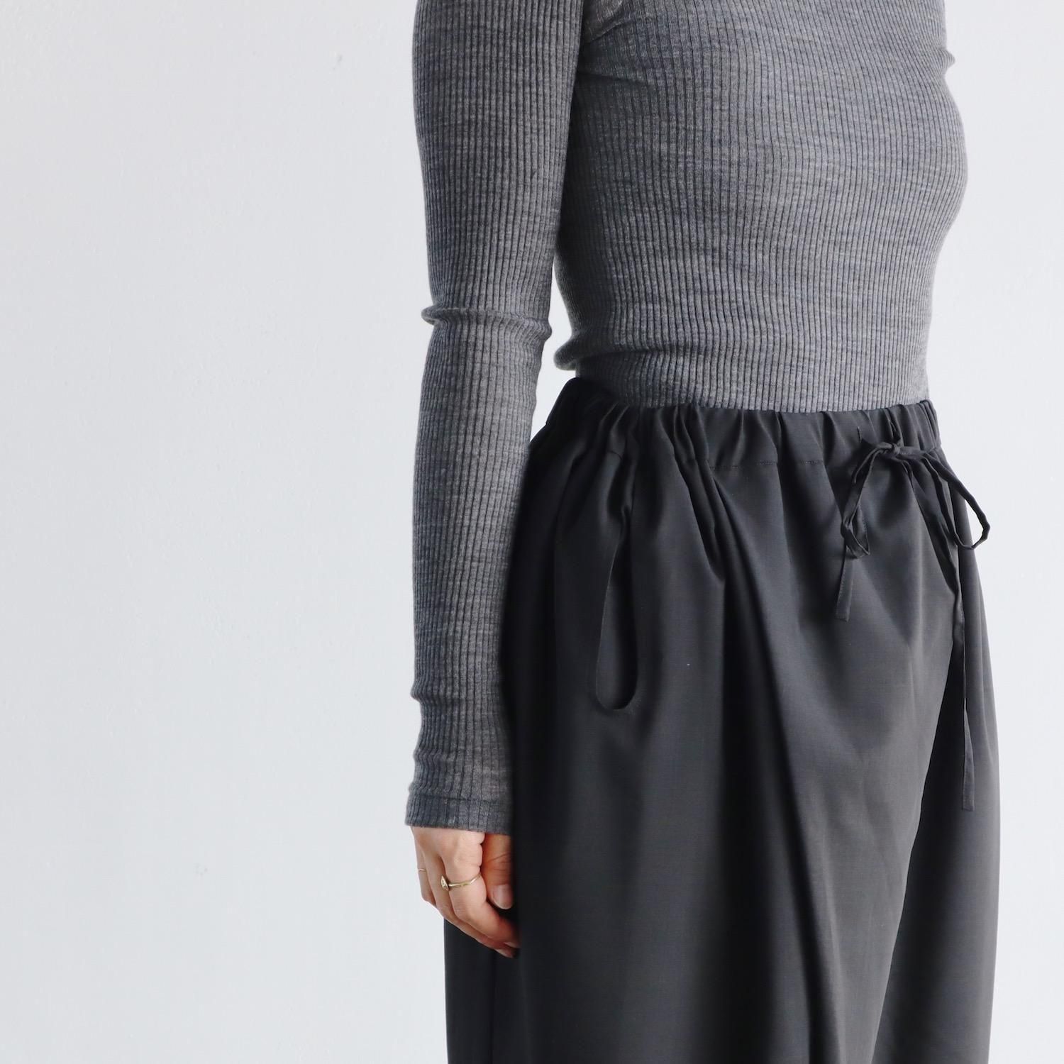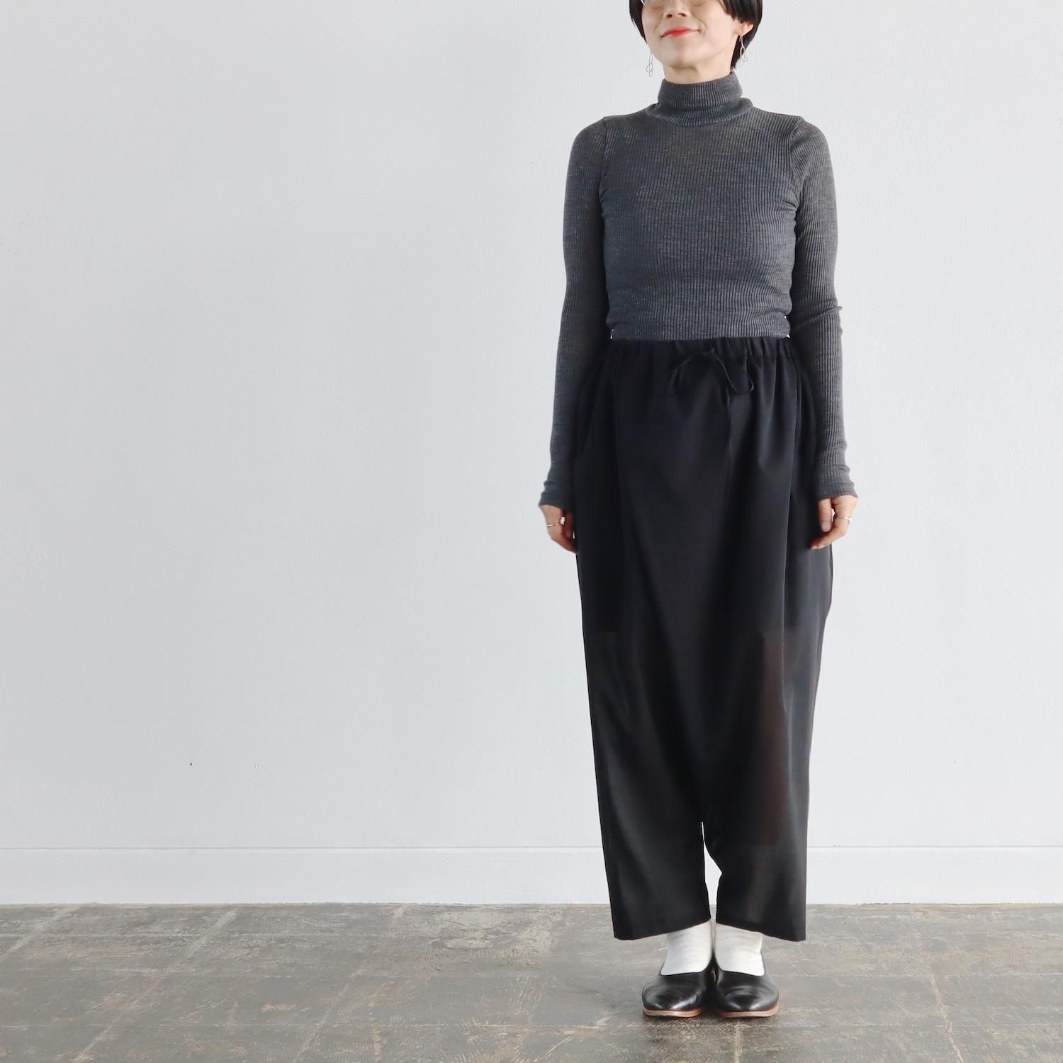 東アジアの伝統的な腰布からイメージを膨らませた、ラップ風デザイン。ドローストリング付きのイージー仕様と、プチサルエルと呼びたくなるほどのヒップ周りのゆとりで、締め付けの少ないラクな履き心地を叶えます。