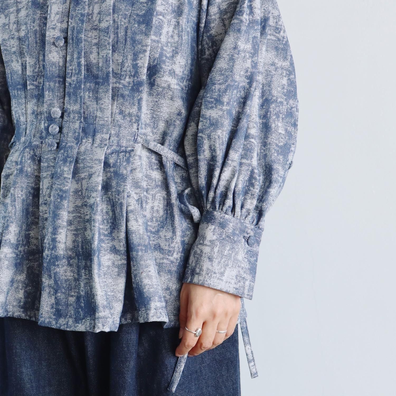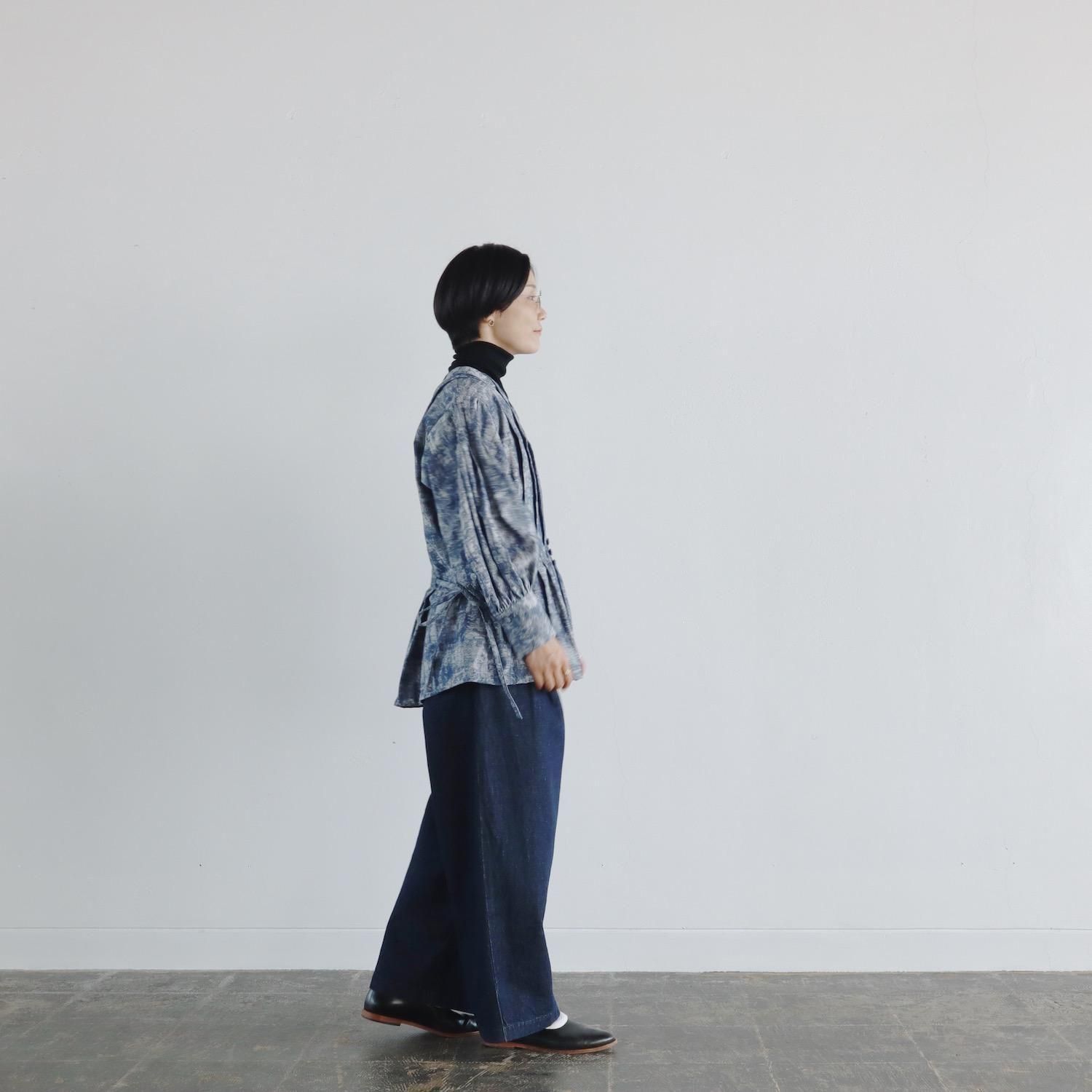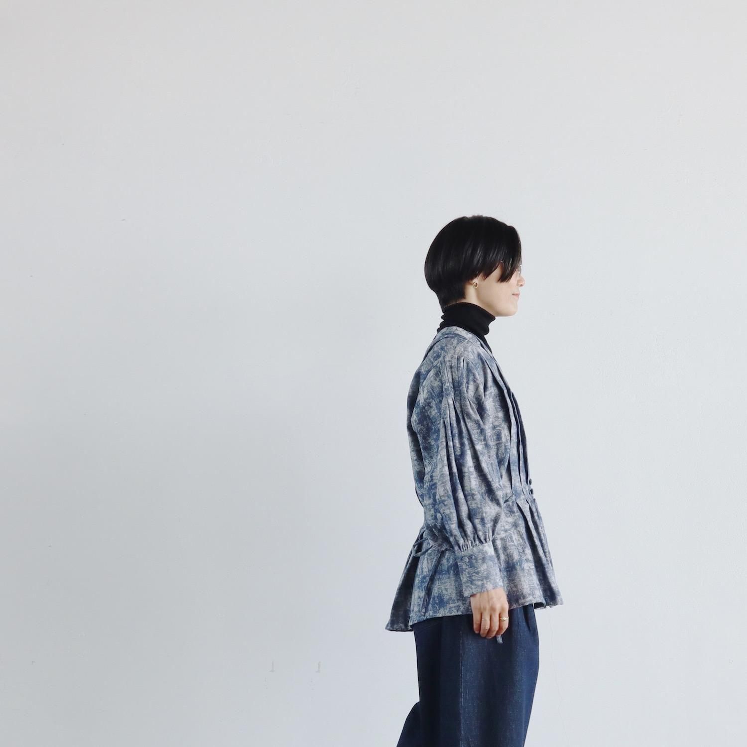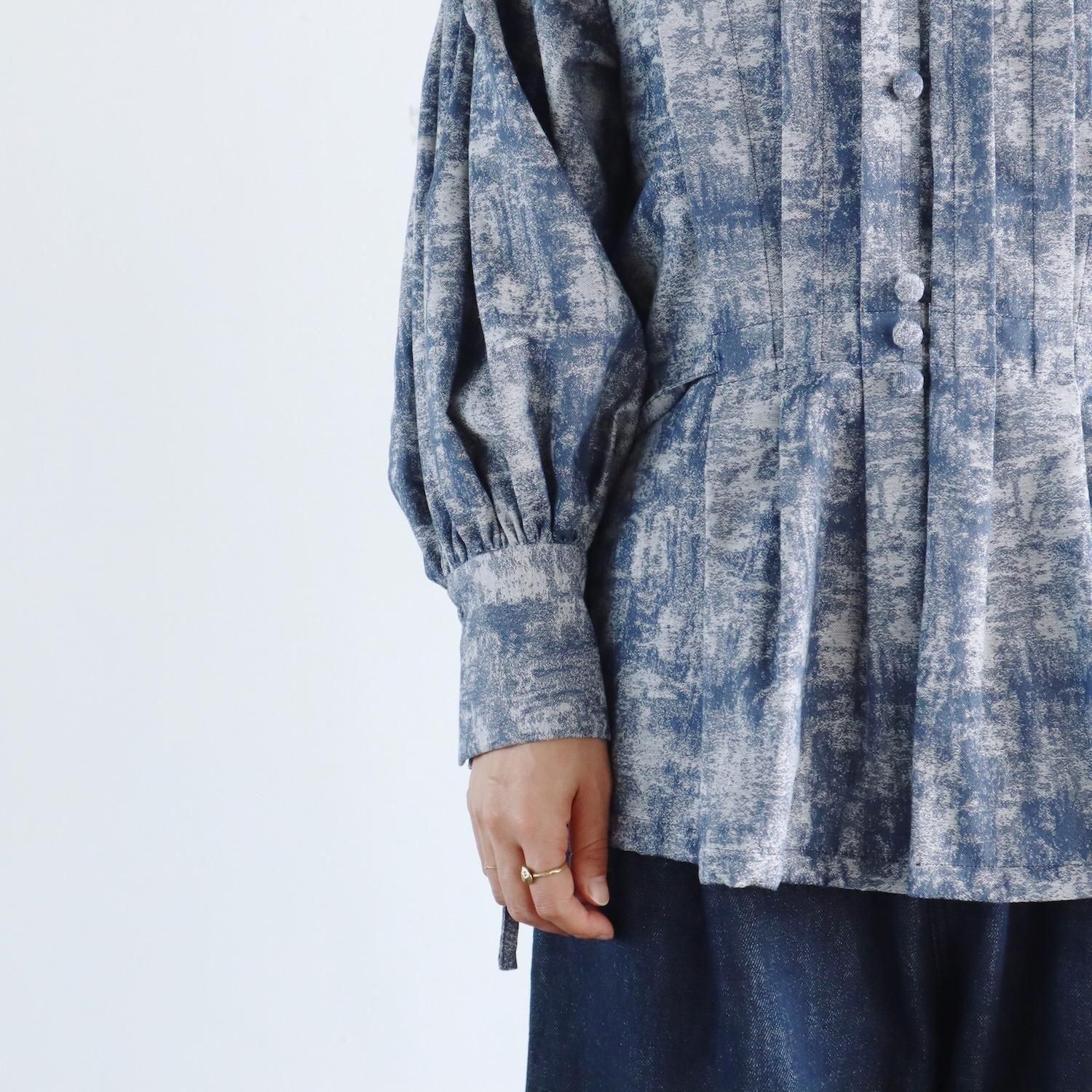 the last flower of the afternoon 藍色の靄 Tucked Blouse BLUE
