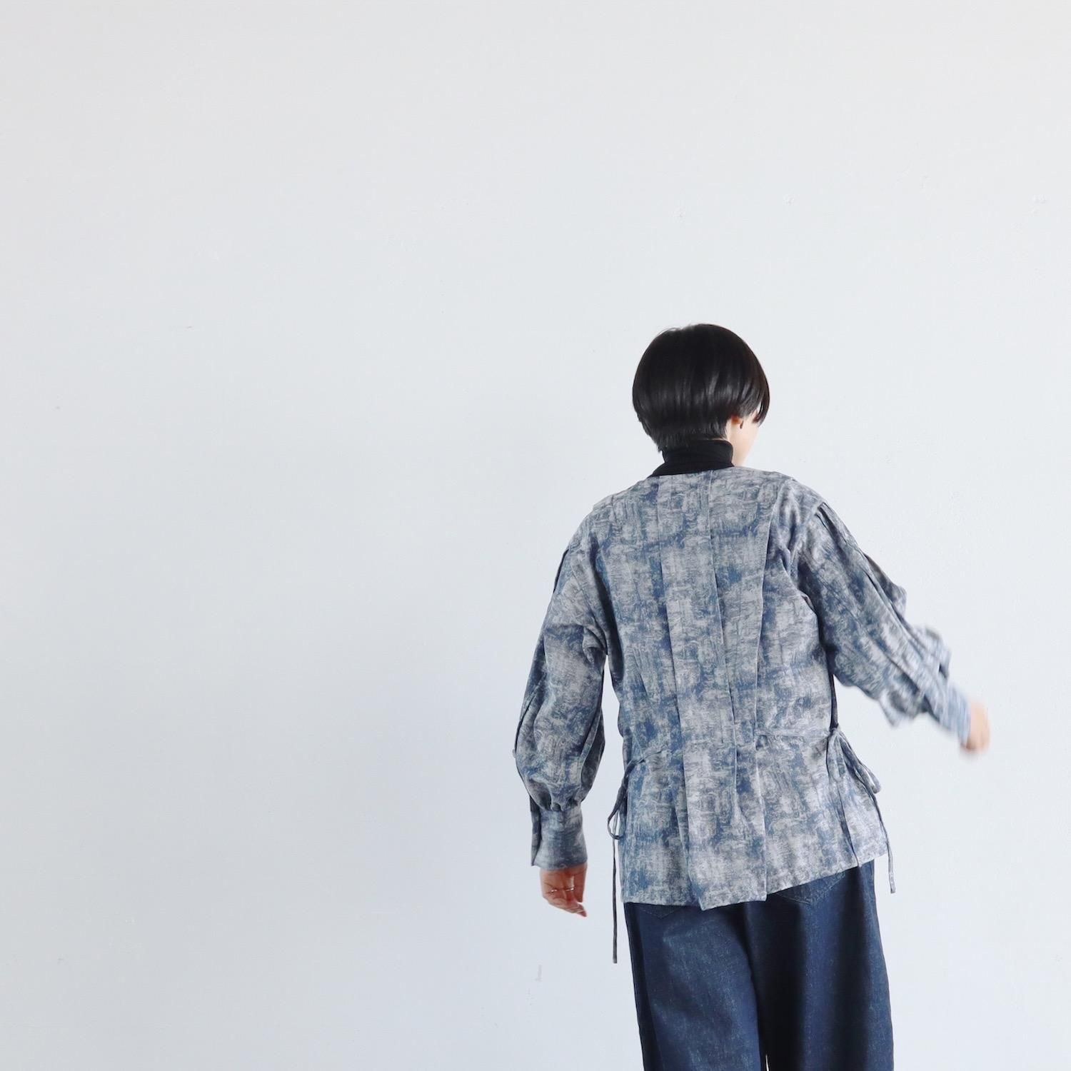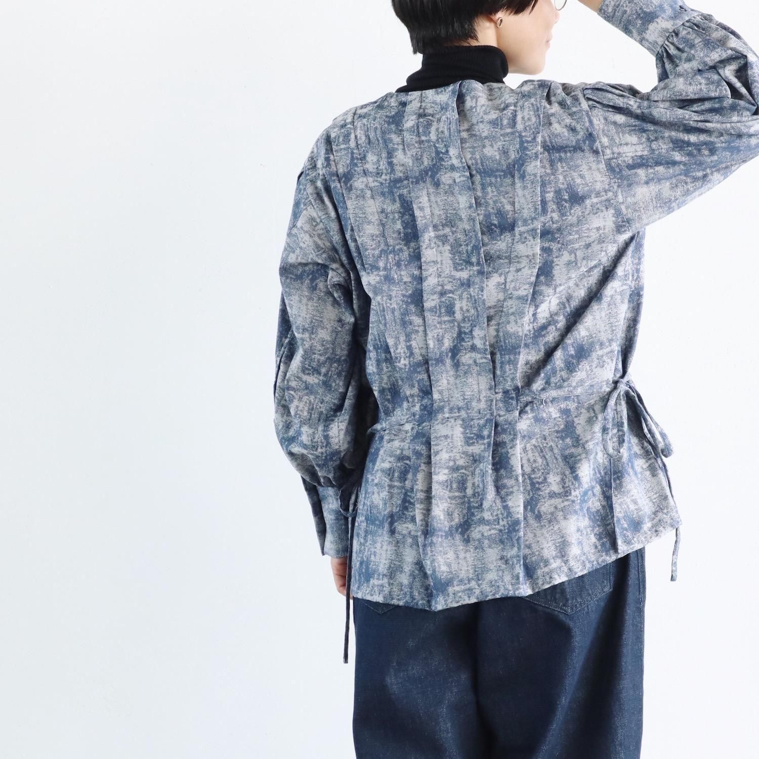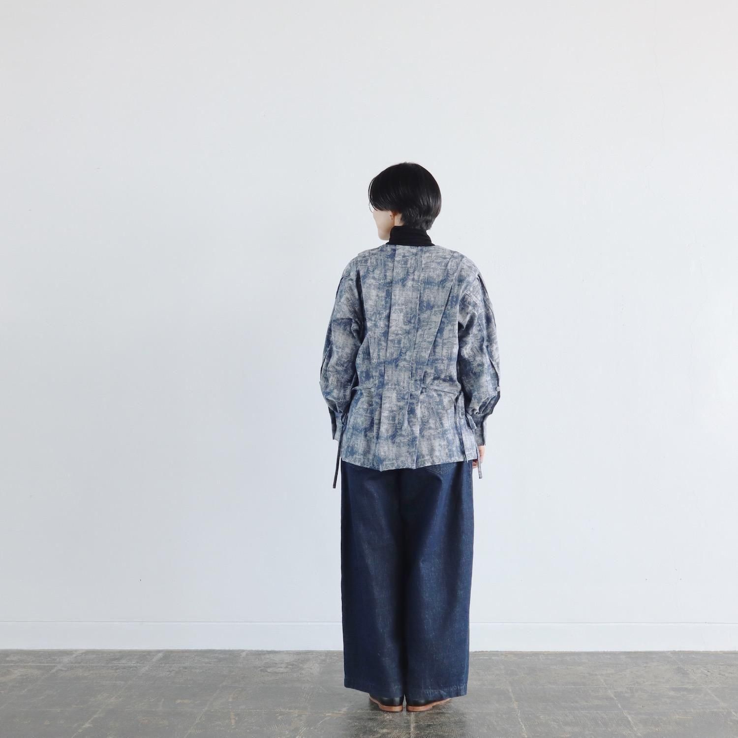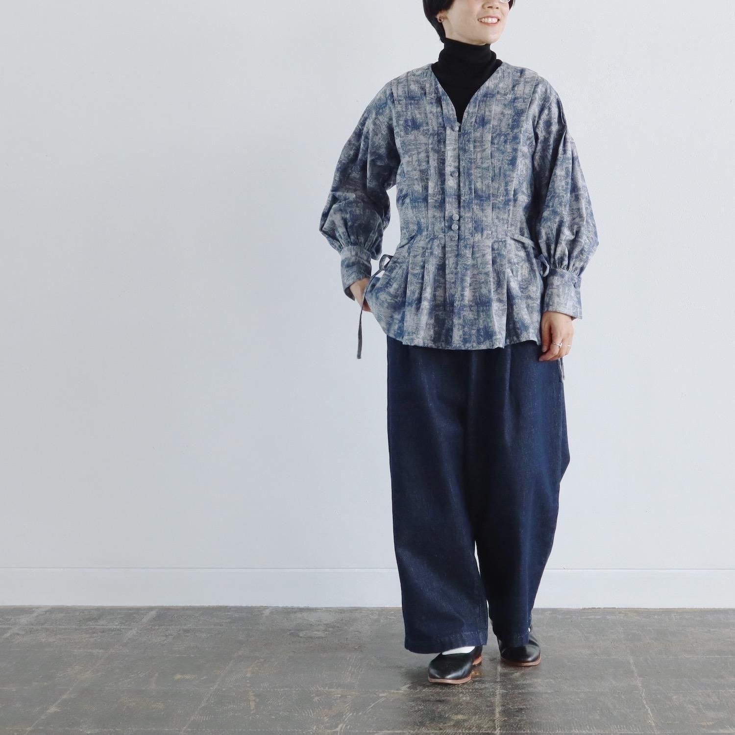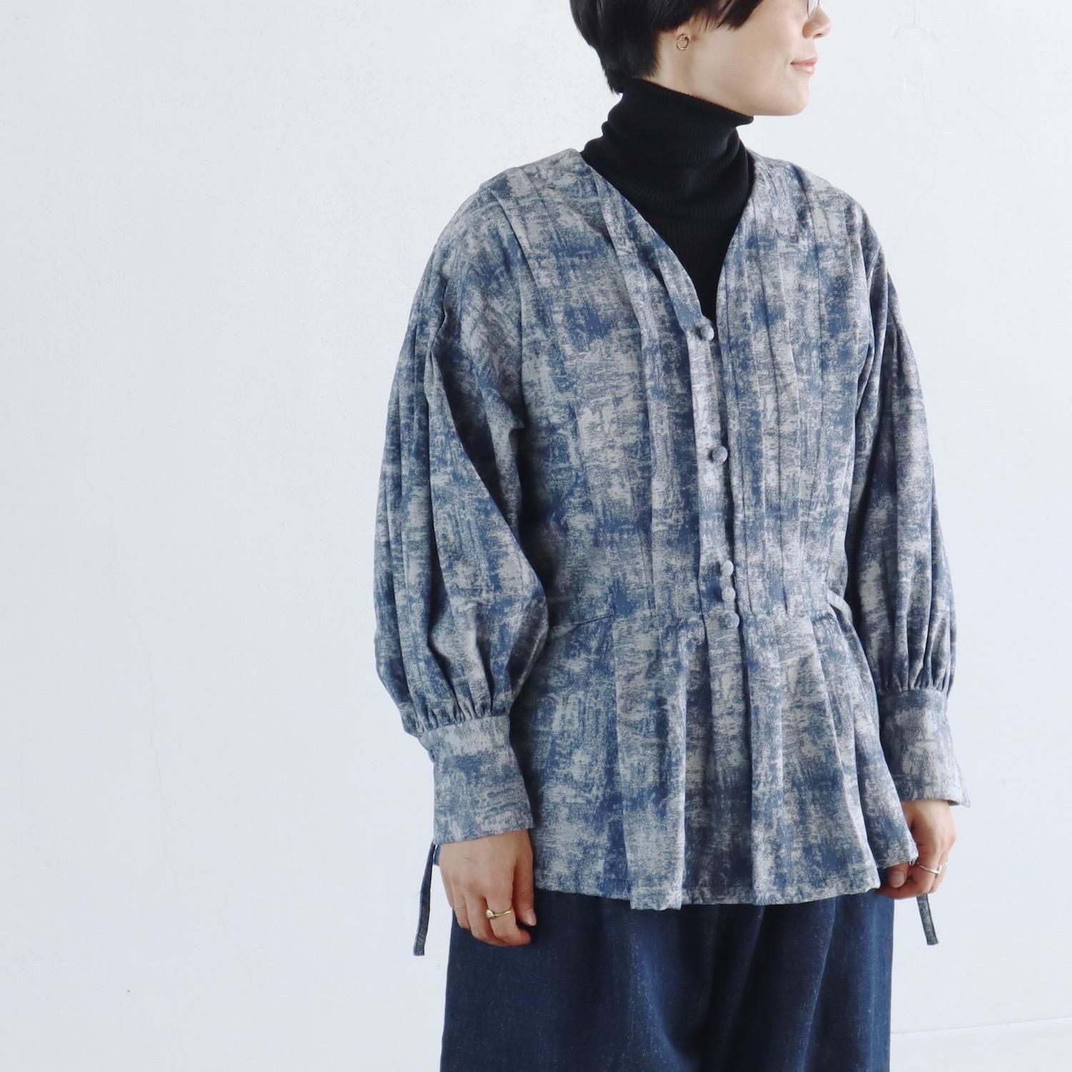 the last flower of the afternoon 藍色の靄 Tucked Blouse BLUE