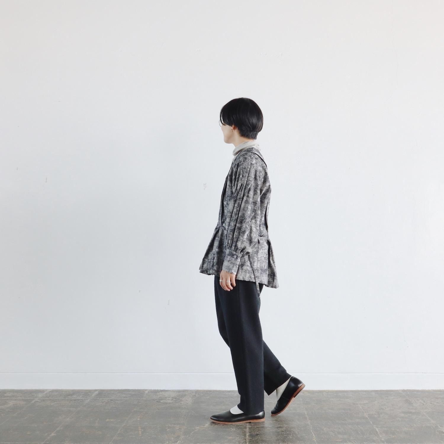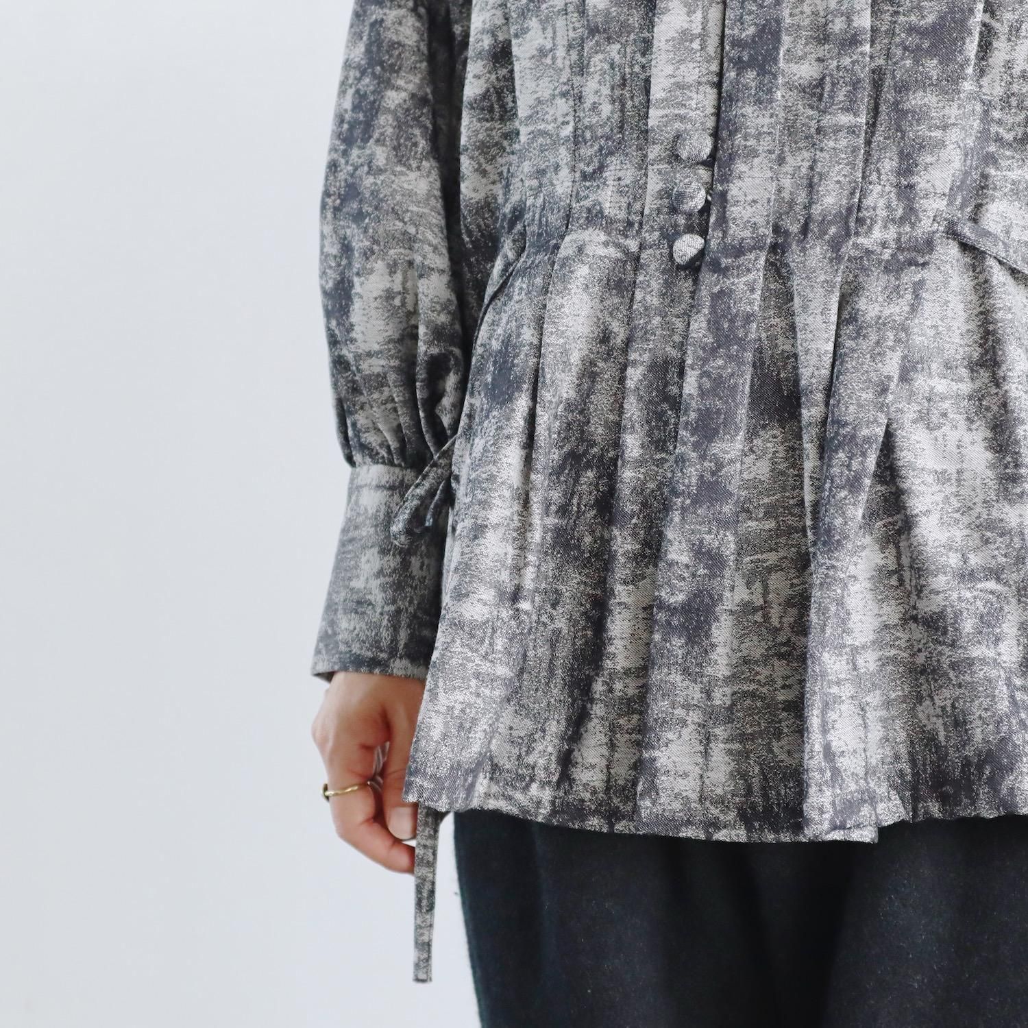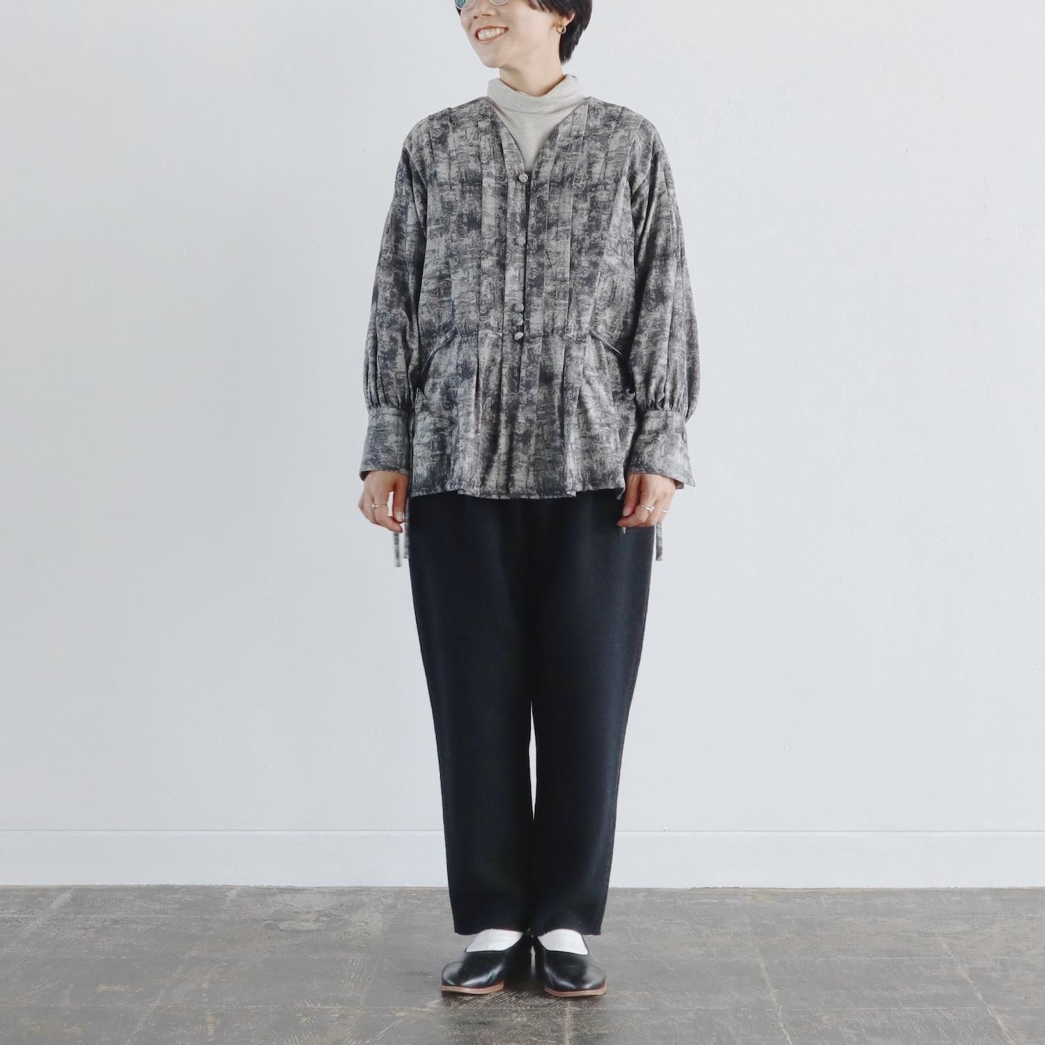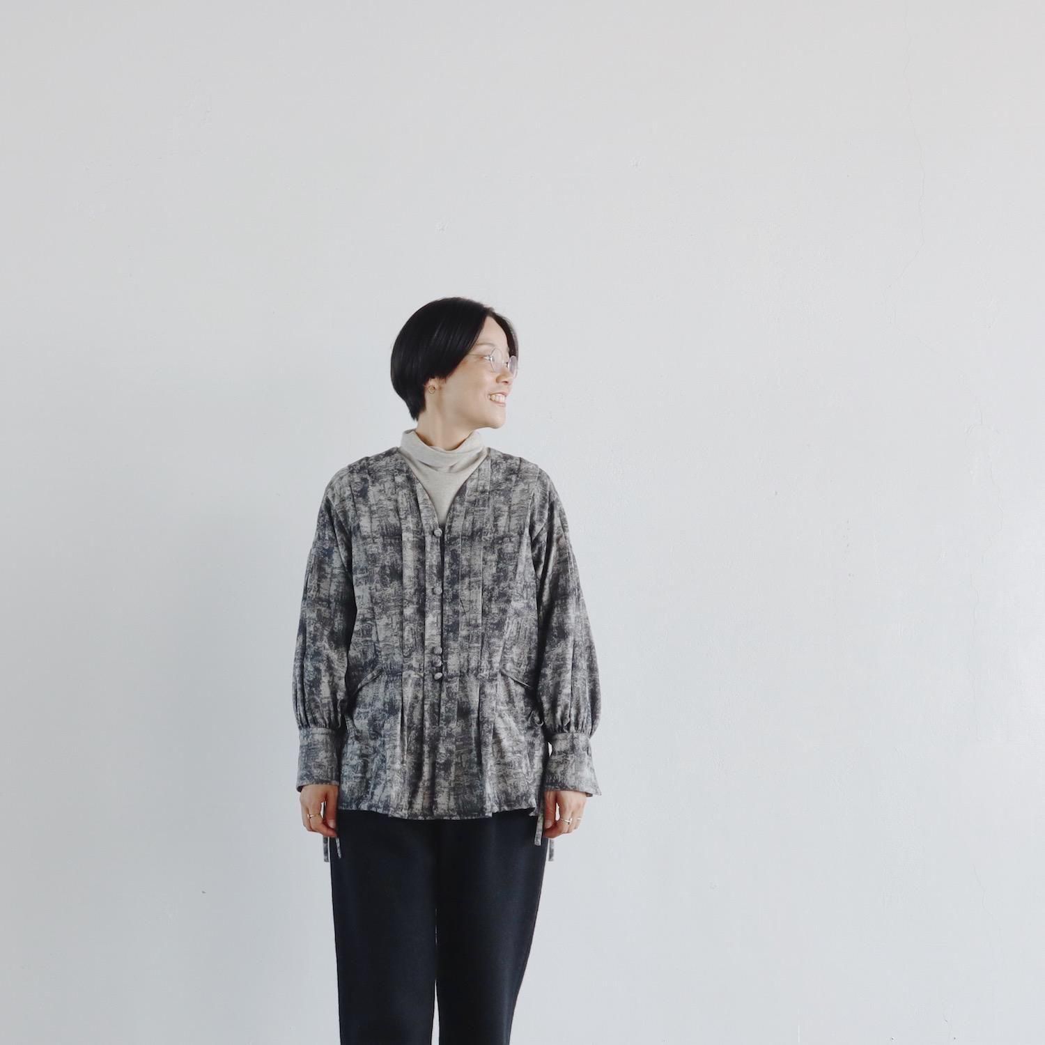 the last flower of the afternoon 藍色の靄 Tucked Blouse BLACK