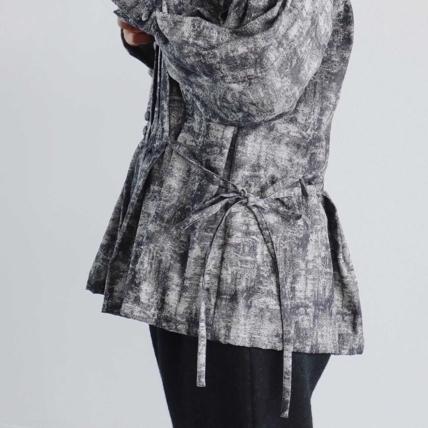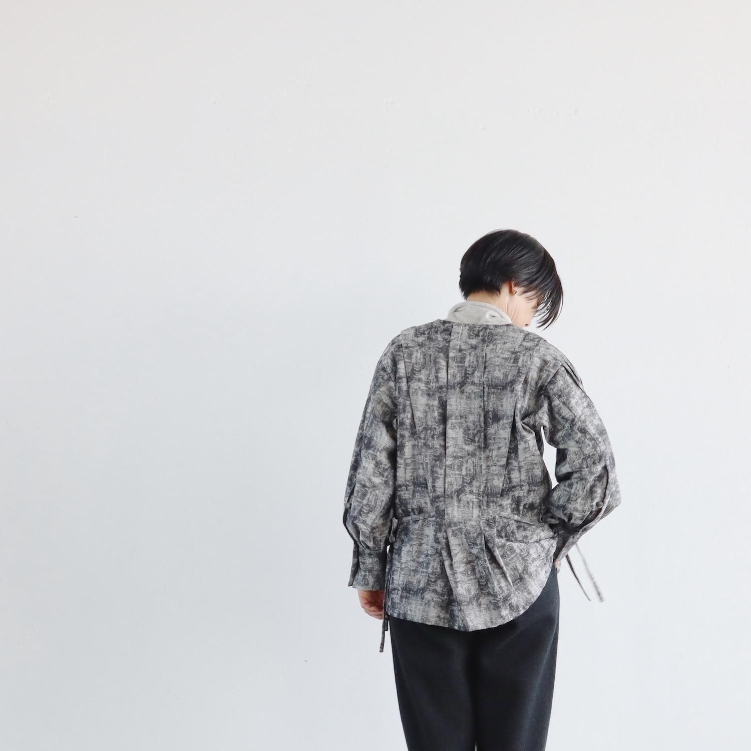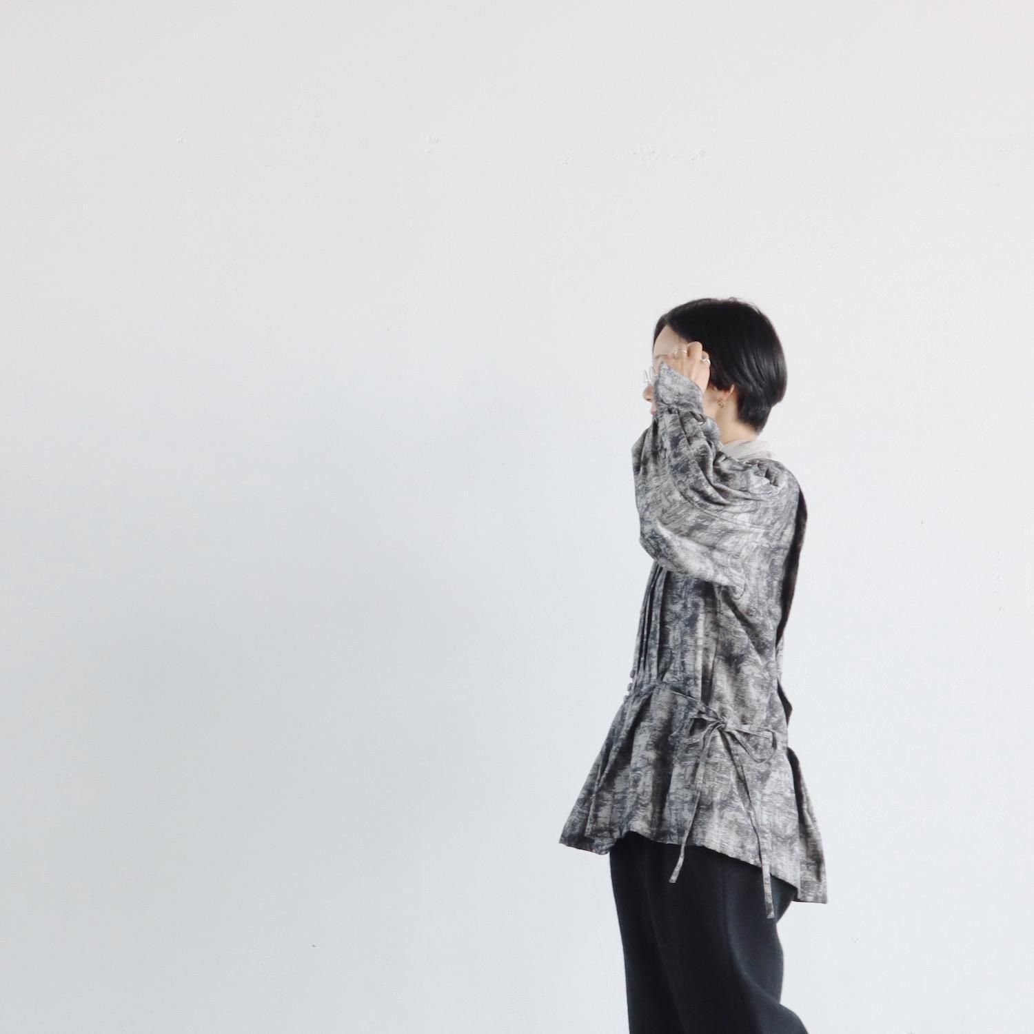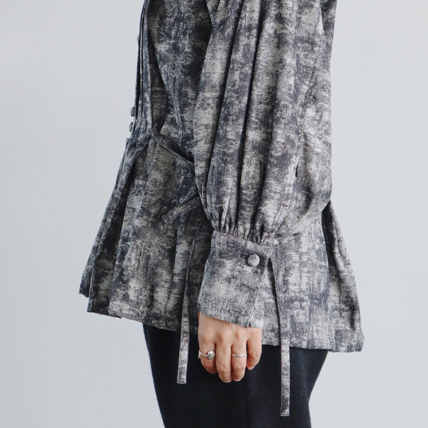 the last flower of the afternoon 藍色の靄 Tucked Blouse BLACK