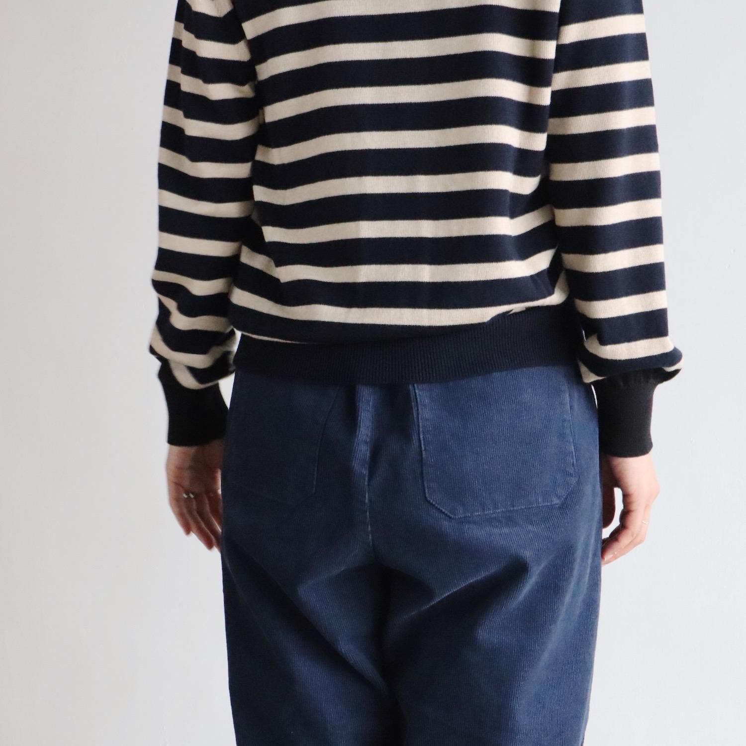 生地は細めのコーデュロイです。ほっこりしがちなコーデュロイですが、スッキリと綺麗な雰囲気があります。ほっこりはほんの少しだけです。