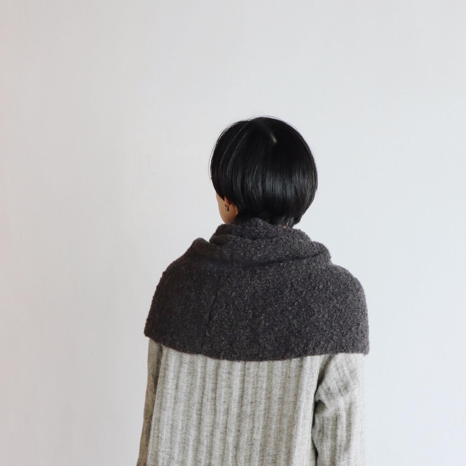 首オンリーを温める一般的なスヌードとはちょっと違い、こちらは首と肩と胸元までまるっと包み込むように着用でき、首も肩もあったまります。チクチクに敏感な首元も安心な、フワフワな触り心地です。