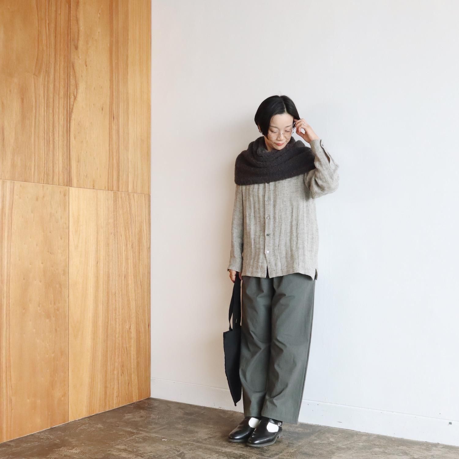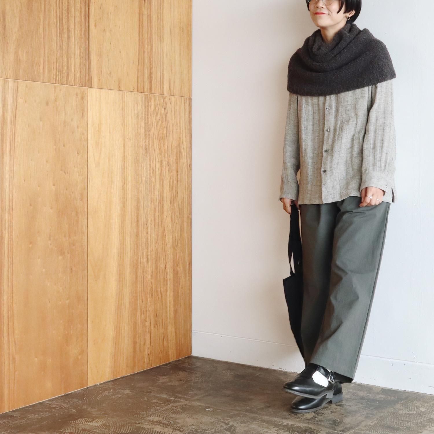これを身に付けてけてコートを羽織ると、まるでタートルネックを着ているかのようです。もはやスヌードの枠を超え、コーディネートの一員として立派な仕事をしてくれますよ。