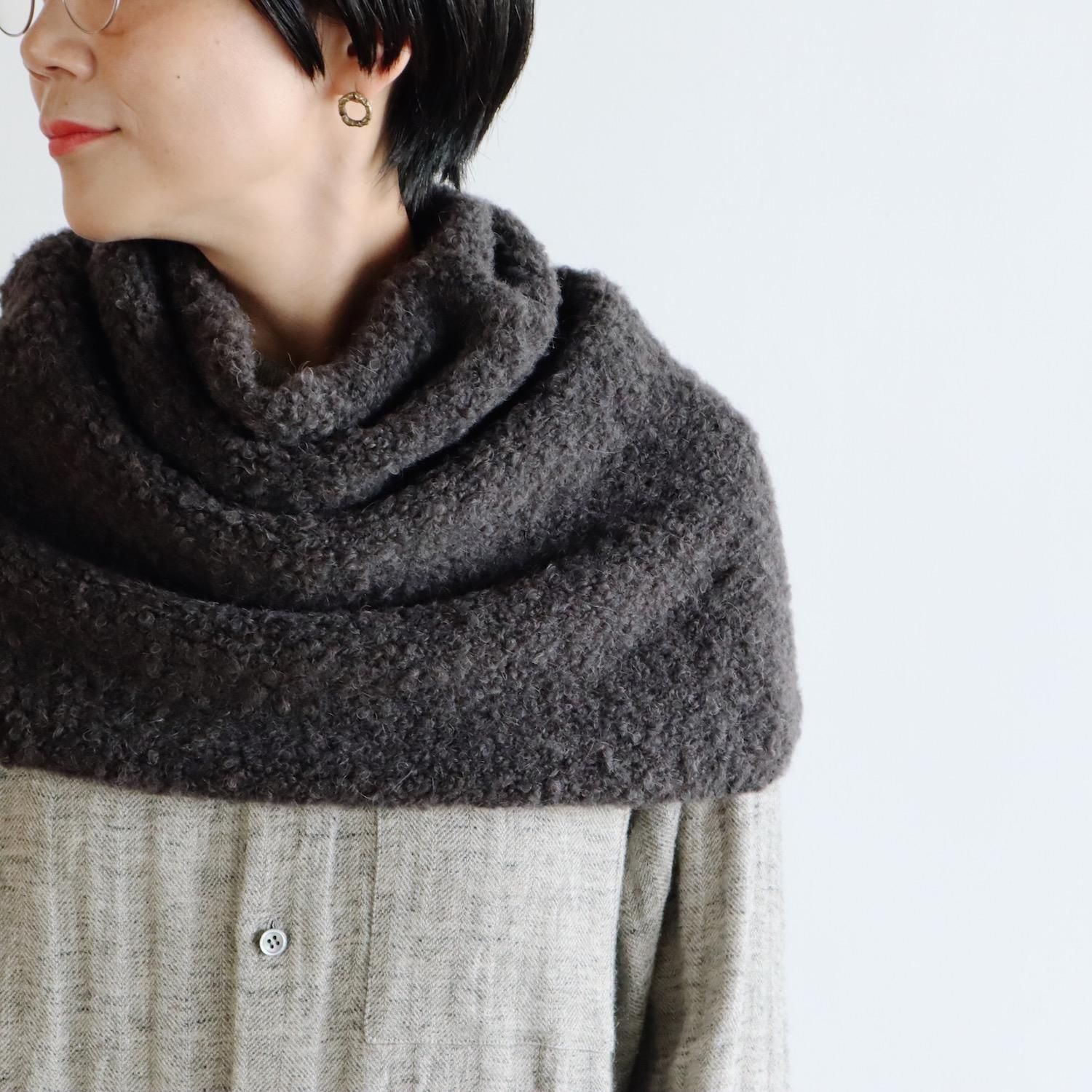 ポコポコとした編み地のスヌード。首を温めたい冬には頼もしい、軽くて温かな一枚です。