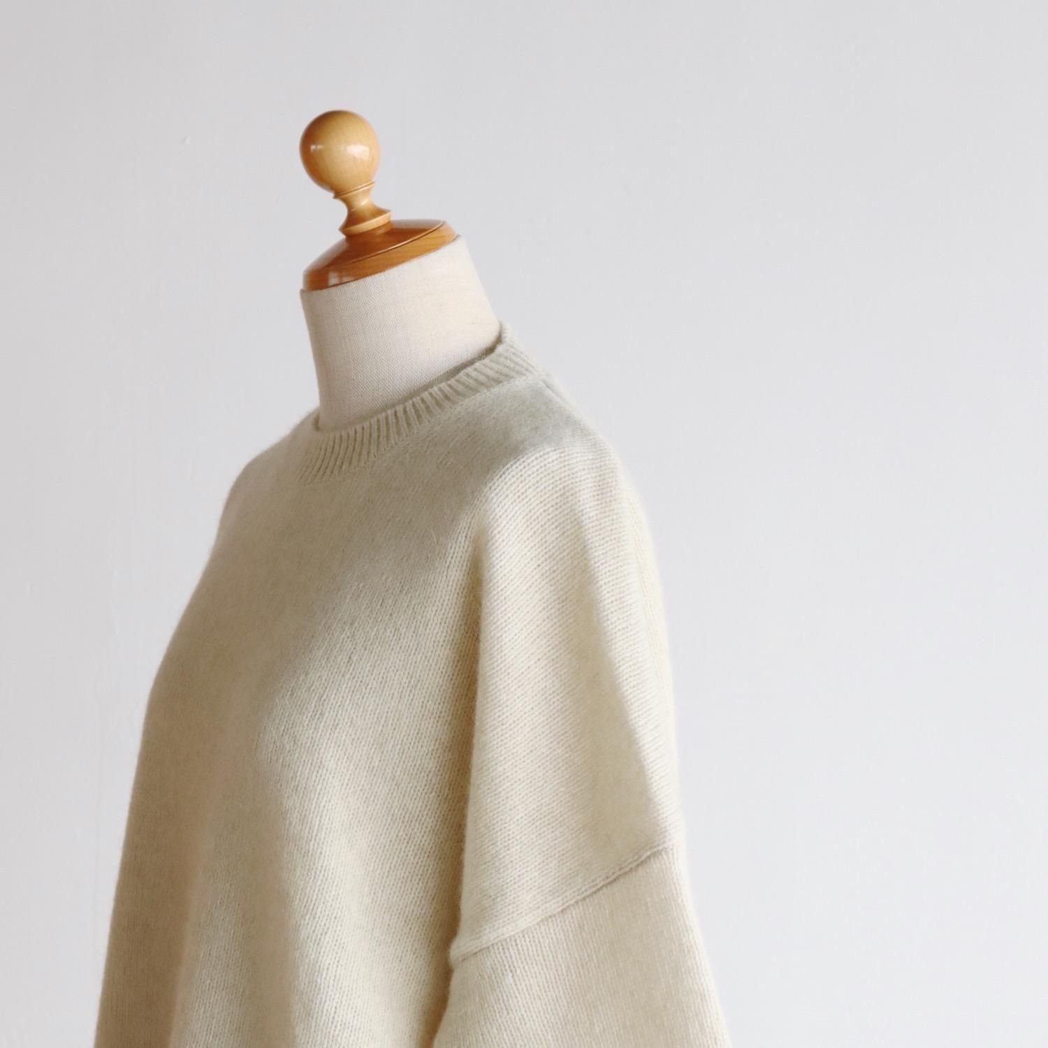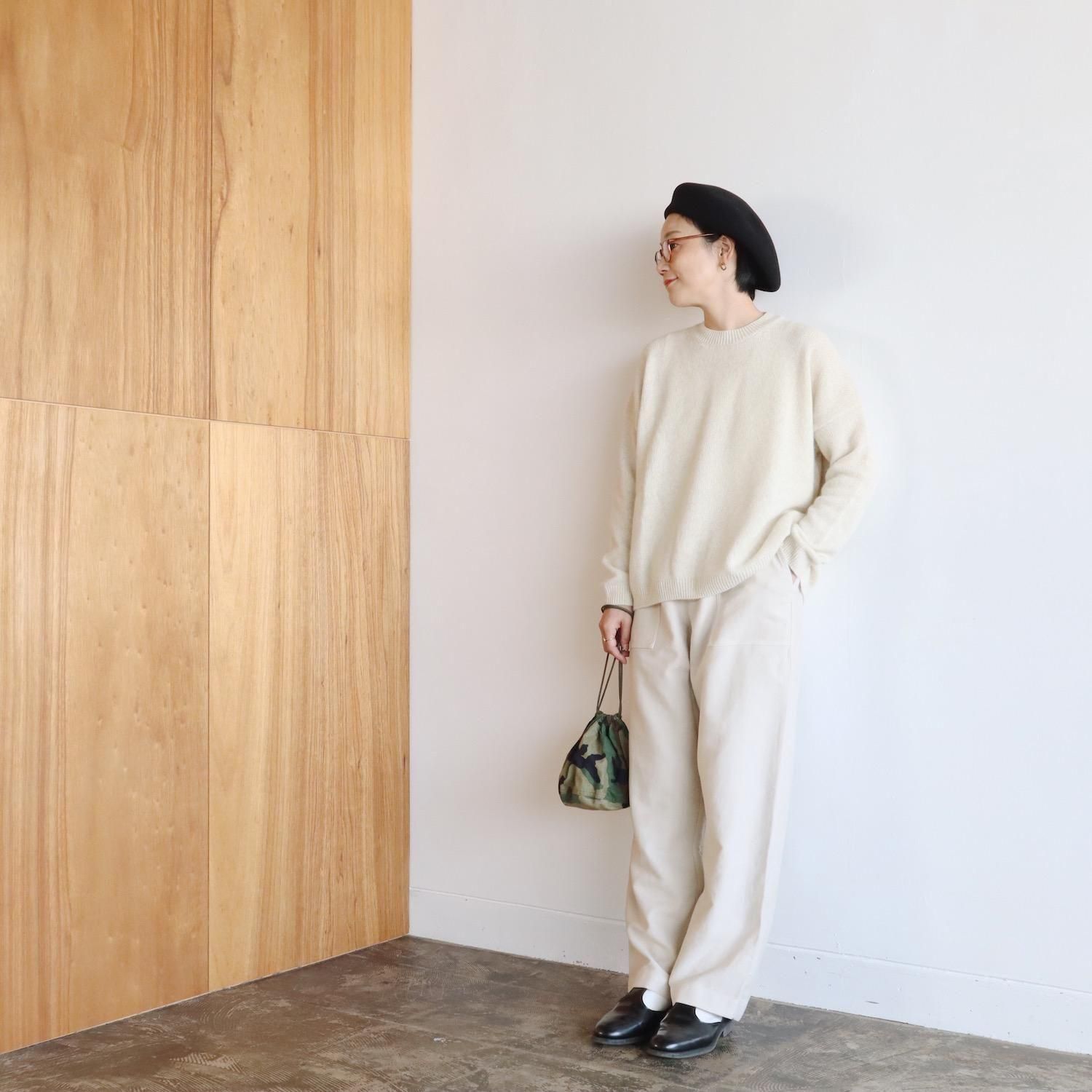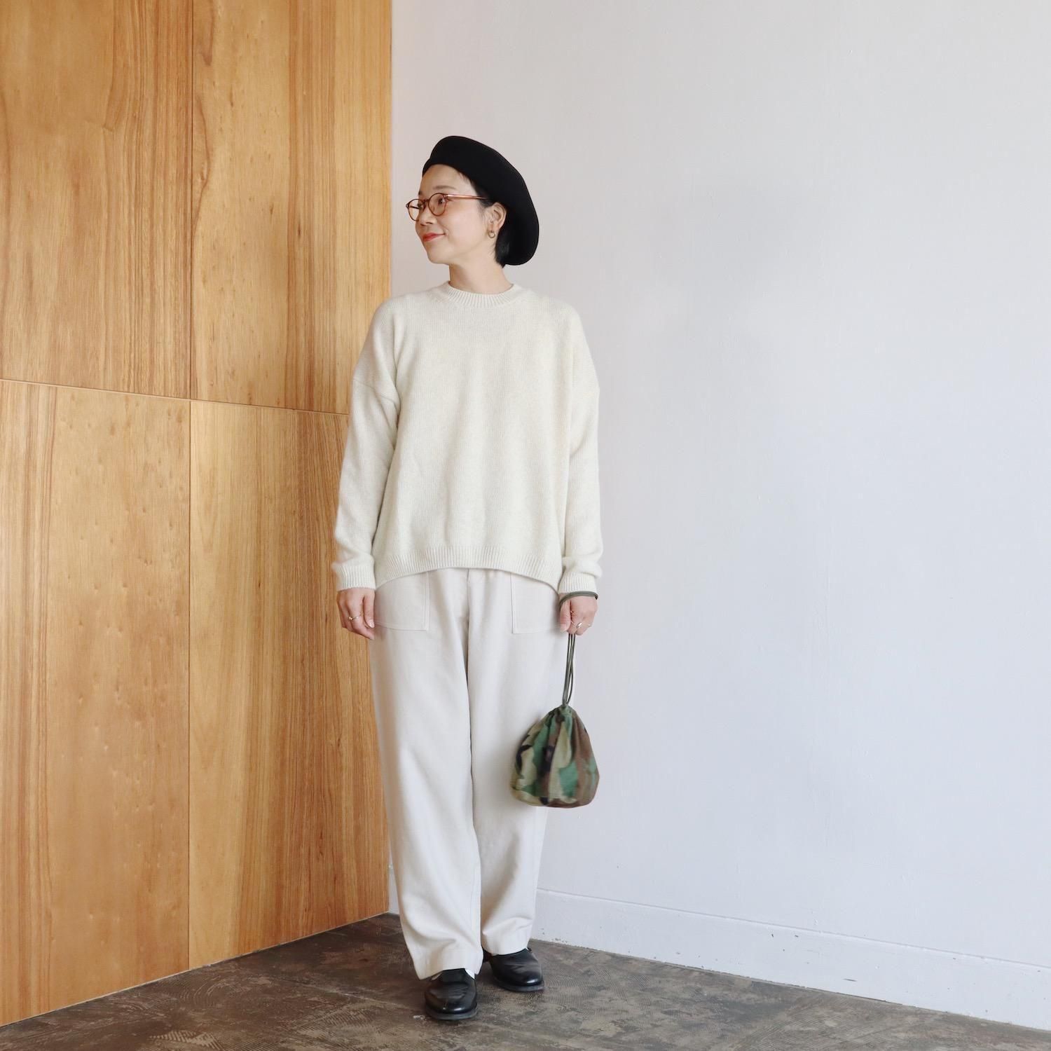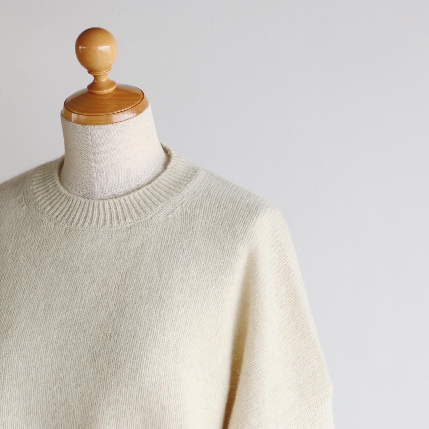もっちりとしたメリノウールと、フワフワのブルーフォックスをブレンドしたニットは、柔らかさ・軽さ・温かさがあり、その肌触りの良さは、カシミヤと肩を並べます。普通のようでいて全然普通じゃない、着ているとその肌触りや着心地に気持ちがぐんぐんと上がっていきます。