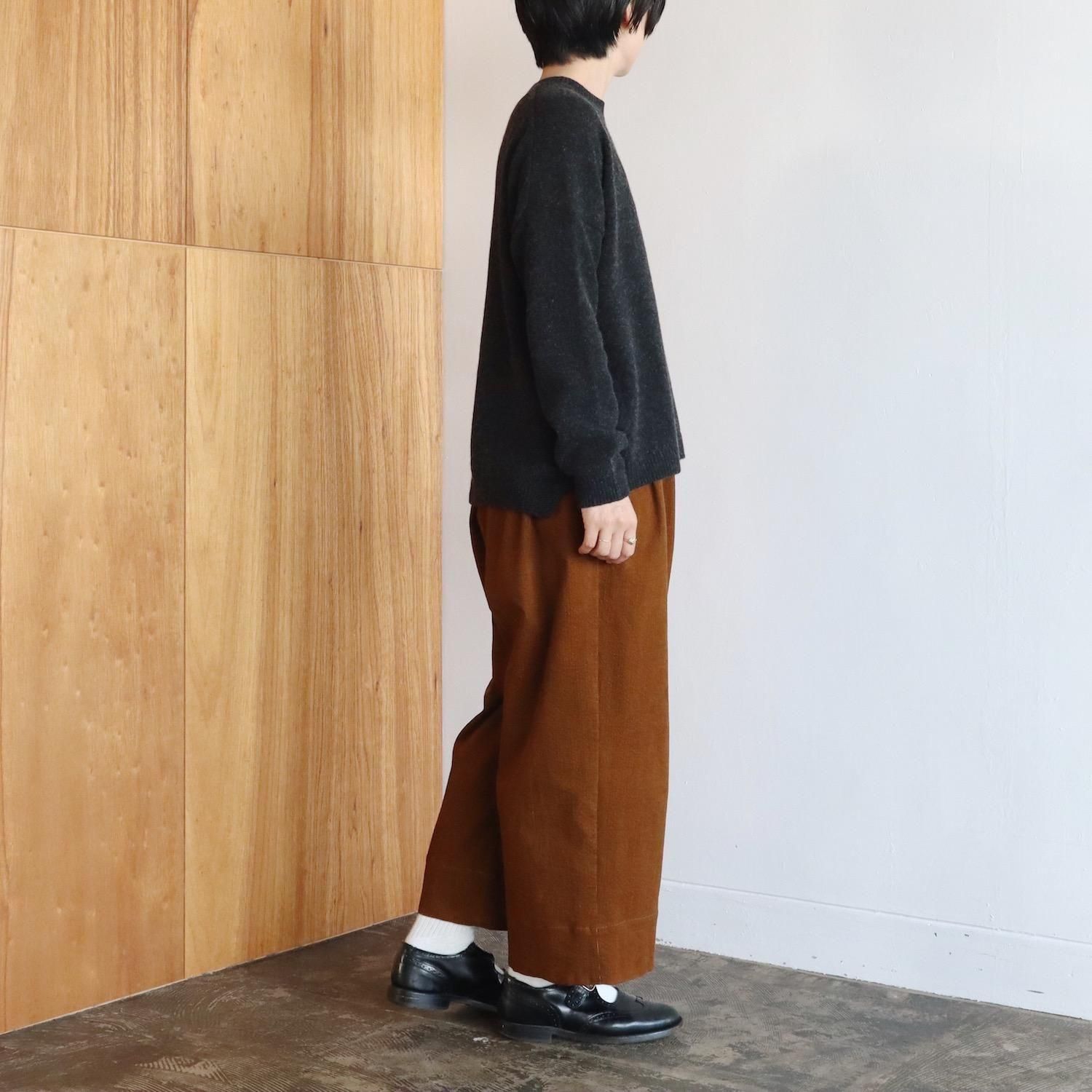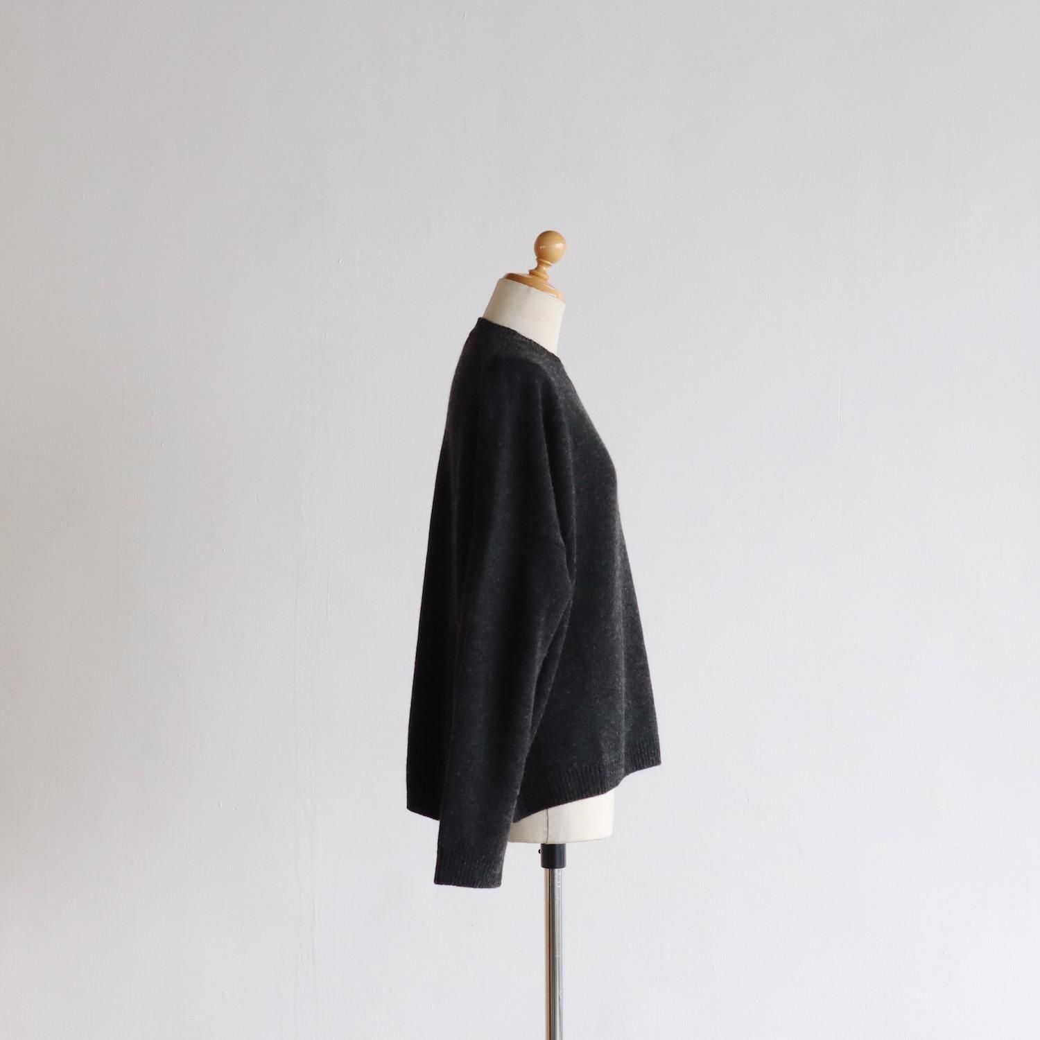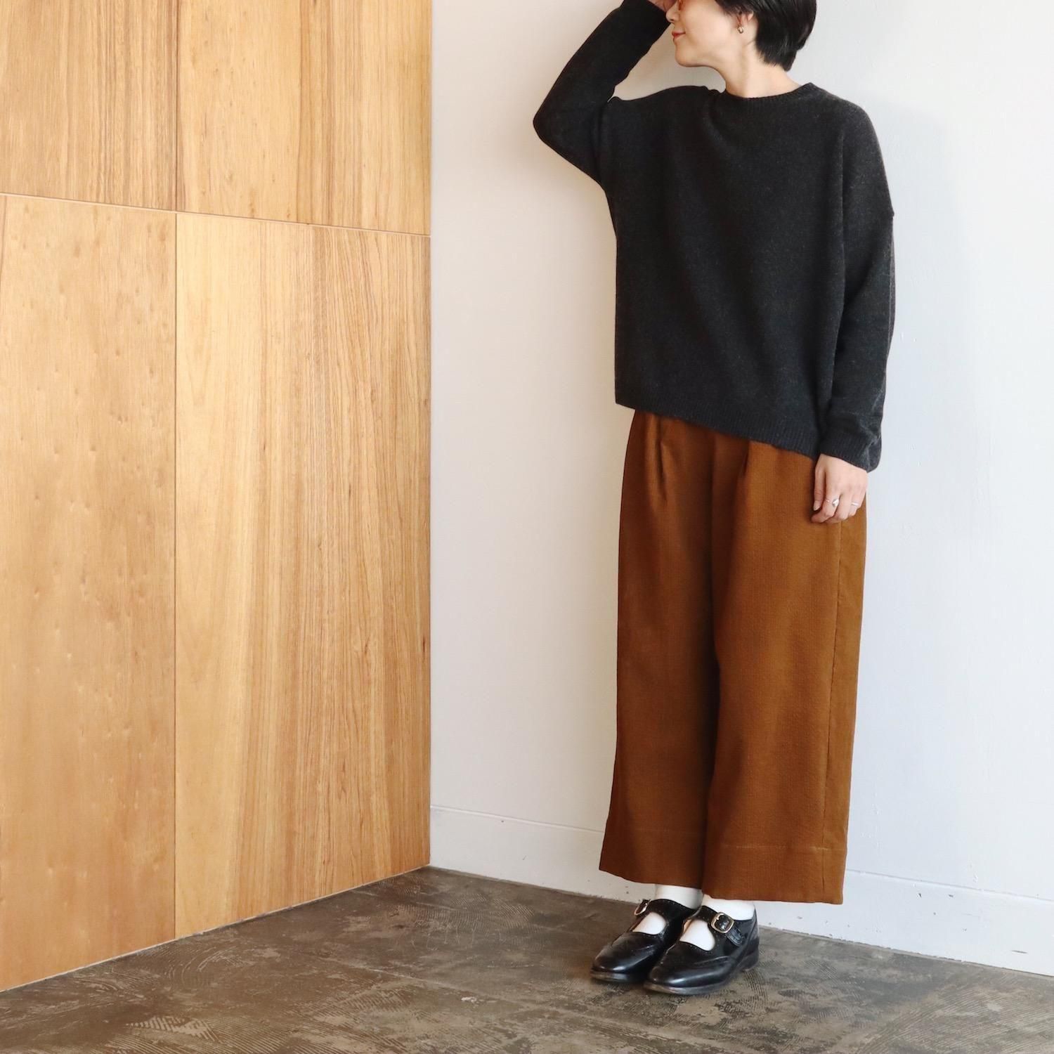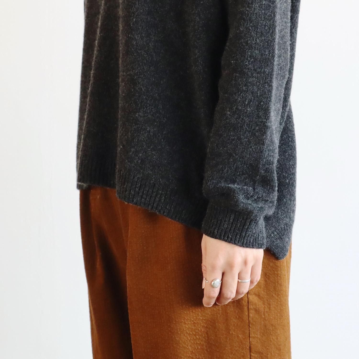 もっちりとしたメリノウールと、フワフワのブルーフォックスをブレンドしたニットは、柔らかさ・軽さ・温かさがあり、その肌触りの良さは、カシミヤと肩を並べます。普通のようでいて全然普通じゃない、着ているとその肌触りや着心地に気持ちがぐんぐんと上がっていきます。