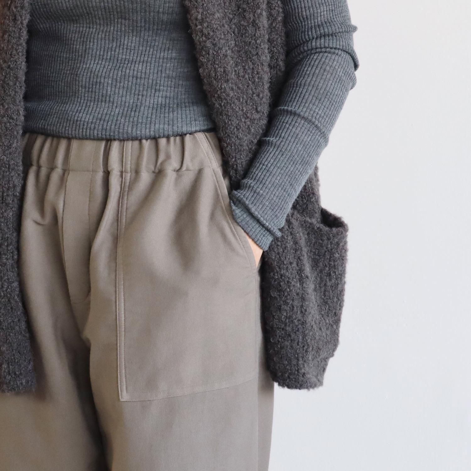 柔らかく肌当たりの良い、モールスキンのパンツです。