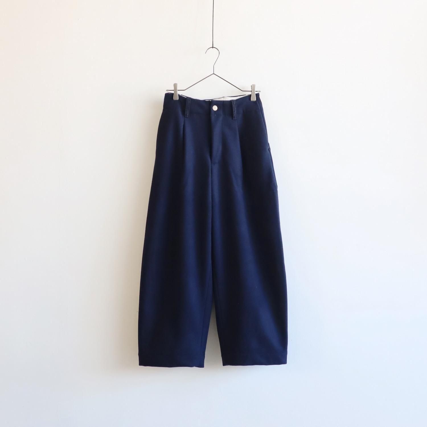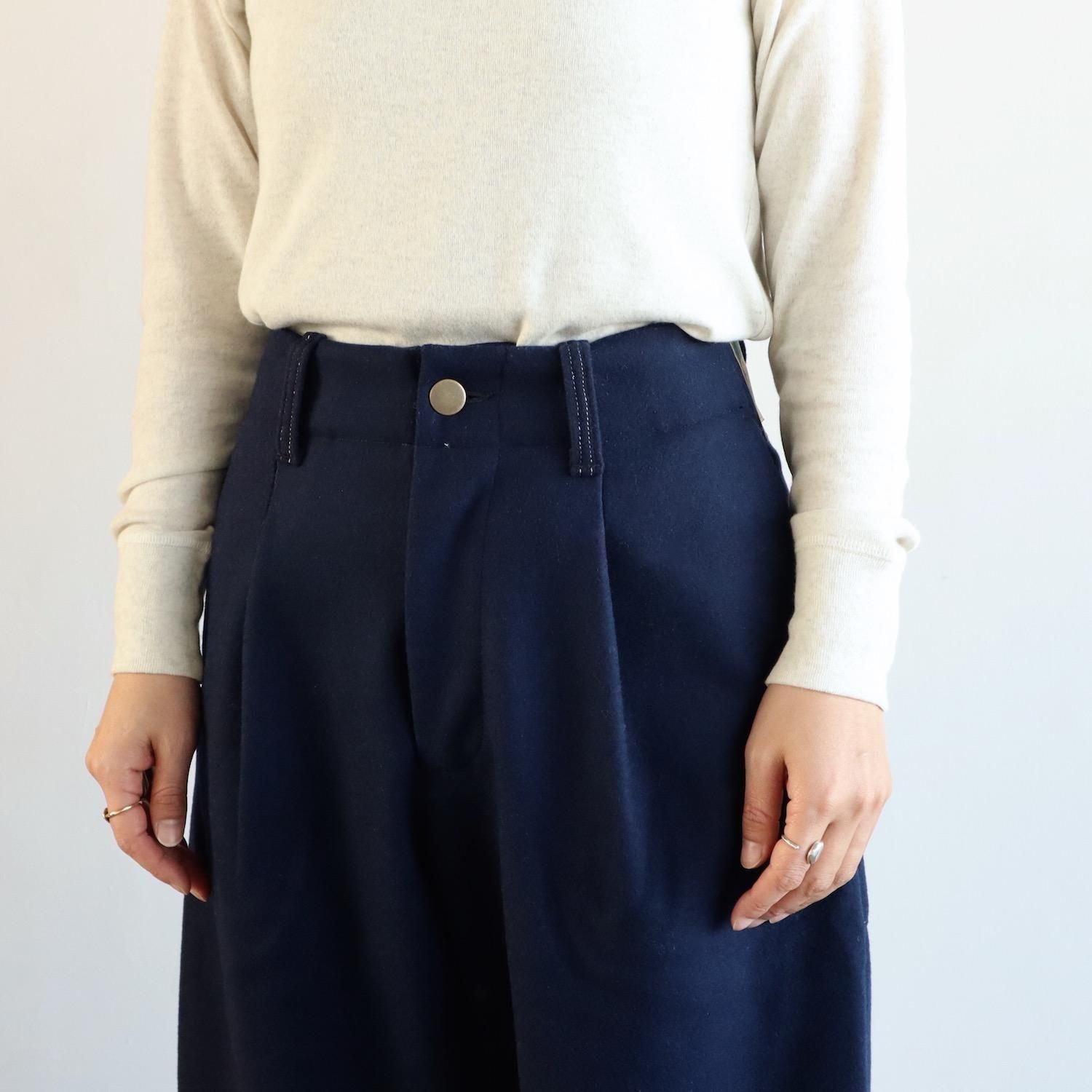ボリューミーな見た目ながら、緩やかなテーパードがかかり、履いてみるととてもおさまりが良いワイドパンツです。