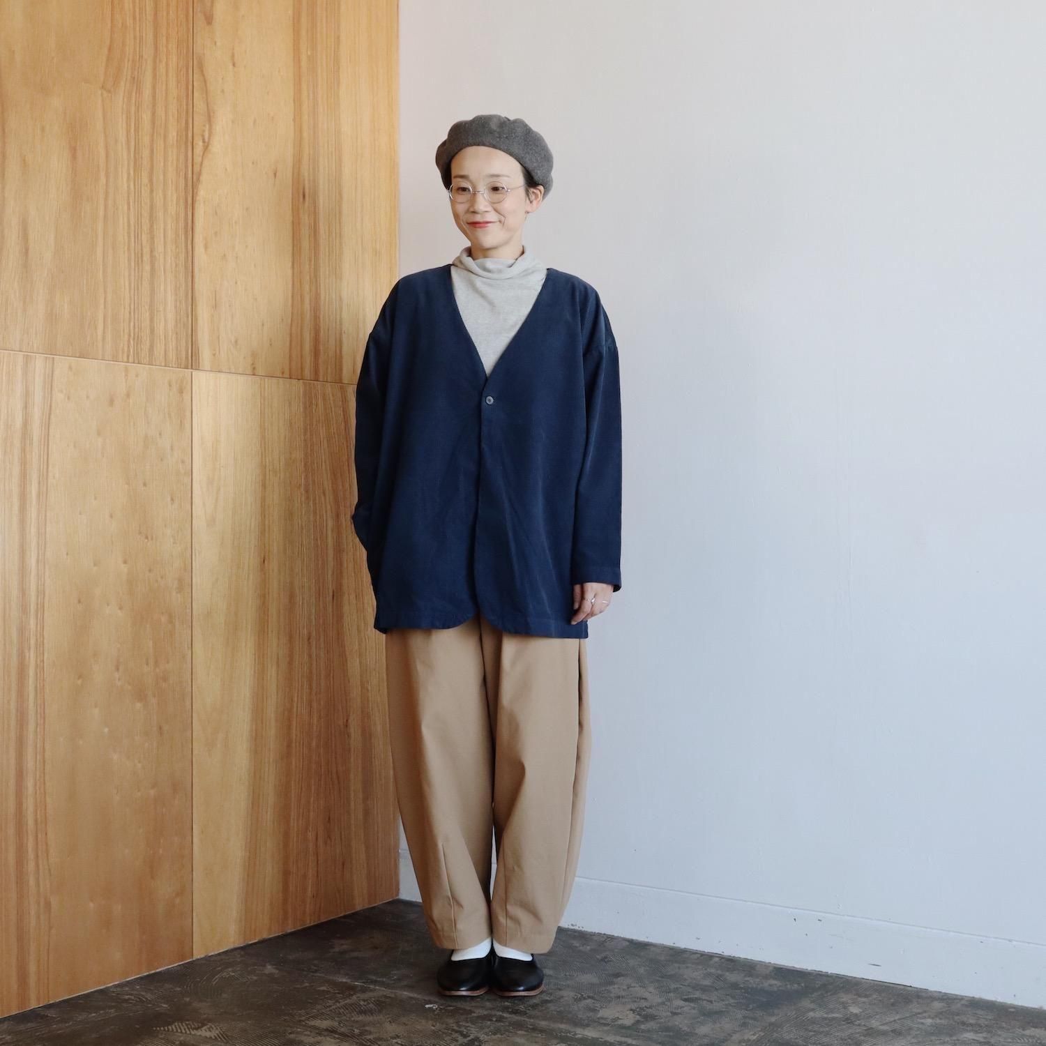 品名に“カーディガン”とあるのでその様に呼称しましたが、ジャケットのようなハーフコートのような、ニュートラルなアイテムです。その立ち位置ゆえに生まれる、他では替えの利かない独特の存在感に、私は魅了され続けています。
