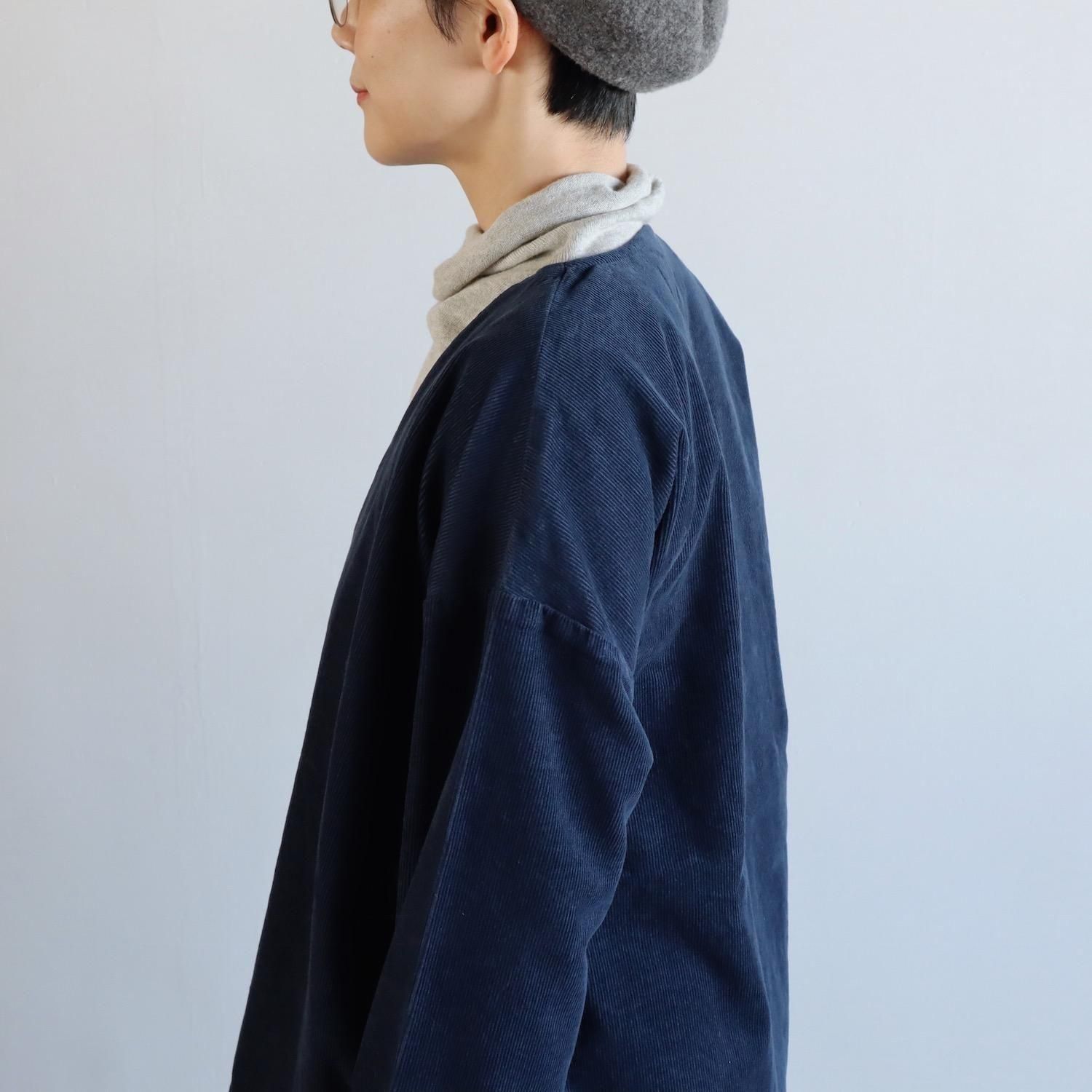ホッコリとスッキリが両立した、14Wの細畝コーデュロイ生地を採用しました。厚みはそれほどないので、インナーを上手にやりくりすれば、初秋から晩春まで、たくさんお召しいただけます。
