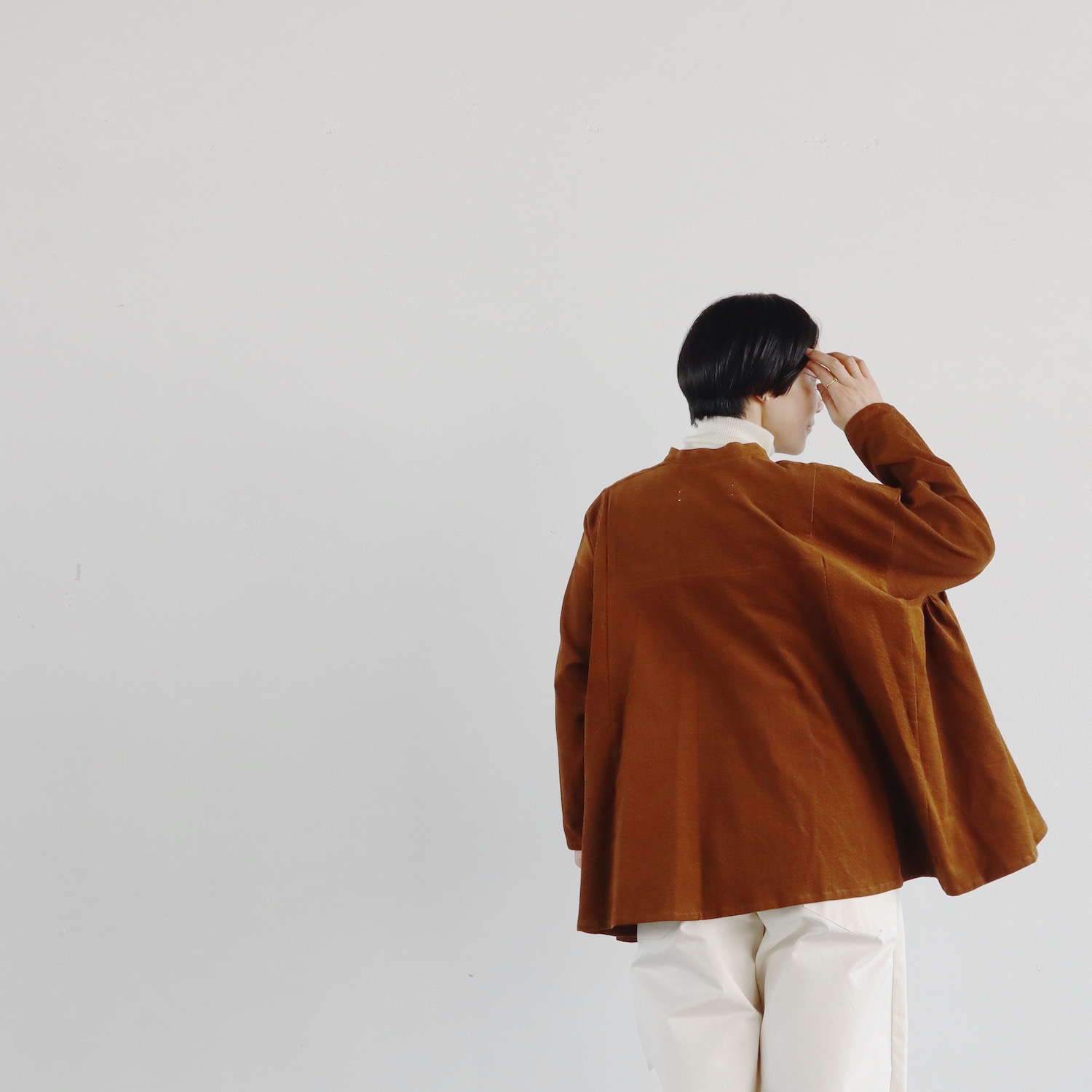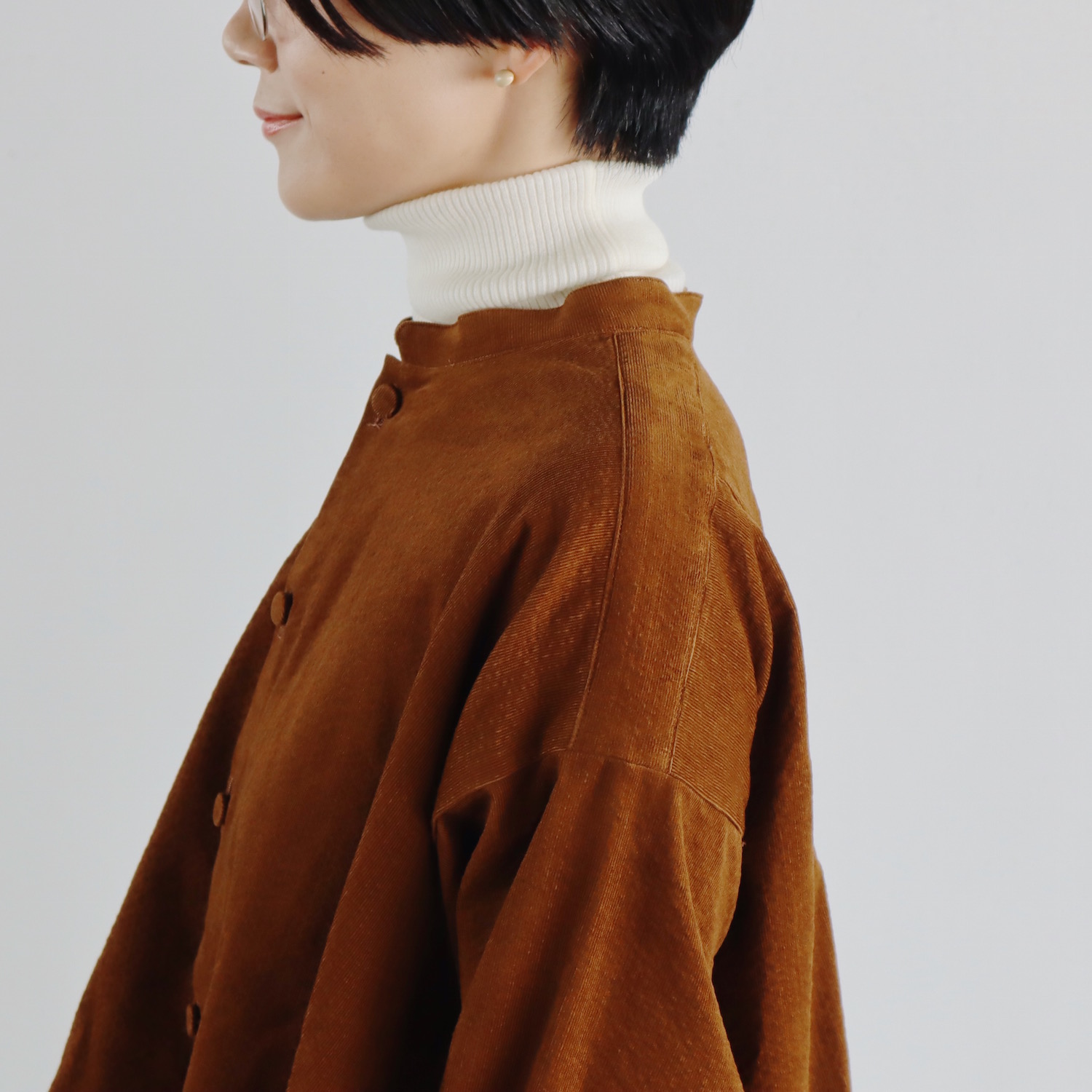 コーデュロイと聞いて皆様がイメージする生地厚より、けっこう薄手な部類かと思います。ボタンを留めてシャツの様に着たり、ボタンを開けてライトアウターとして羽織ったり。心地良い細畝コーデュロイを、たくさんお楽しみください。