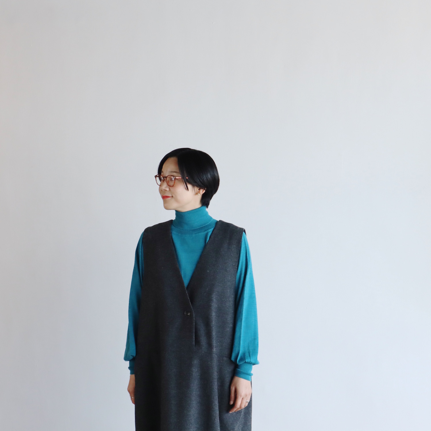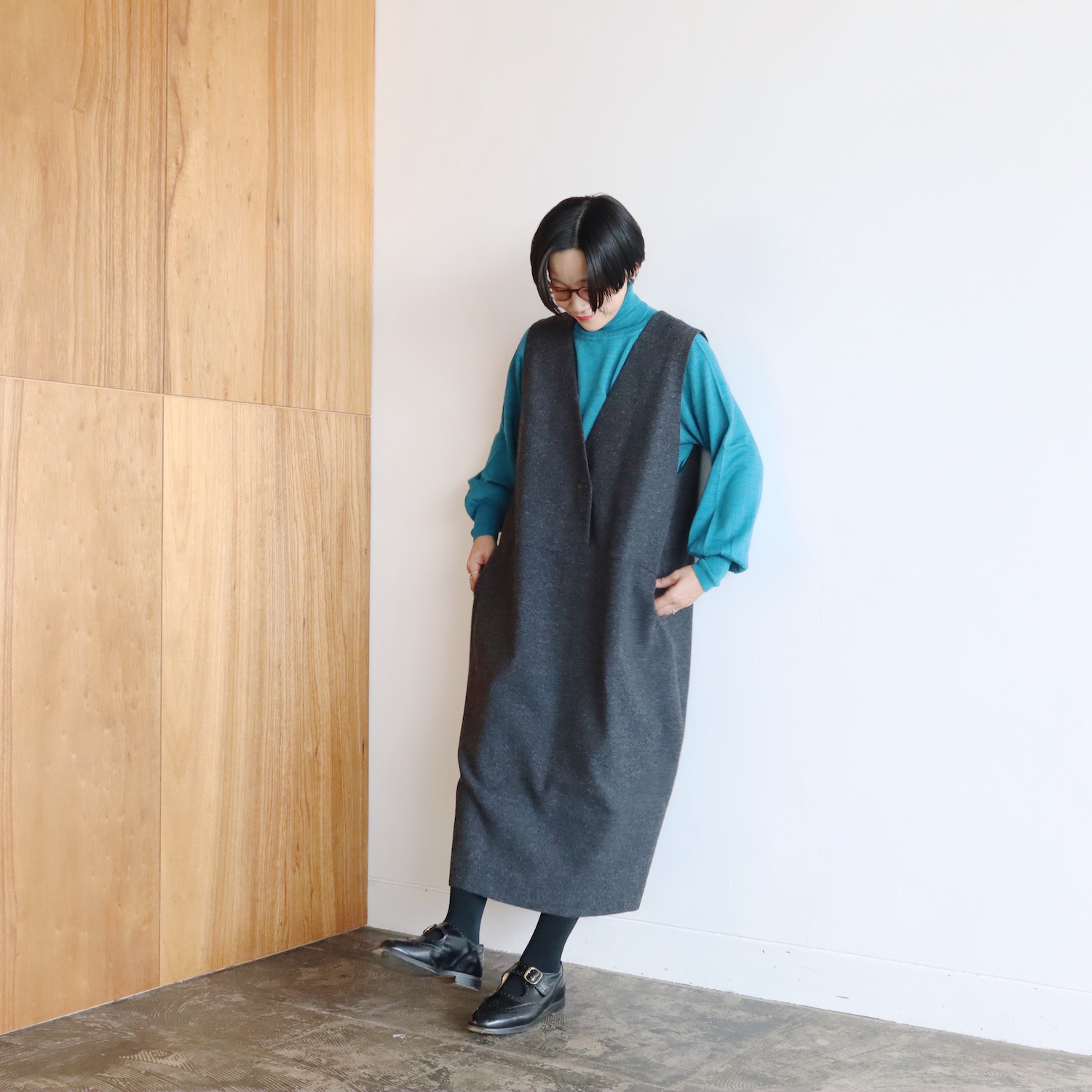 コラム、大変だったなあ。肩も凝ったから、リラックスした格好がしたいなあ。でもセレクトショップの店員たるもの、キチンと感は演出しないとなあ。という時は、atelier naruse(アトリエナルセ)のジャンパースカートに頼るより他ありません。