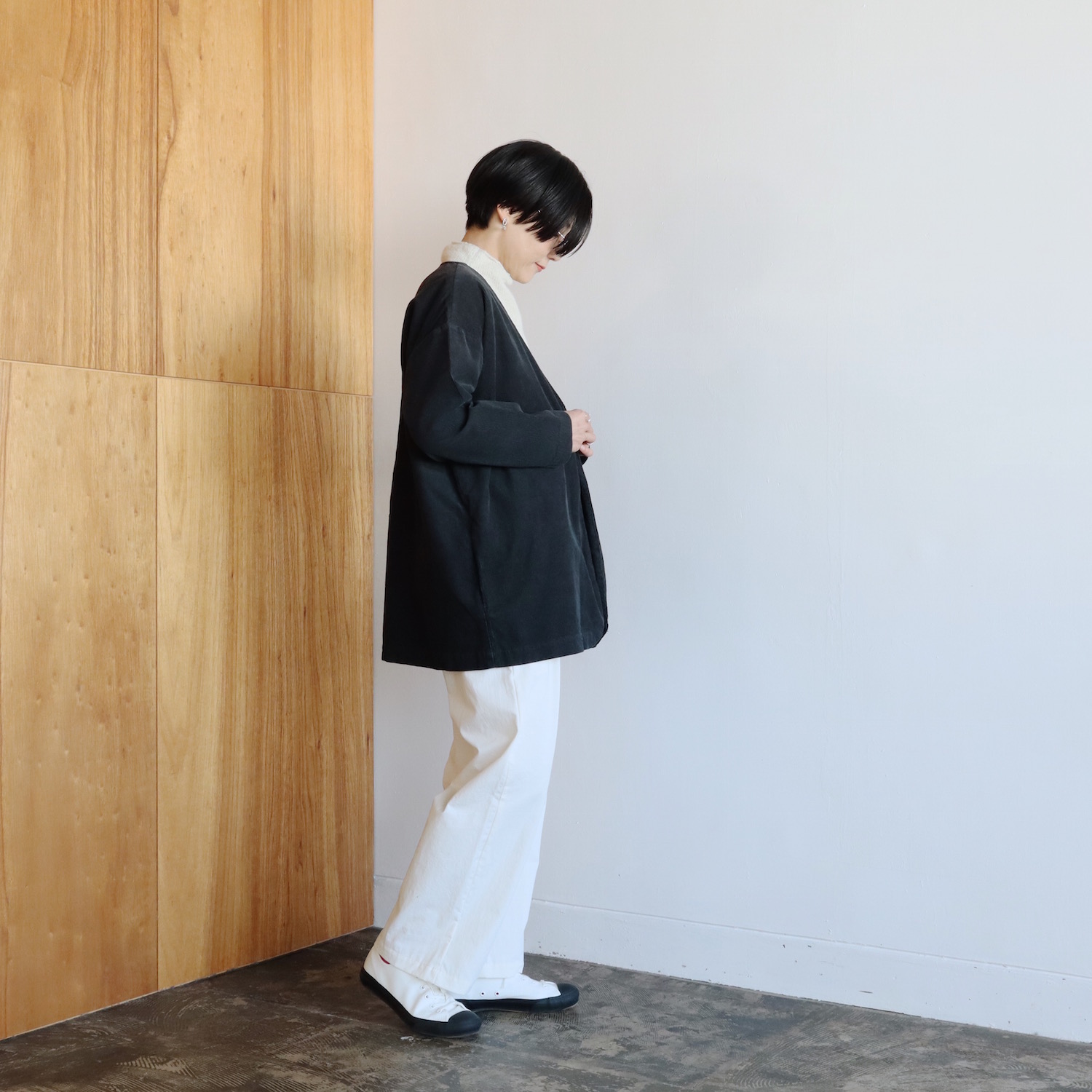 品名にならって”カーディガン”と呼称しましたが、その実、ジャケットのような、ハーフコートのような、何とも言いがたいニュートラルな立ち位置のアイテムです。ゆえに生まれる他とは替えの利かない独特の存在感に、私は魅了され続けています。