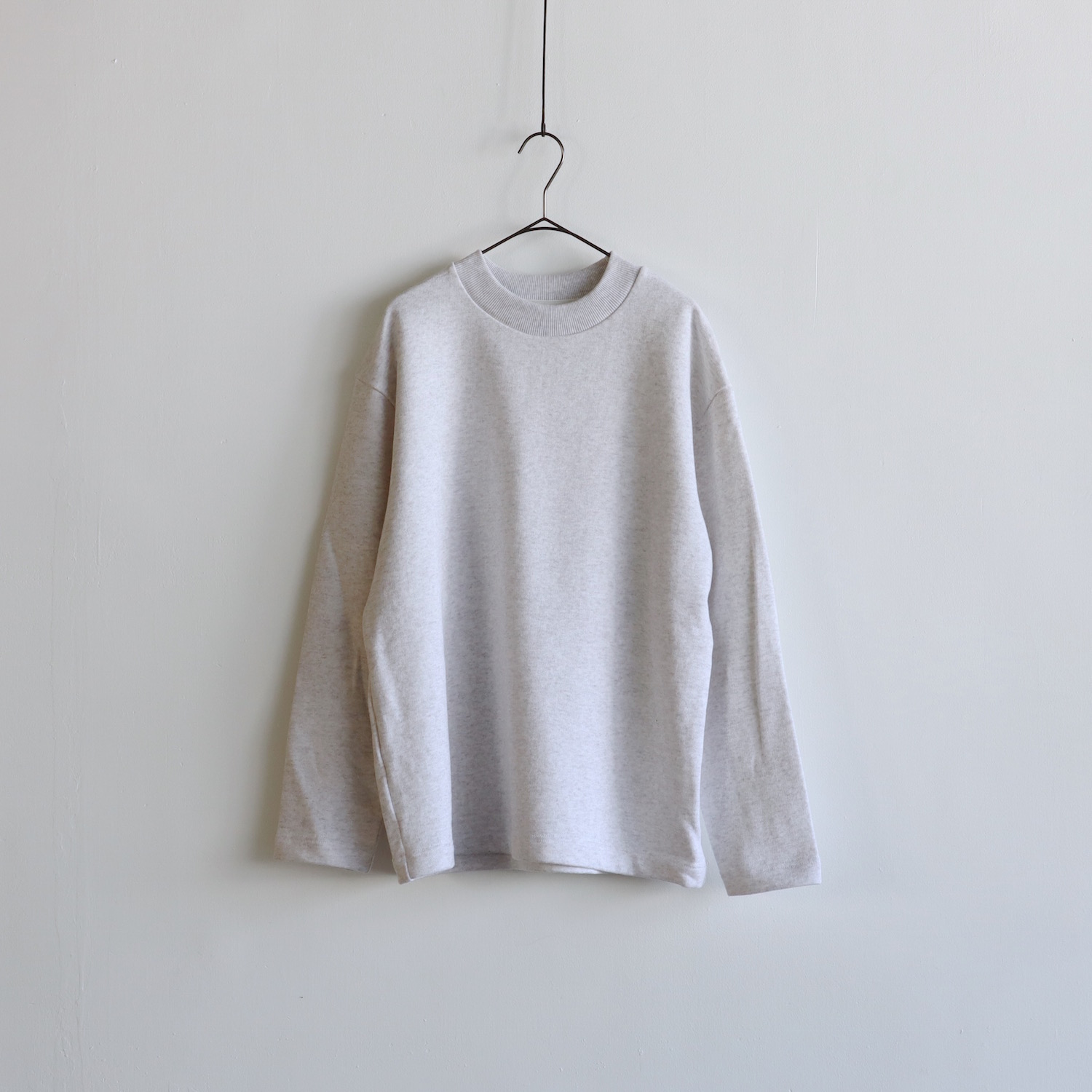 身幅と袖周りにゆとりがあり、身体にまとわりつかないシルエット。太めのリブを配した首回りも、ややゆとりのあるリラックス仕様です。