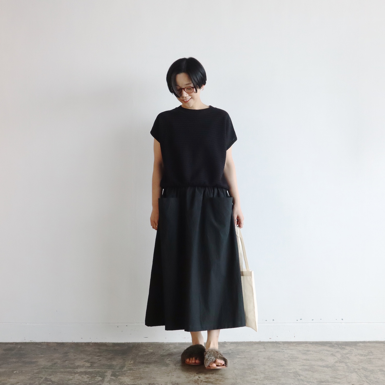 atelier naruse Down Proof Cut In Pocket Skirt BLACK 23,100yen