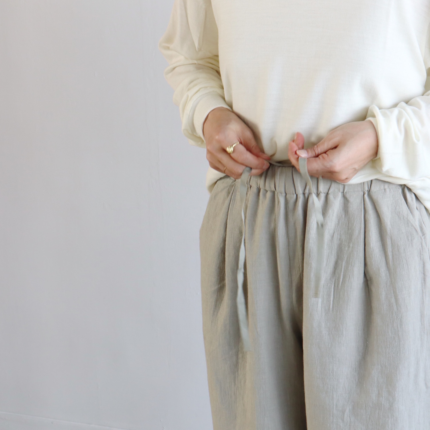 ウォーターリネンの良い所③。良い物を着ているんだなとしみじみ感じられ、身に付ける度に心の目盛りが上がります。
