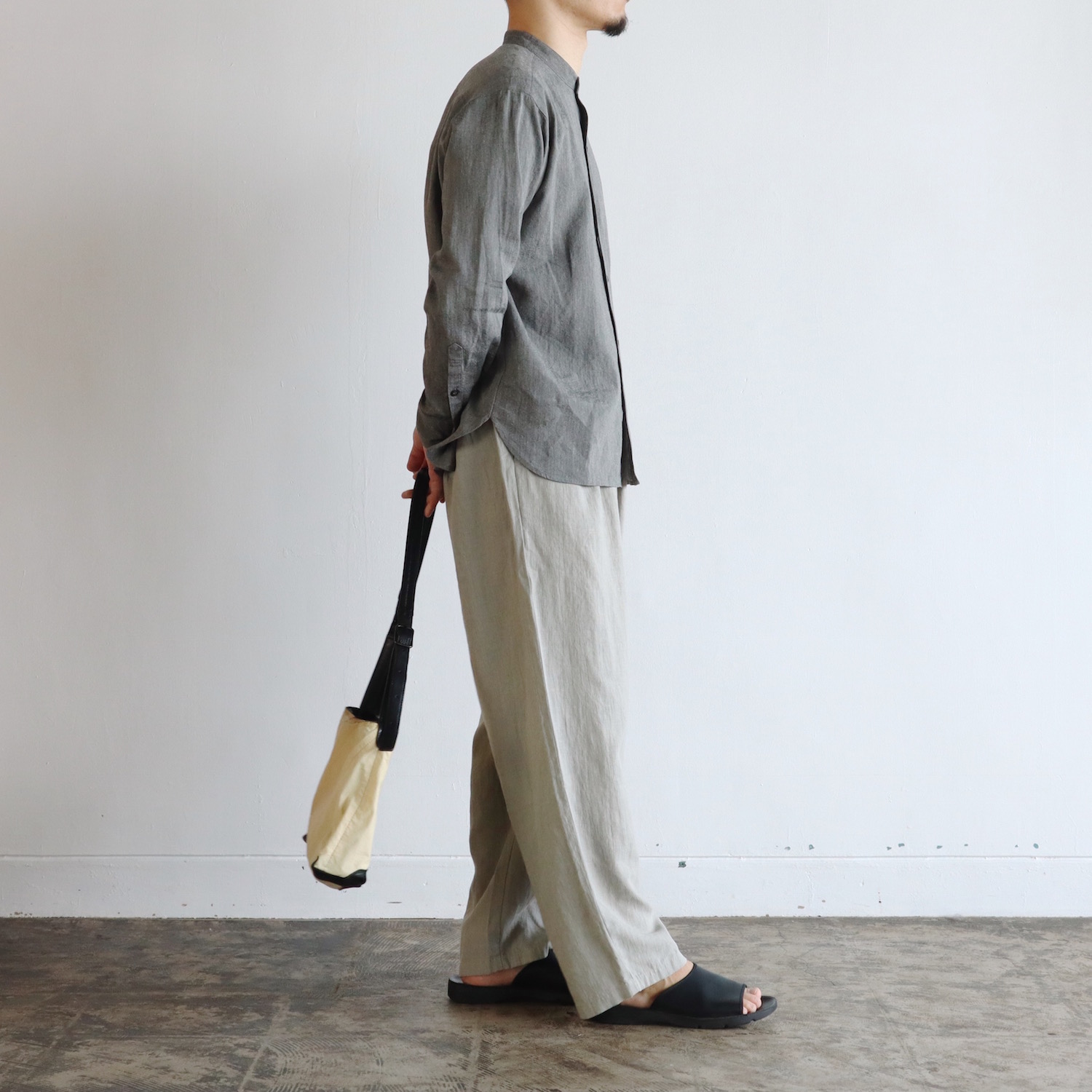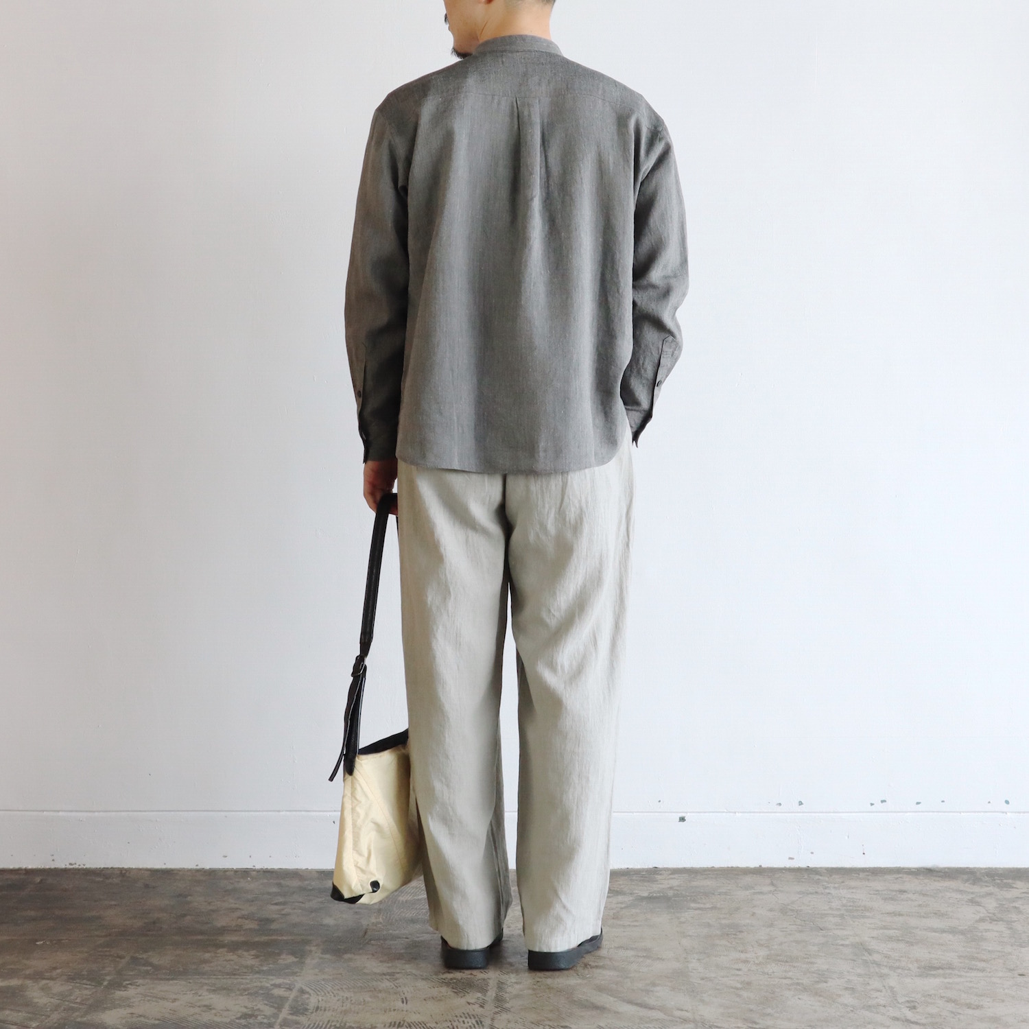 evam eva Linen Washi Band Collar Shirt BLACK 35,200yen
