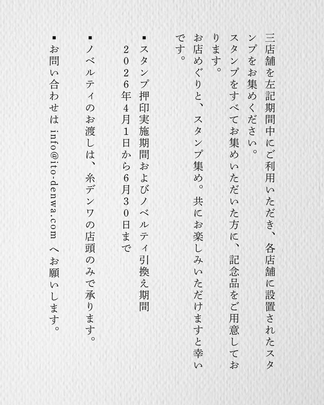 3つの店をめぐり、ひとつの「商店街」を完成させていく、スタンプラリー企画です。