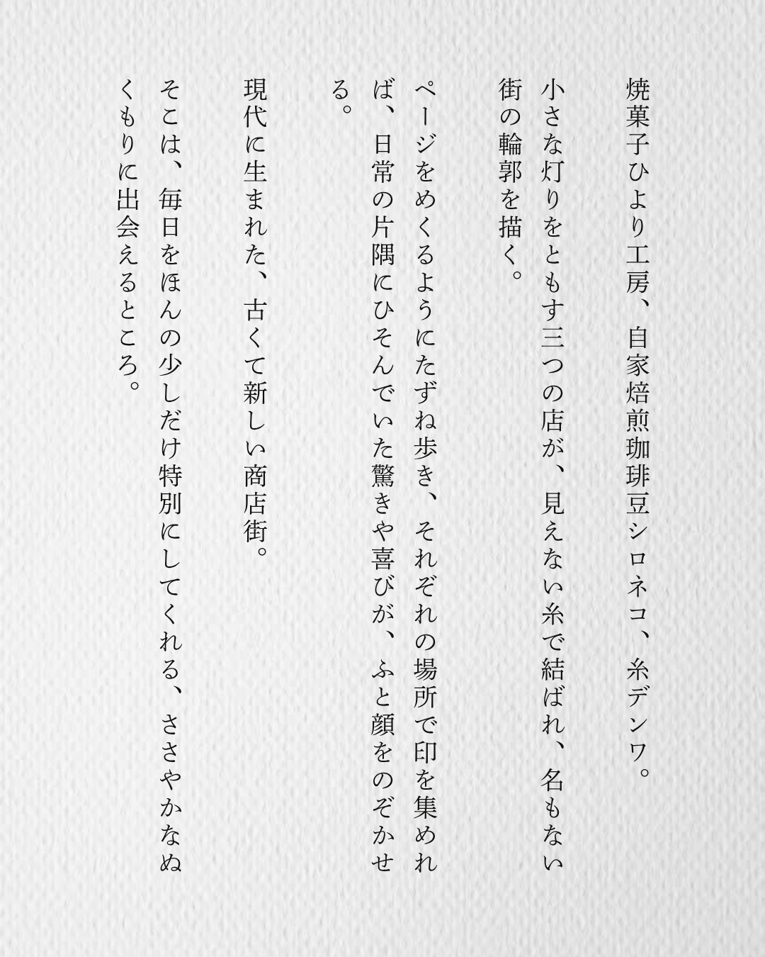 見えない糸で結ばれる、小さな店。確かな手触りでつながる、新しい商店街です。